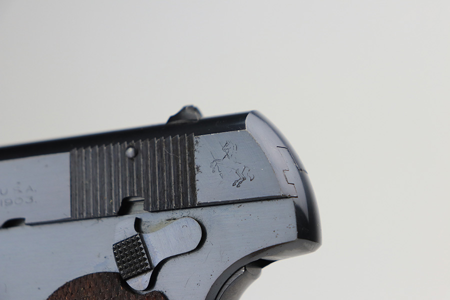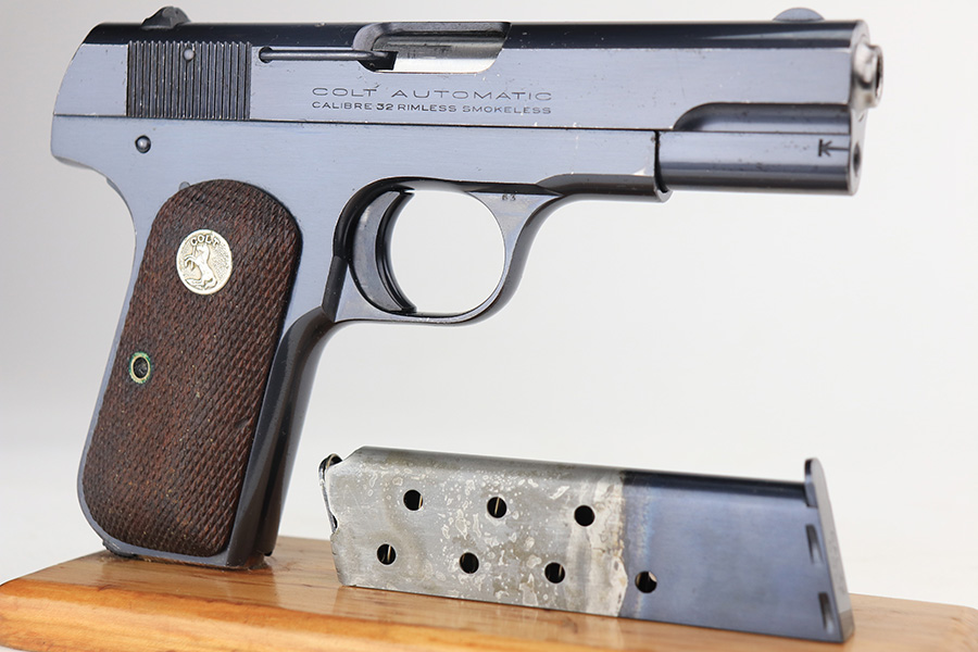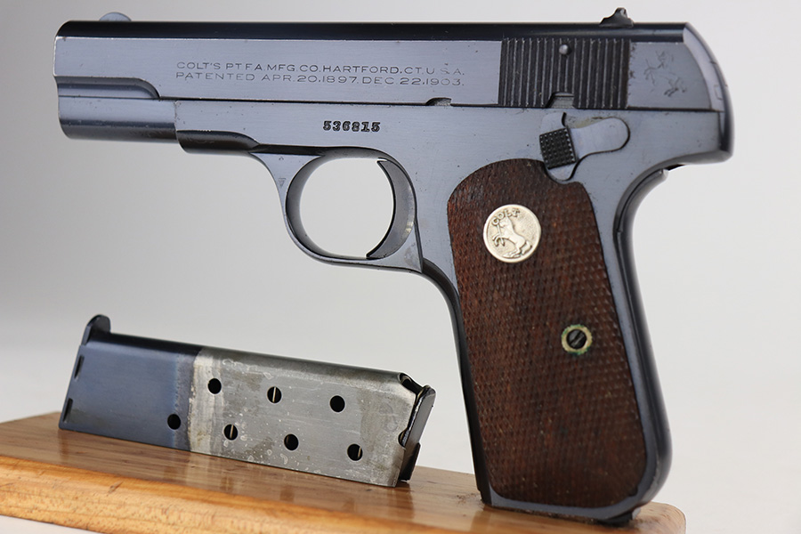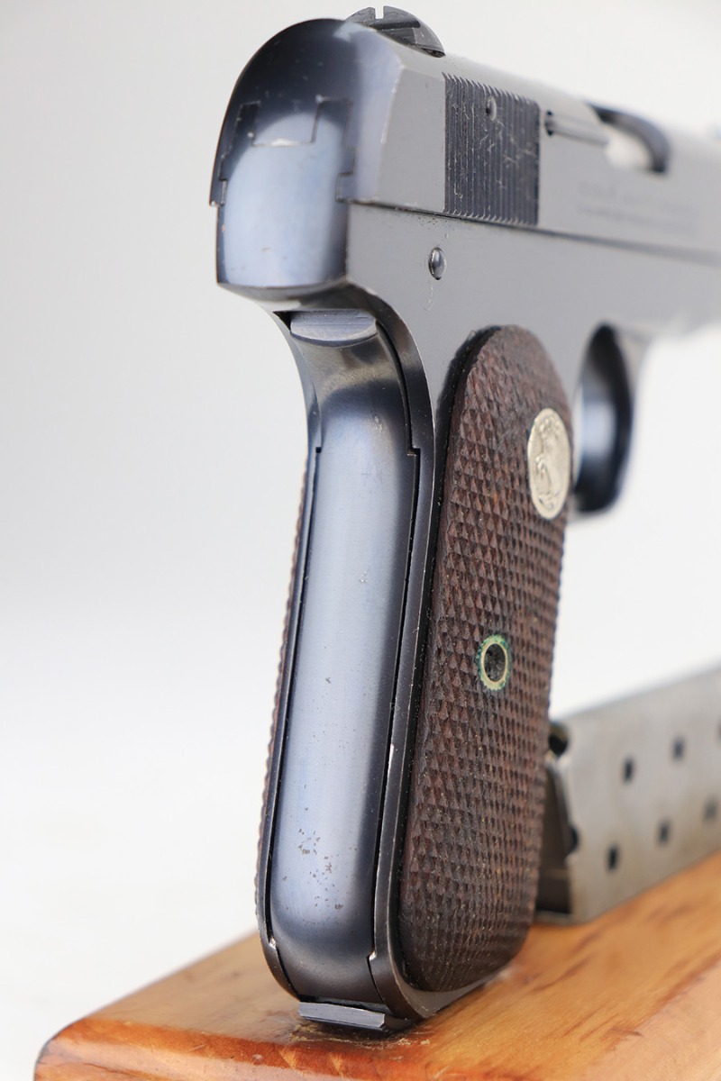 2/2/22 – This is a terrific and original Colt Model 1903 Pocket Hammerless that was made in 1938. All correct with about 98% of the original blue. No notable areas of wear, just a little bit of high edge wear in general. Minty bore and grips. Original two-tone magazine.