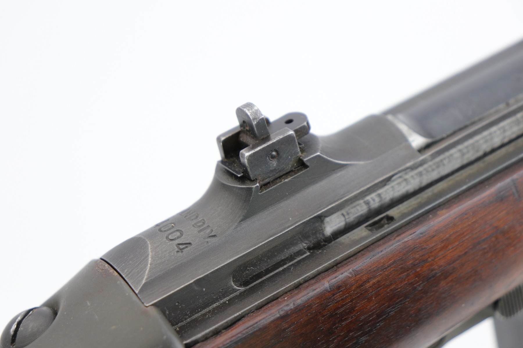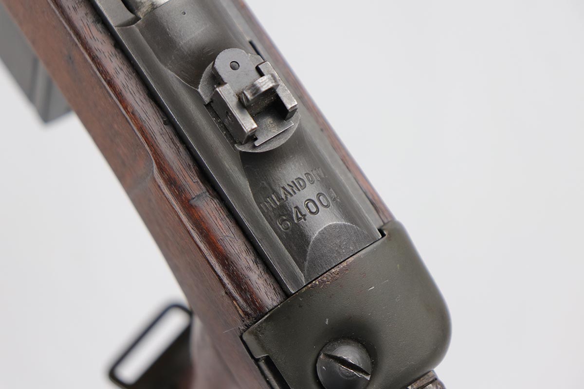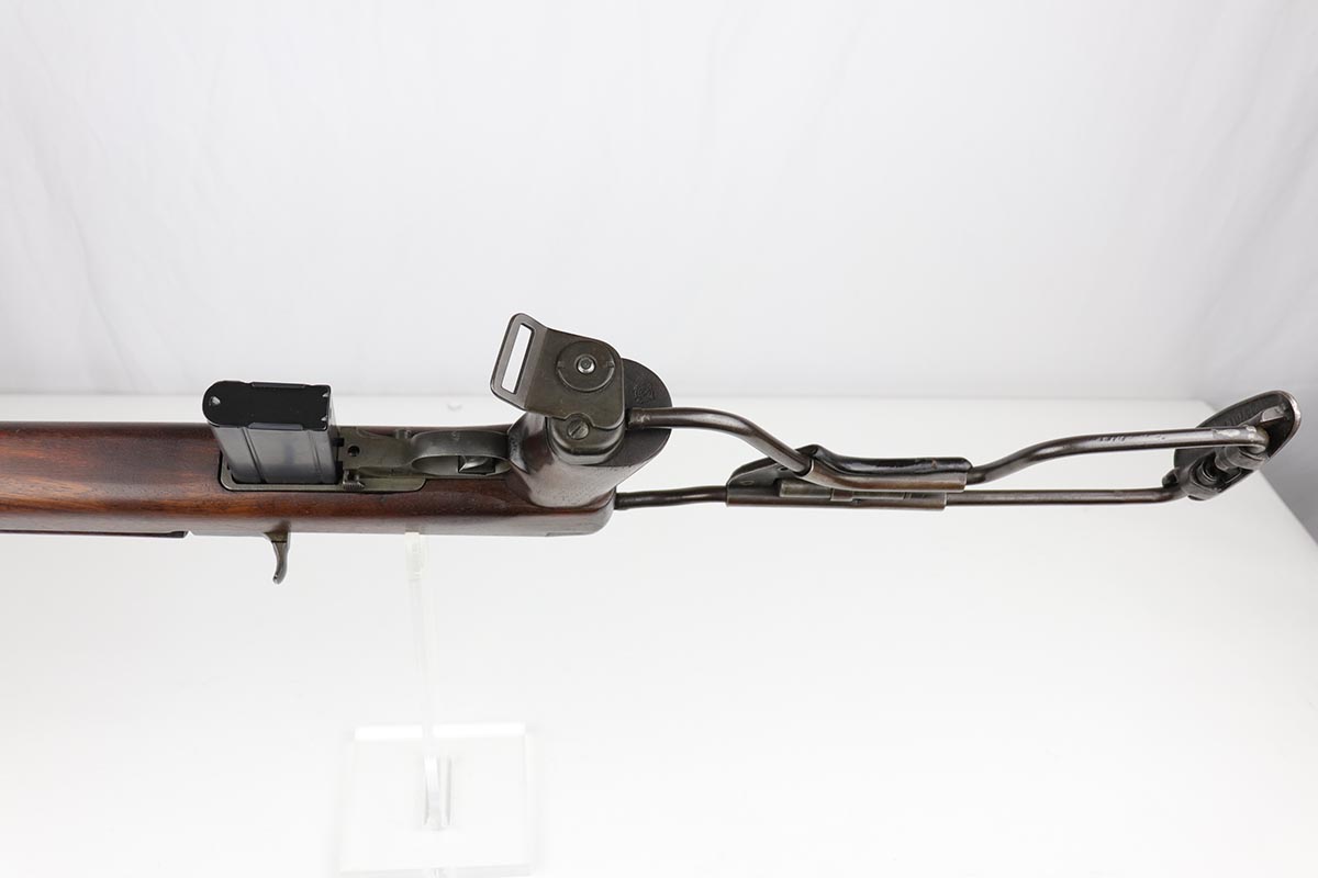5/6/20 – This is a fantastic, original example of a scarce and desirable Inland M1A1 Paratrooper Carbine. It is also the earliest example we have ever offered, made in just the second month of production (October of 1942). It has a five-digit serial, and features a correct high-wood stock. IO marked stock and handguard with flaming bomb inspection proof. There is a small ding/nick in the top of the handguard. Correct circle P on back of stock, and crossed cannons cartouche on pistol grip. Original hardware and cheekpad. Mint bore. AI marked magazine.