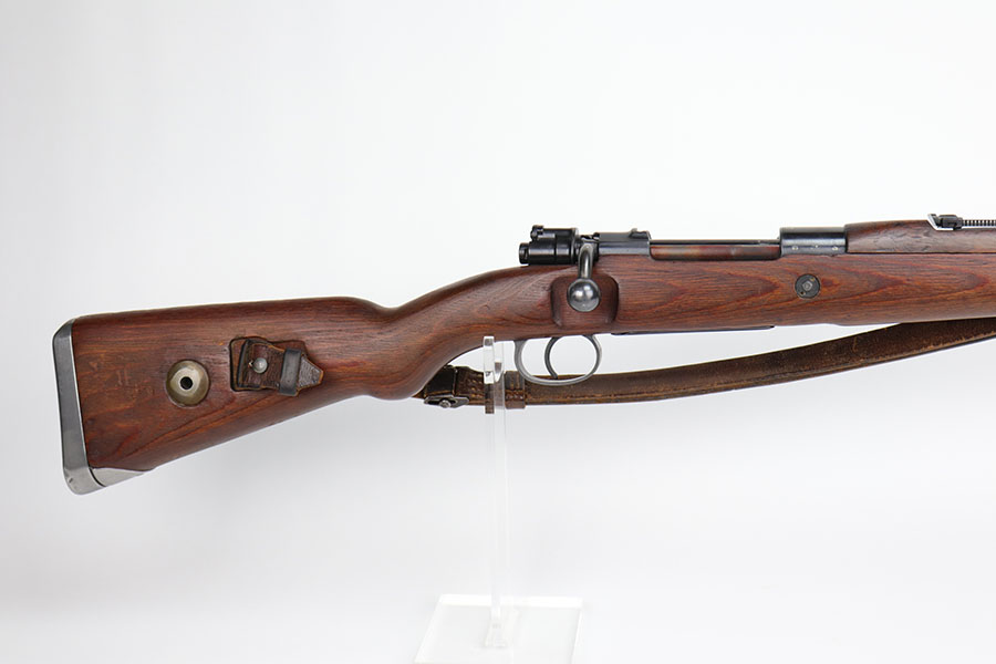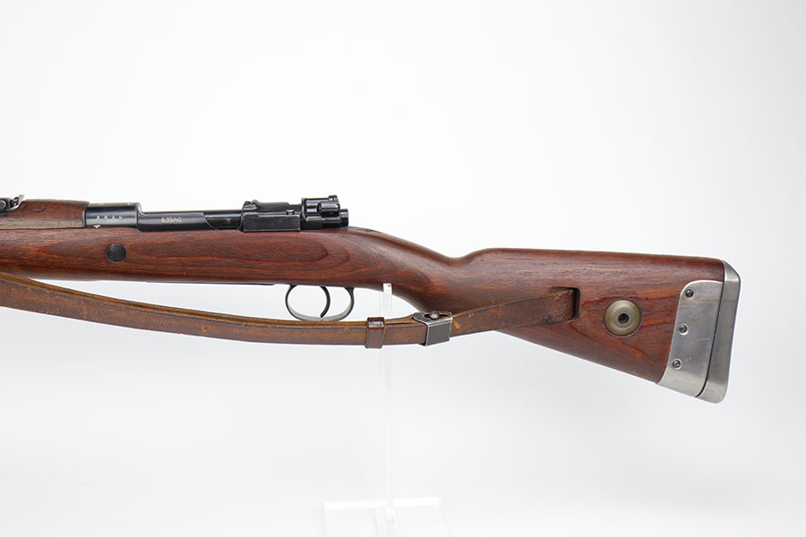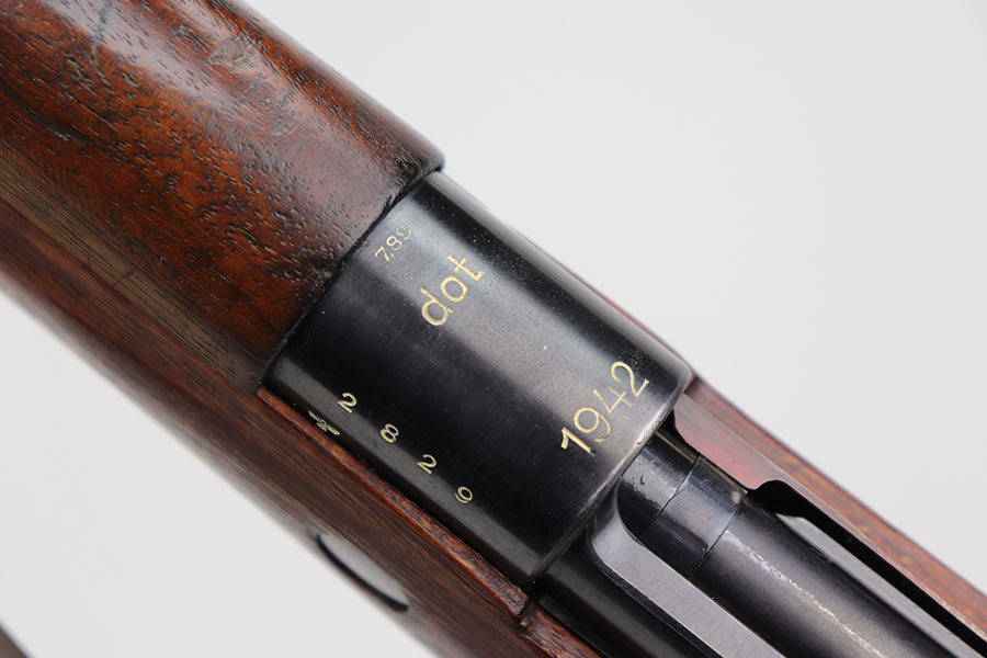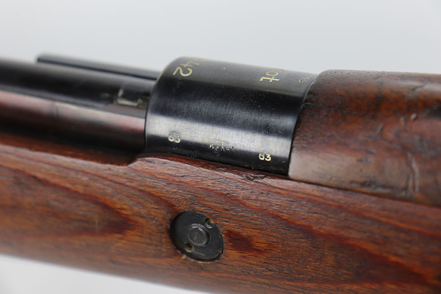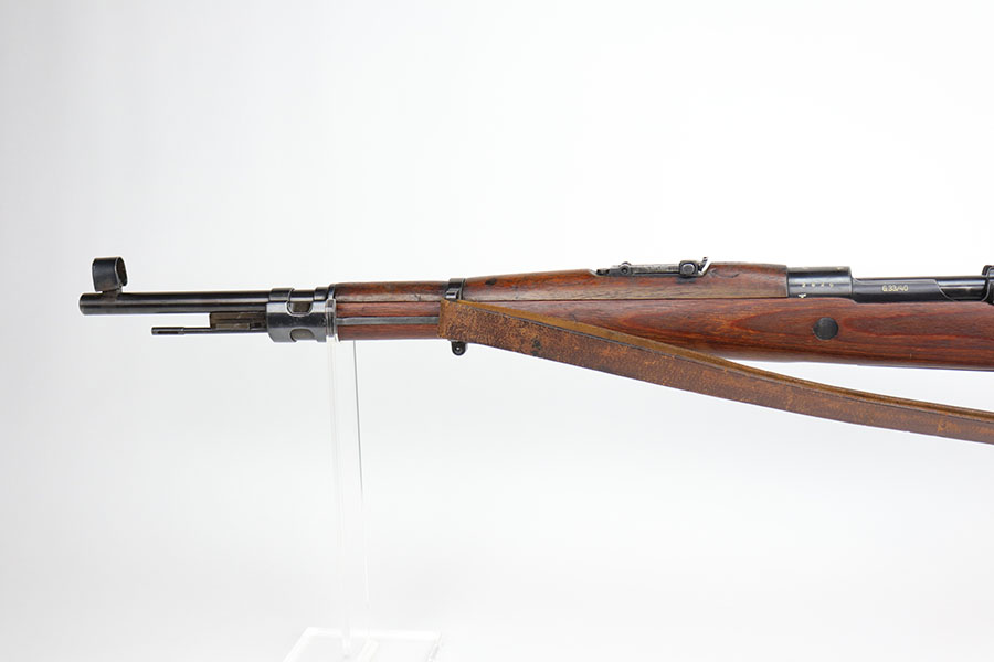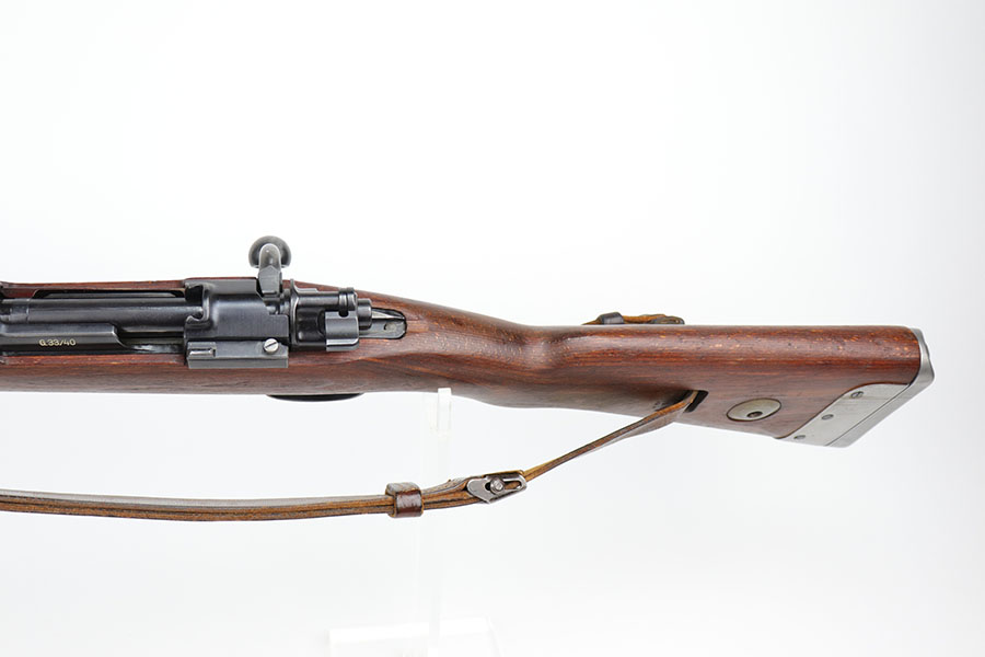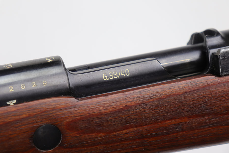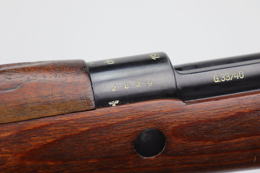 10/8/20 – This is a fantastic and hard to find G33/40 Mountain Carbine that was made in 1942 at the Waffen-Werke Brunn AG factory. It’s one of the nicest examples we’ve encountered, with hardly any bluing loss on the rifle aside from minor thinning on the front band and trigger group. All matching numbers throughout, including the stock. Excellent bore with strong rifling. The stock is in fantastic condition. Comes with original sling and cleaning rod. There is a sight hood present but it’s loose and may be a K98 hood.