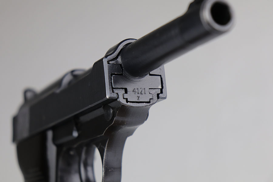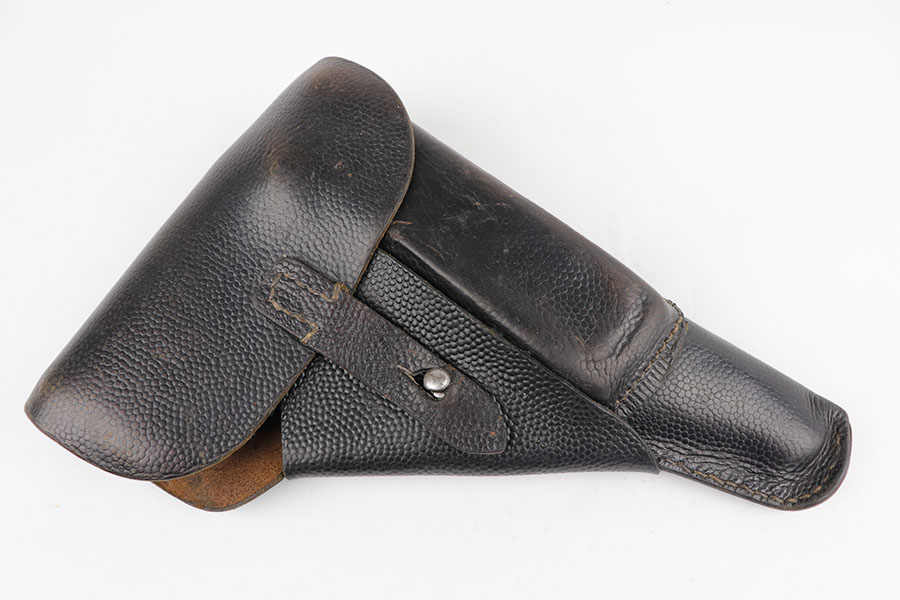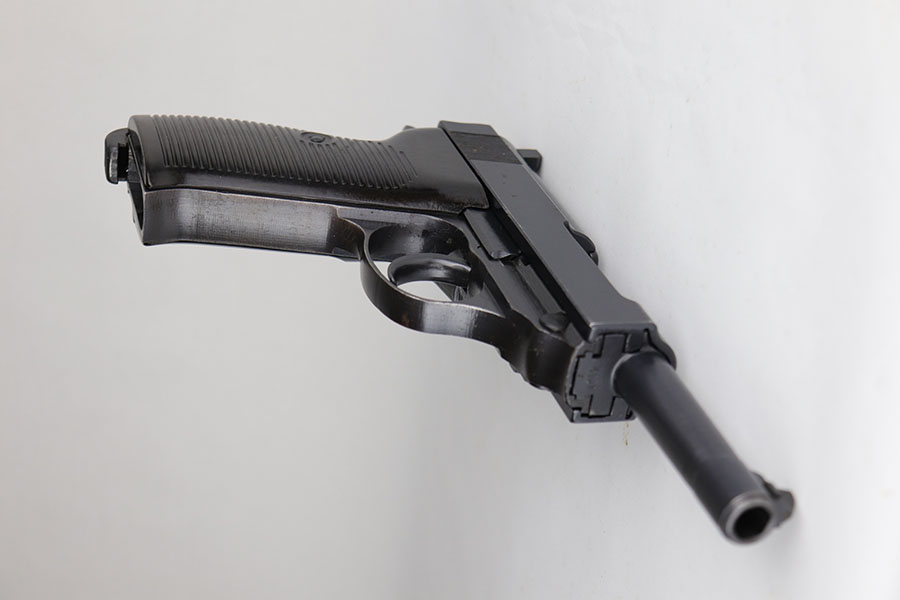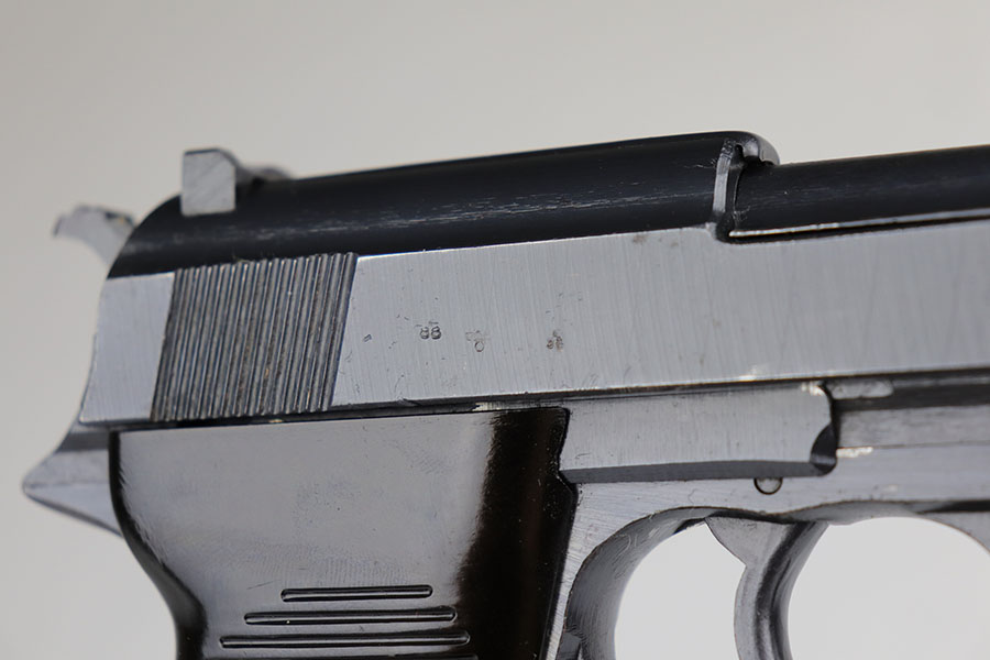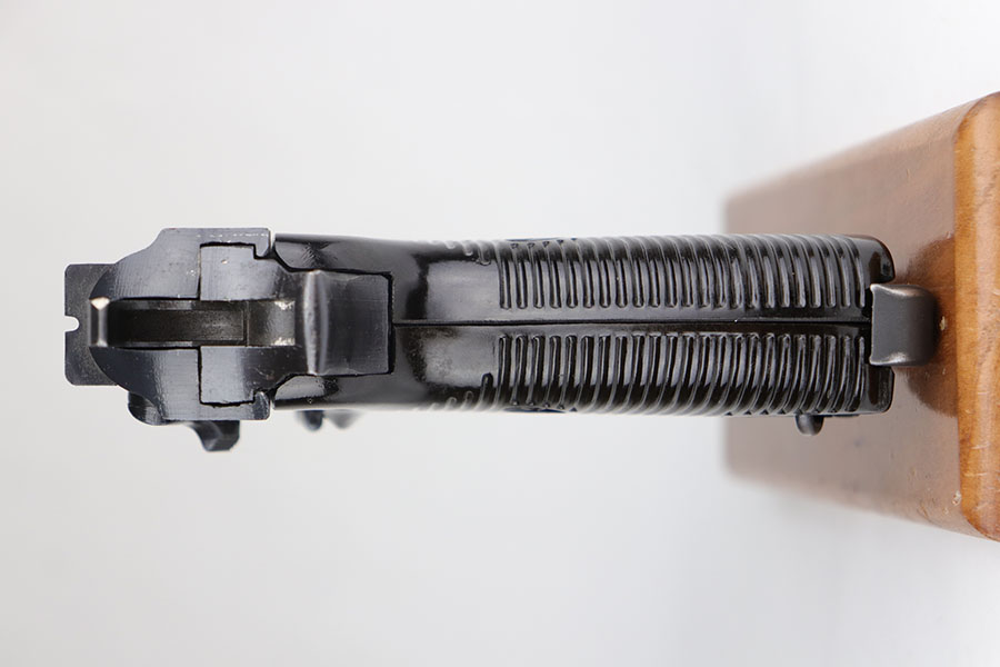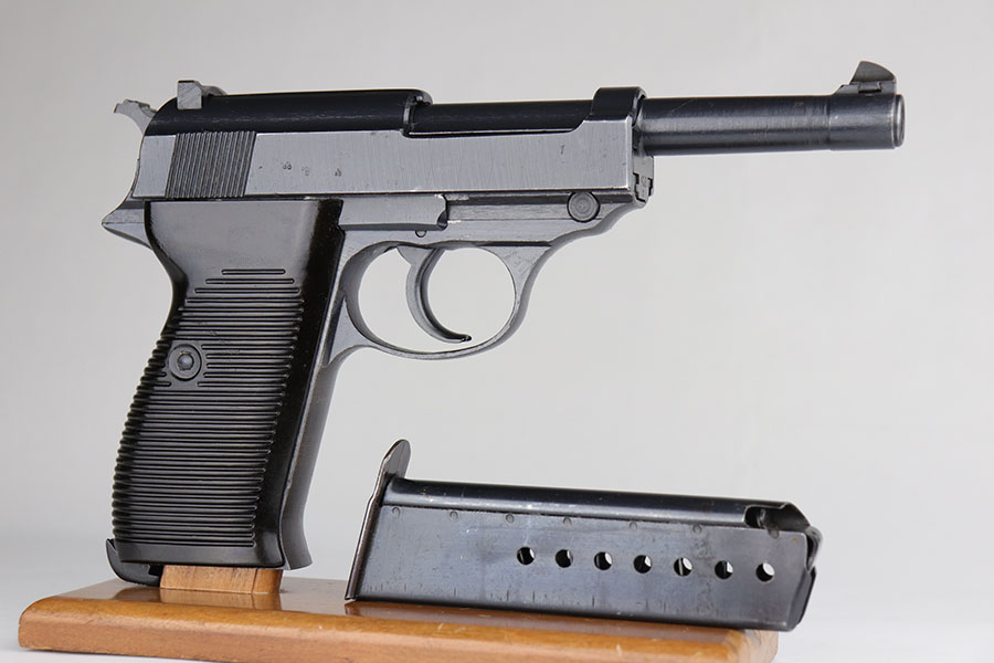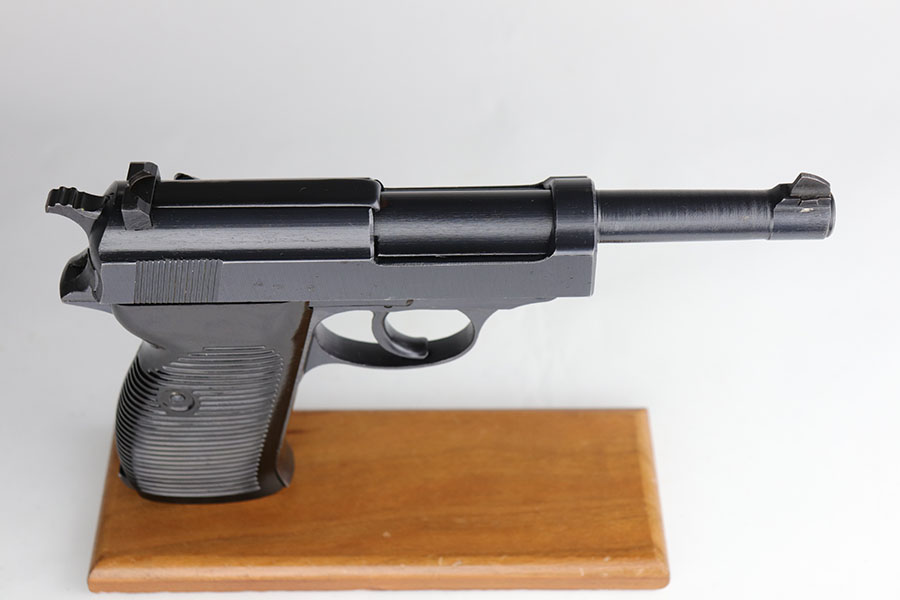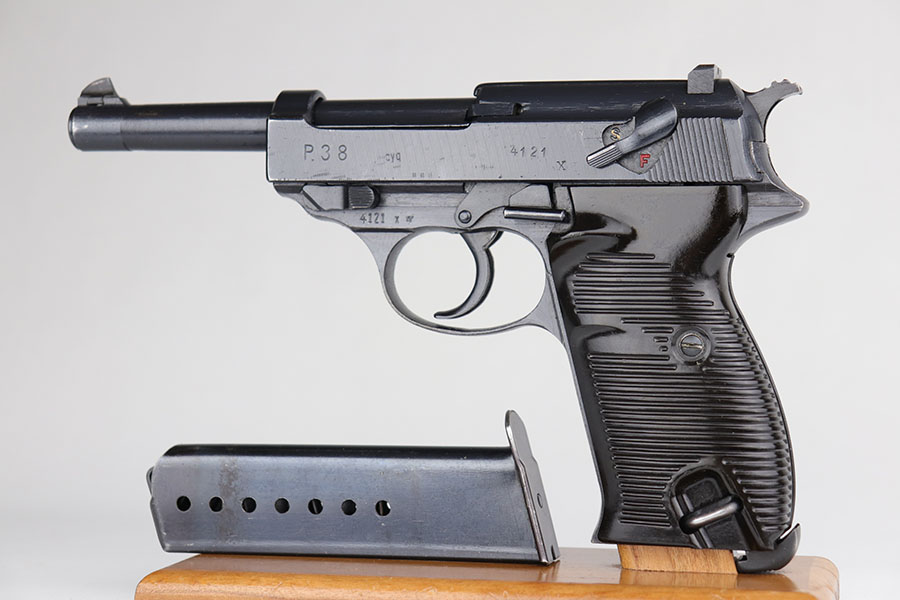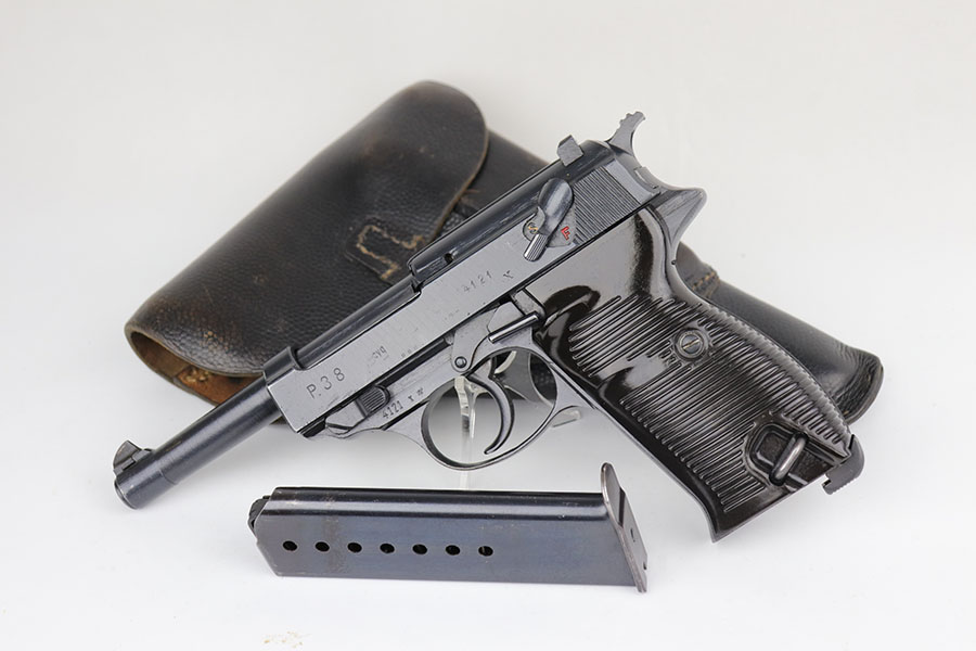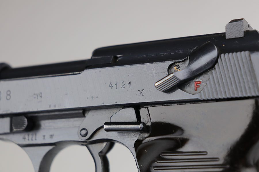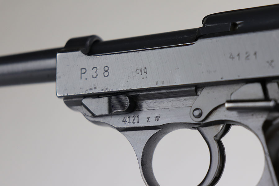 7/9/20 – This is a near-mint example of a Spreewerk P.38 made in December of 1944. Late war features such as the cog hammer and typical rough machining lines are present. The gun is all matching and original with just a bit of muzzle wear, and minor edge thinning on the front strap. Bore is mint. Gorgeous brown grips. Full functionality, including de-cocker. Comes with a ’44 dated softshell holster.