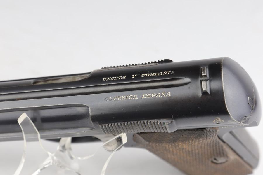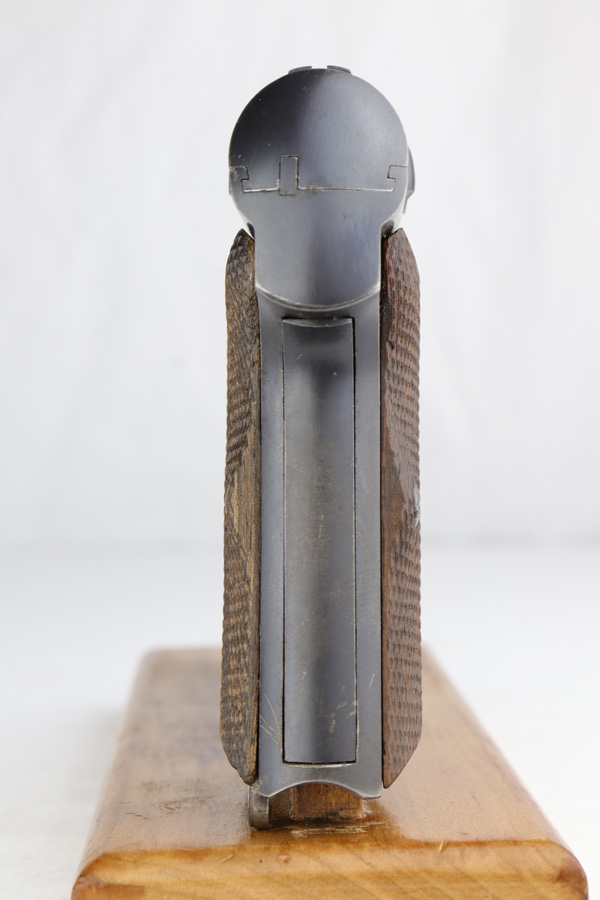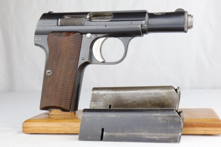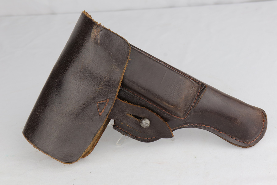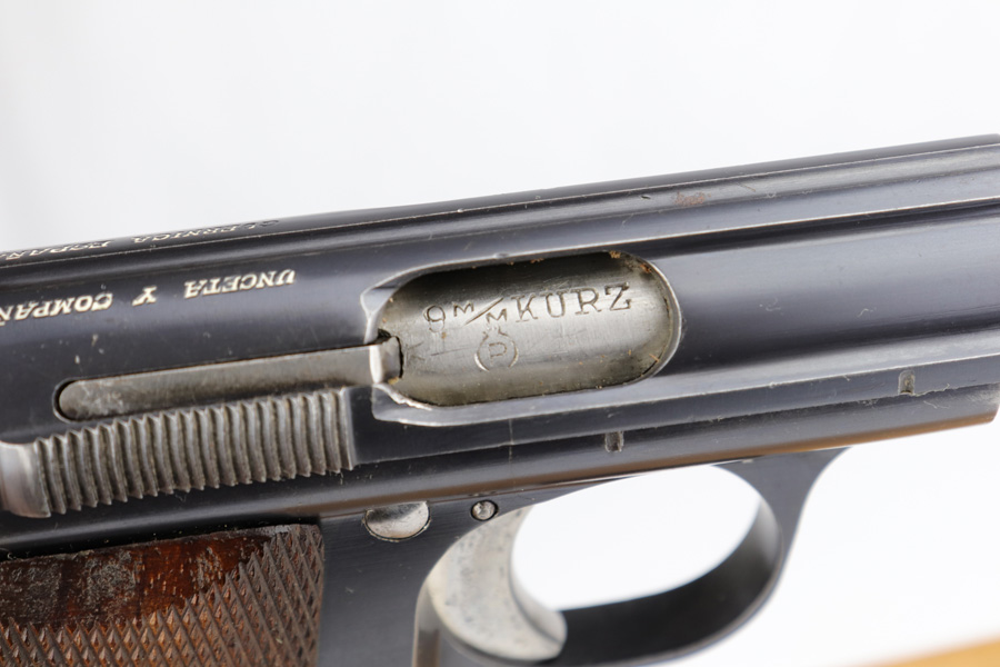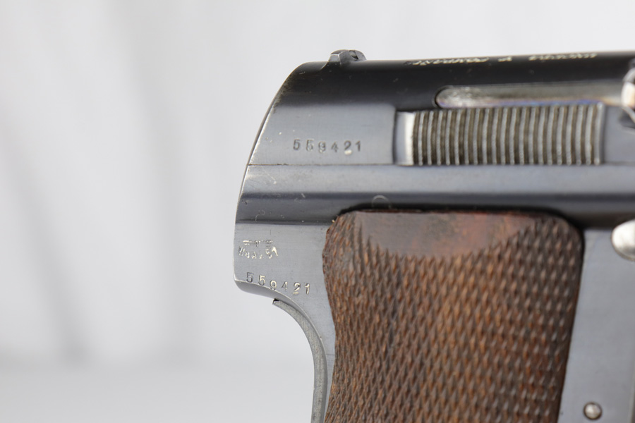 12/10/20 – This is a beautiful Nazi Astra 300 rig, all complete and original. It is all correct with minor finish loss on the straps but a beautiful profile. This particular pistol was shipped on January 16th of 1943, one of the first few hundred produced that year. It comes with two correct magazines and an original holster. The holster is in excellent condition with clear internal inkstamp and 1943 date. Pistol grips are fantastic and bore is shiny with strong rifling.