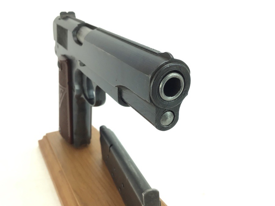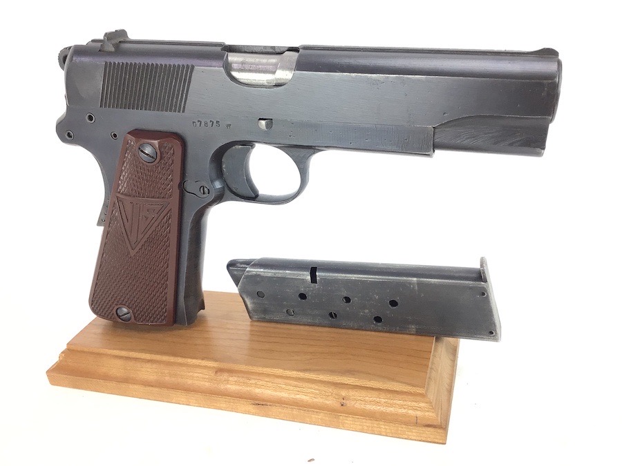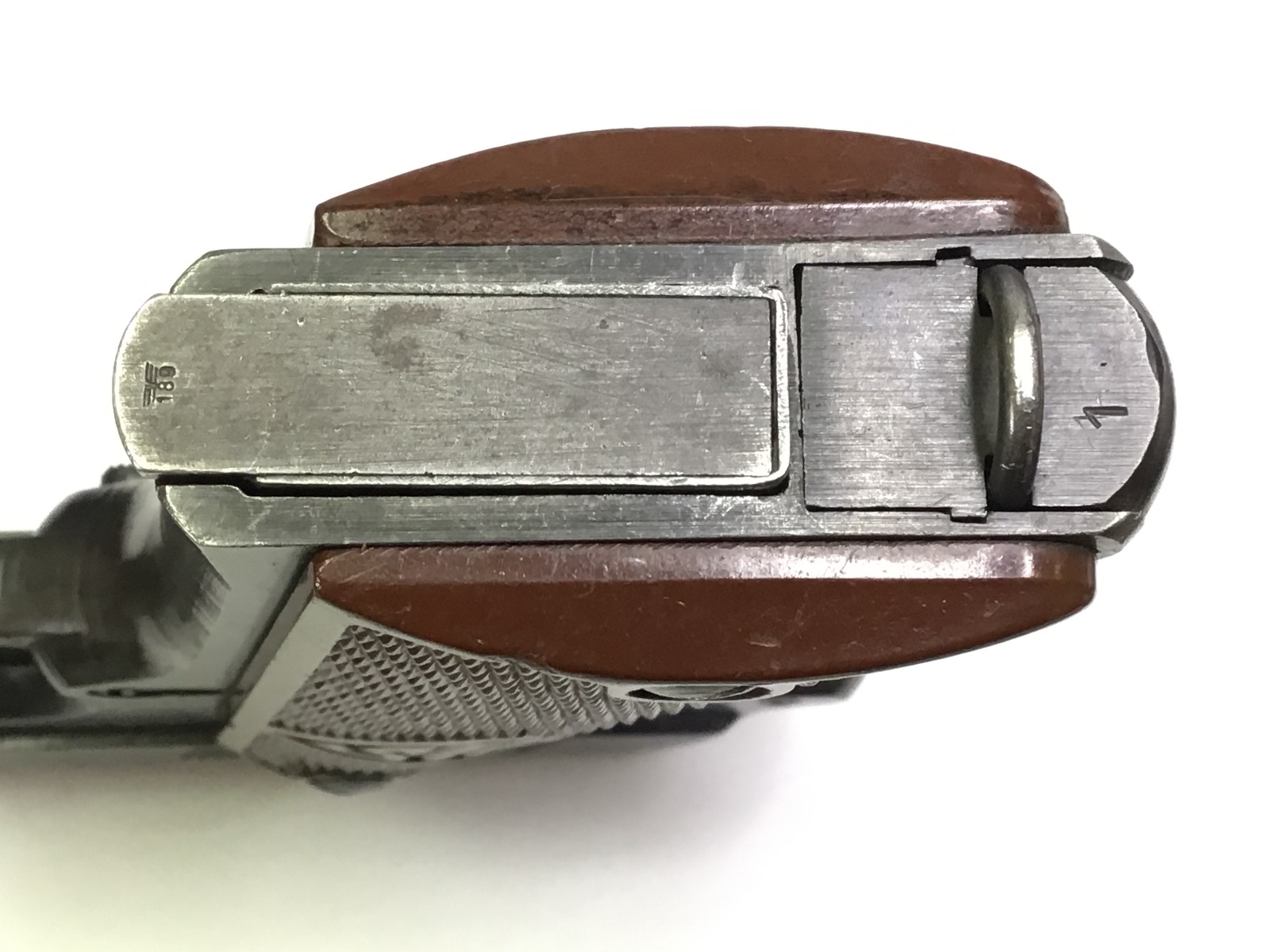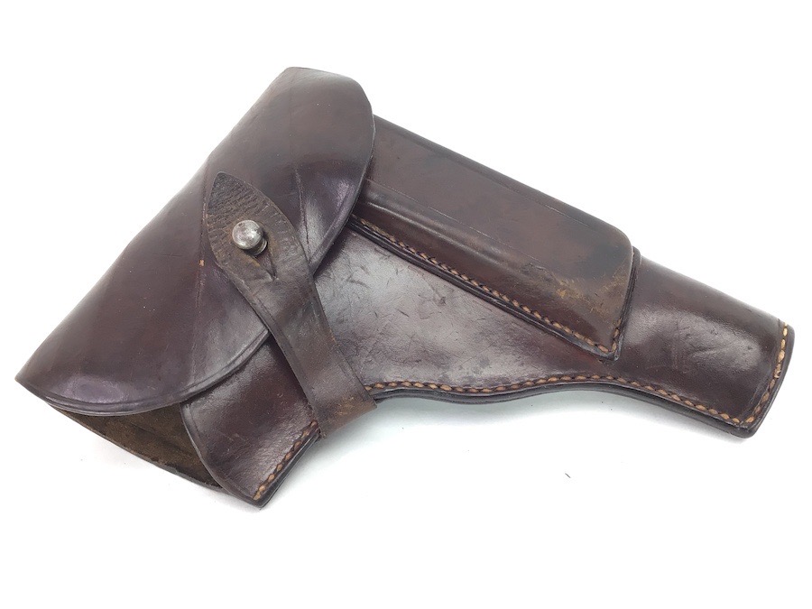 3/8//24 – This is an excellent, Radom VIS Model 35 issued to the Nazi military during WW2. All matching with the proper military acceptance proofs. It has retained nearly all of its original bluing with only minor muzzle wear and freckling – fantastic straps. Featuring an excellent, period correct holster that ink stamped under the flap P35(p).This is a two-lever variation and is fitted with an excellent set of scarce red bakelite grips. Also includes a spare post-war magazine. Comes with a proper waffen-proofed magazine. Near-mint bore.