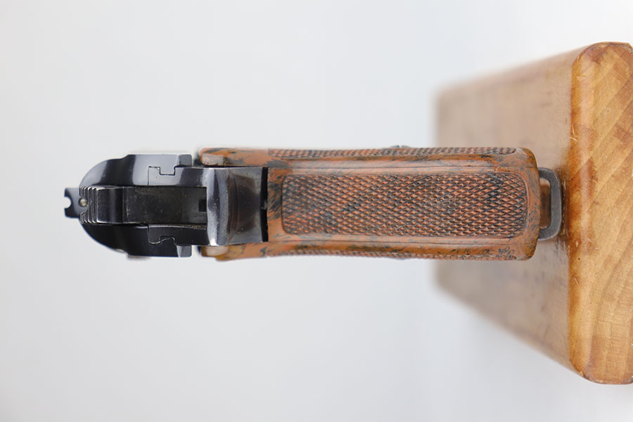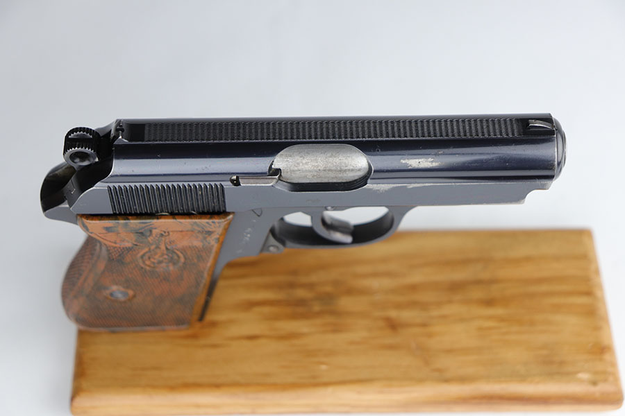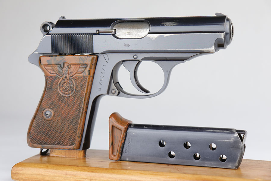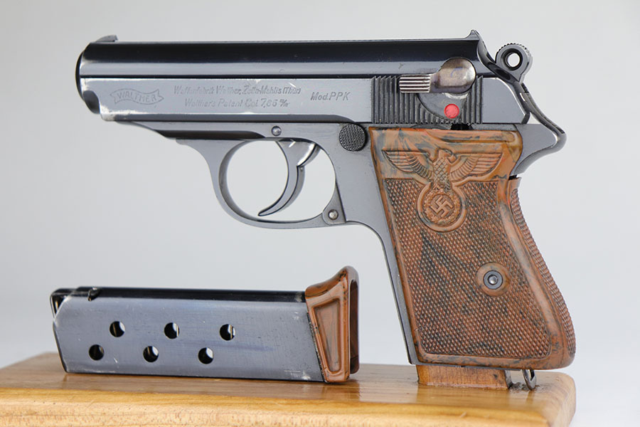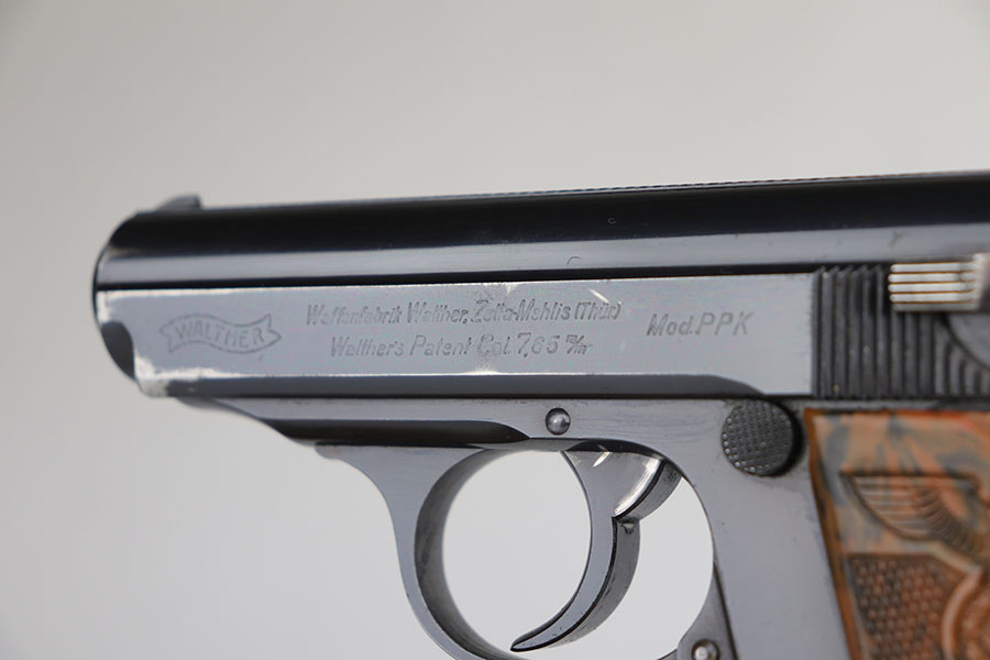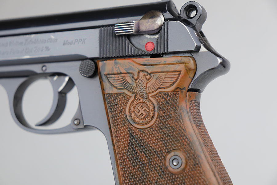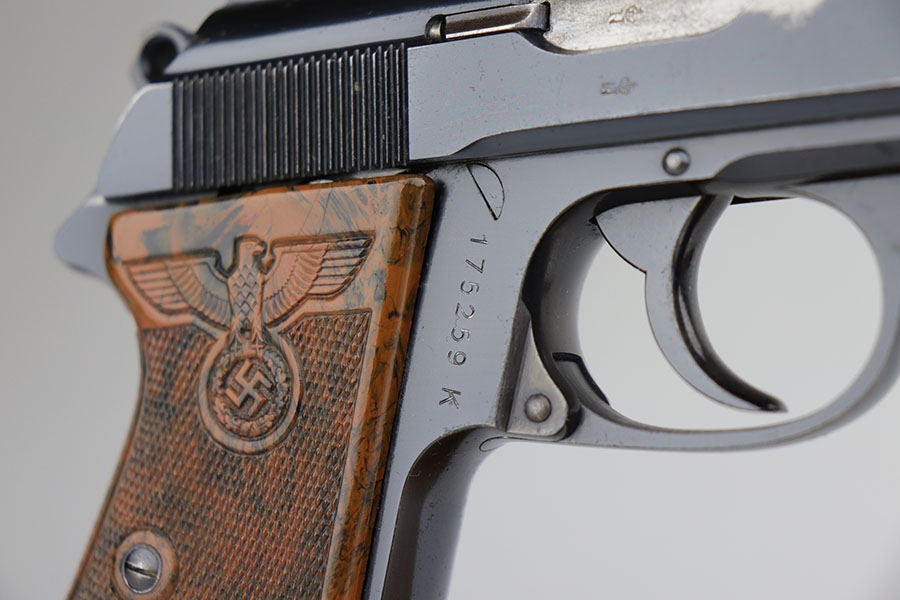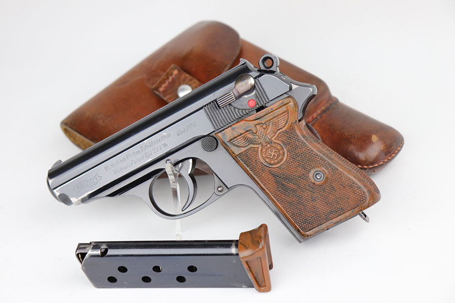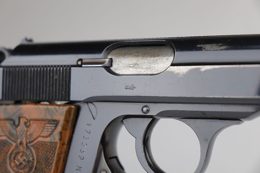 The Walther PPK with Party Leader Grips was the “Honor Weapon of the Political Leaders”. The Hoheitsabzeichen or High Insignia is the Eagle over Swastika found on either side of the grips where the Walther banner is normally located. The person entitled to wear the honor weapons that were awarded them by the Fuhrer were the Political Leaders of the national, regional and district territories, as well as leaders of local and support units. The persons who wore the honor weapon had their authorizations listed in the district personnel offices, and had to have in their possession a weapons permit issued by the police, which was obtained through official channels. These rare pistols were estimated to number around 3,500, and are widely faked, but this one is guaranteed original.