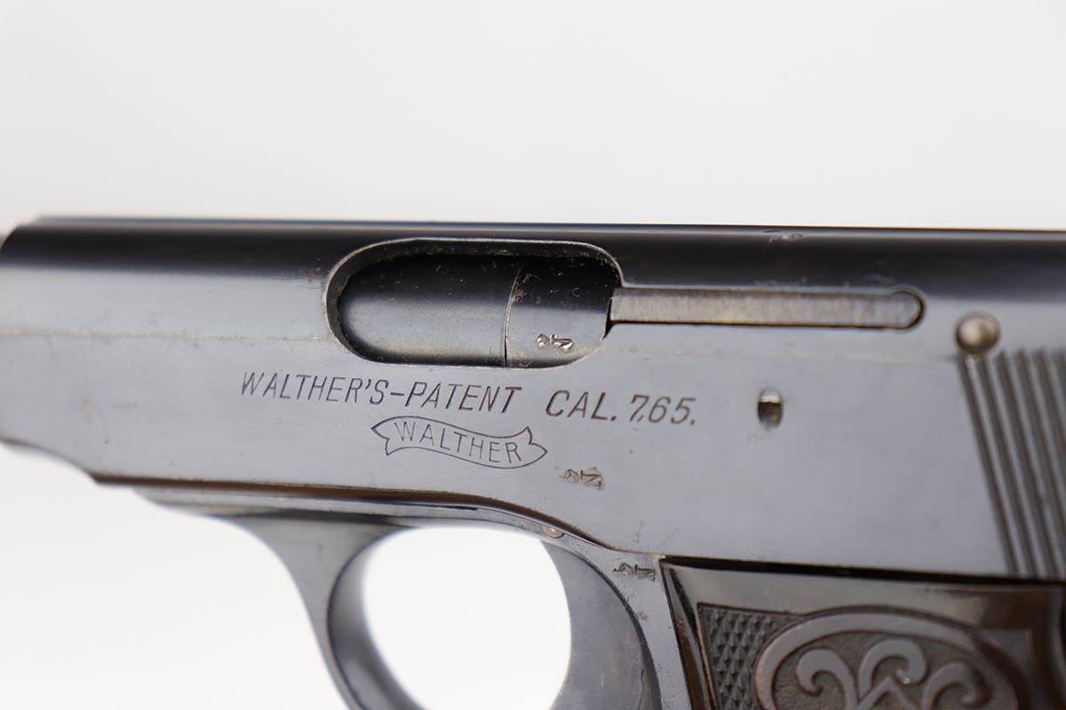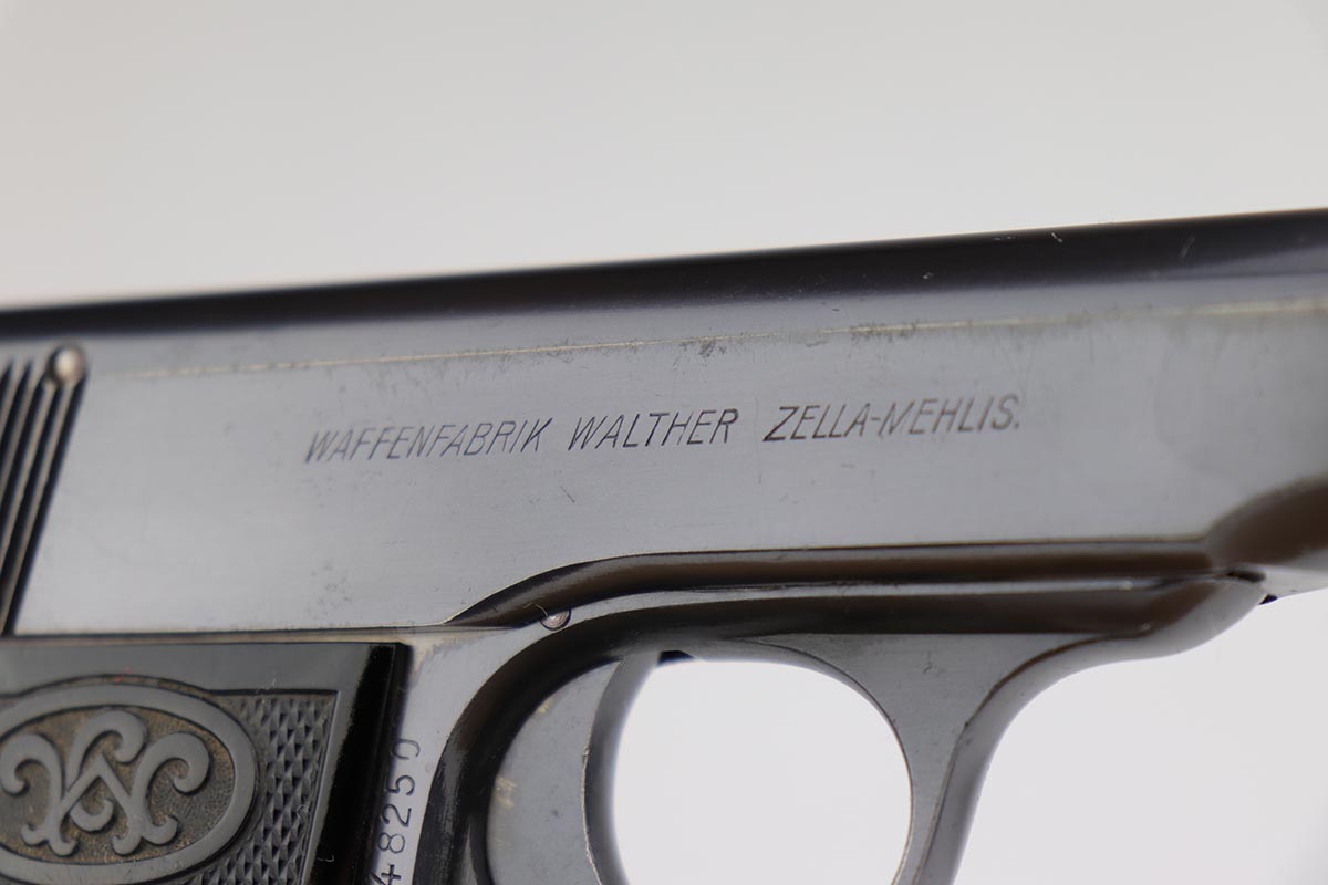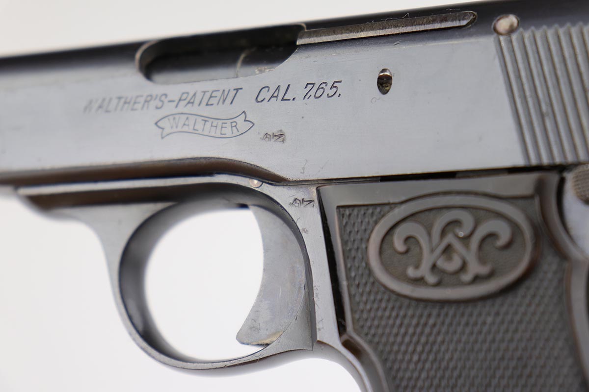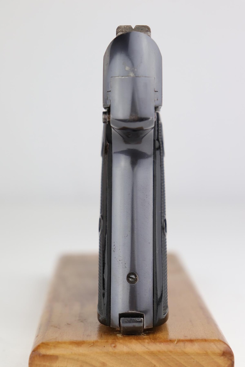 5/8/19 – This is a fantastic example of a Walther Model 4 in all matching and original configuration. Made around 1922, this pistol retains 98% original blue, with minor edge thinning and some patina around the muzzle. Correct Walther banner magazine. Excellent grips and minty bore. Tough one to upgrade.