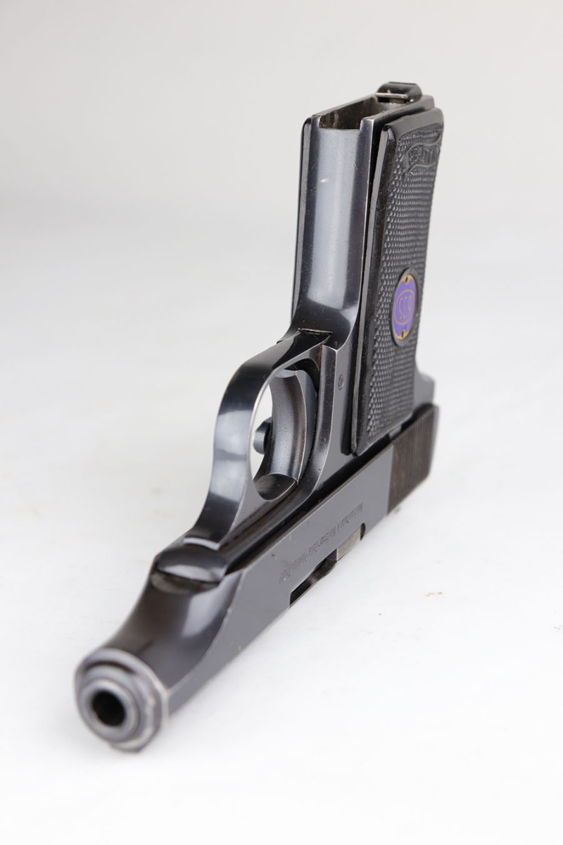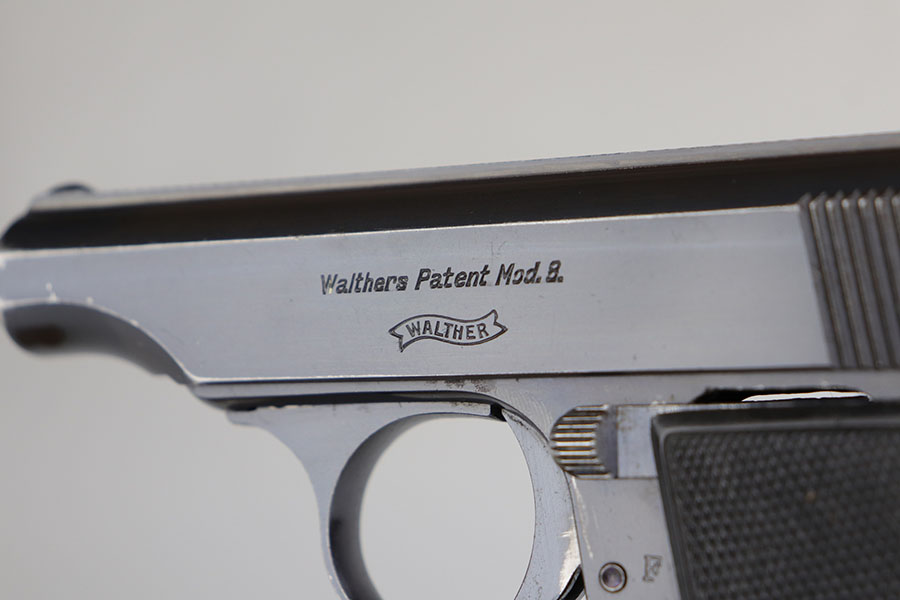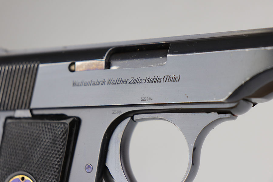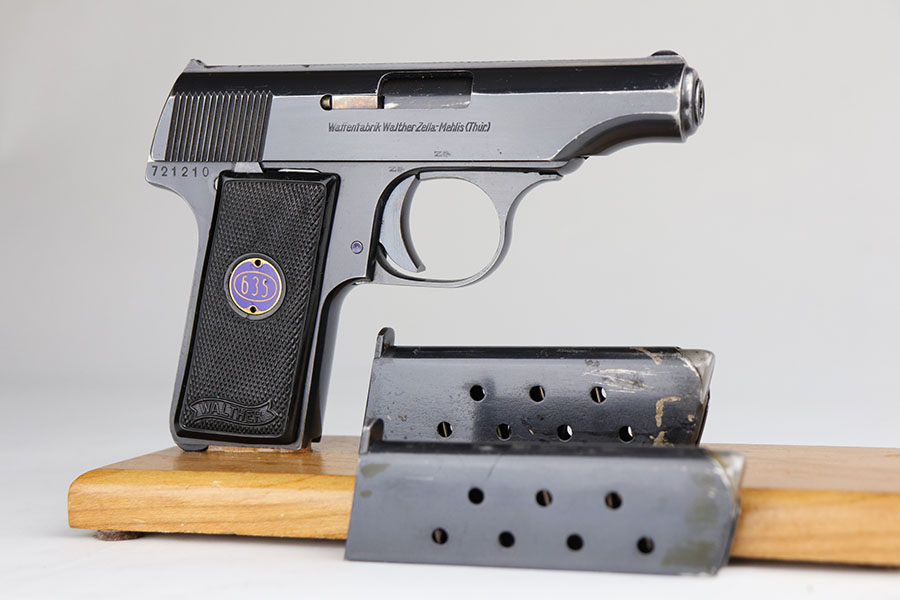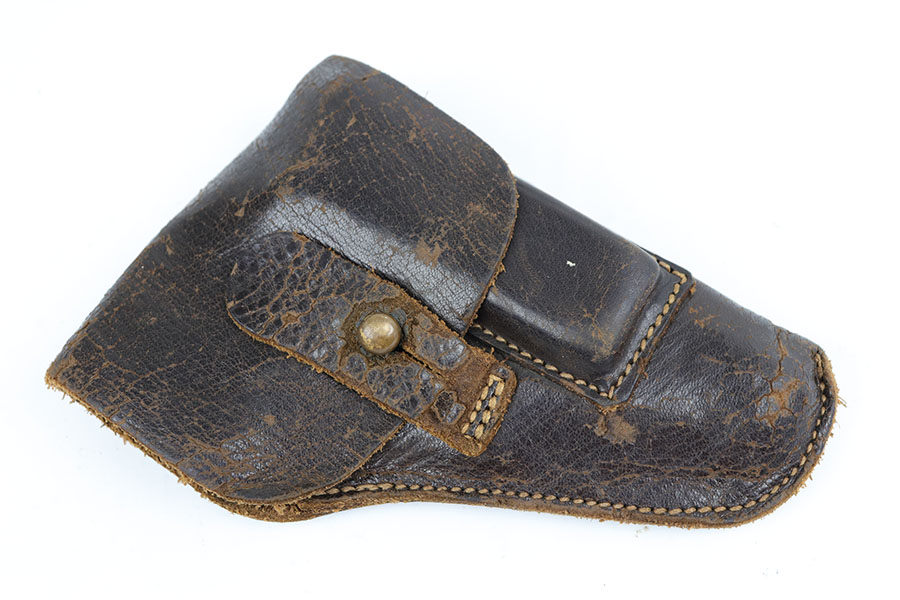 4/29/20 – This is a terrific example of a Walther Model 8 rig with spare magazine and holster. It’s a third variation, first run example, one of only about 8,000 of this variation. The pistol has 97% of the original blue with standard high edge wear from being in the holster. Excellent grips and bore. Scarce, original holster with Akah marking. Both magazines have Walther banner on base.
