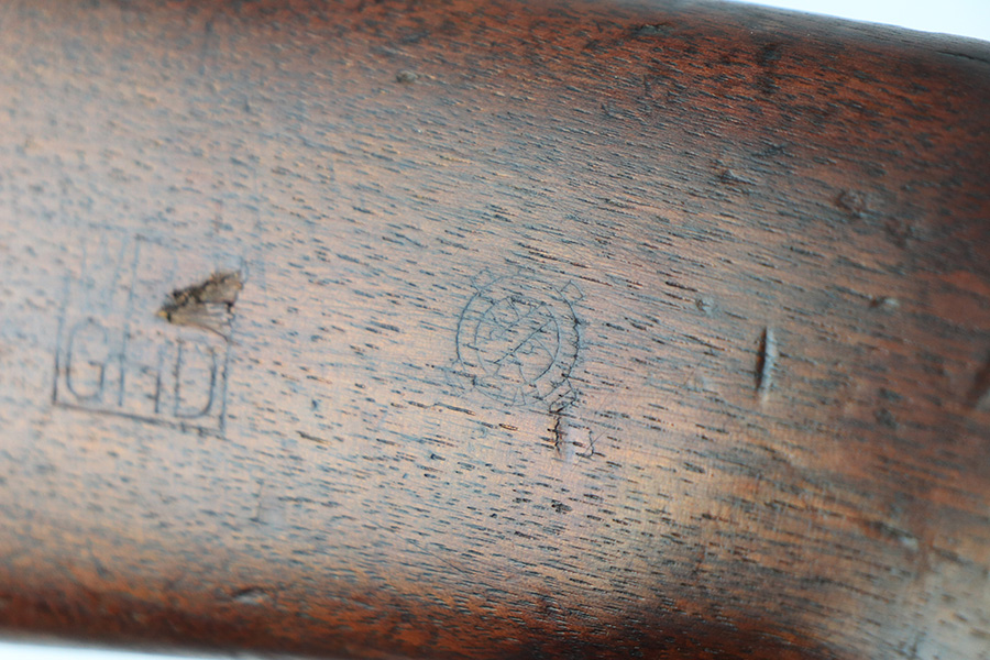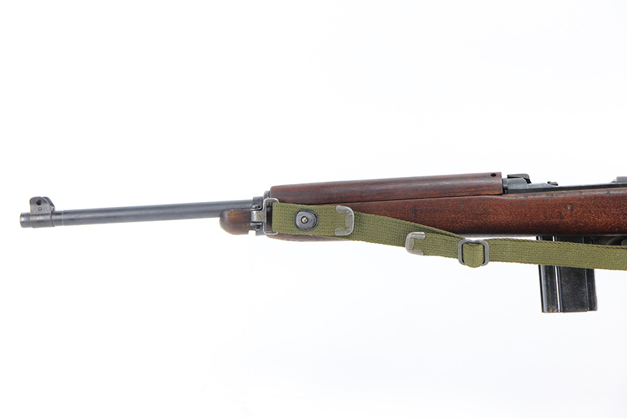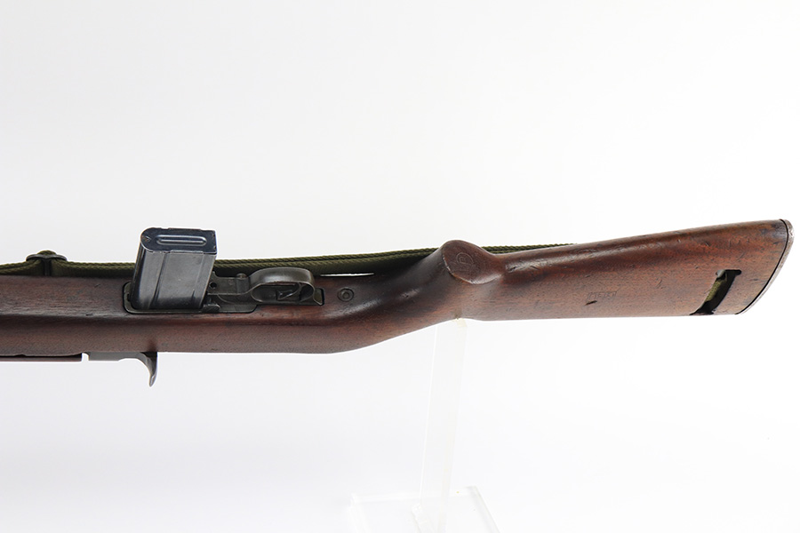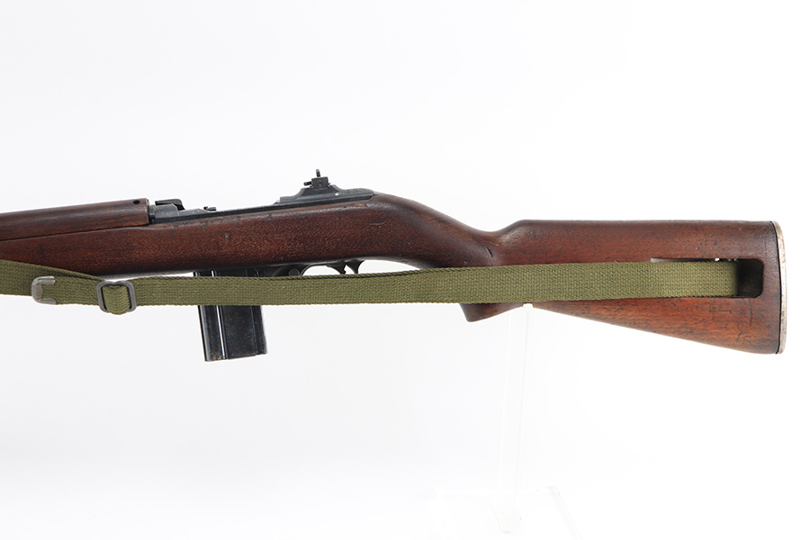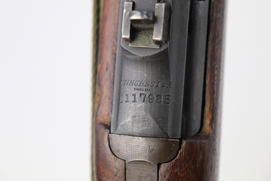 12/28/21 – This is an excellent, original Winchester M1 Carbine with Winchester parts throughout. A full parts list is included, but the rifle appears to be correct/original throughout. The trigger housing is not marked, different sources say this can be correct or incorrect. Excellent original finish throughout aside from wear on the buttplate. Very nice stock with standard dings and indents but no cracks. Sharp WRA over GHD cartouche, though there is a ding in the ‘A’. Strong, shiny bore. Includes period original canvas sling.