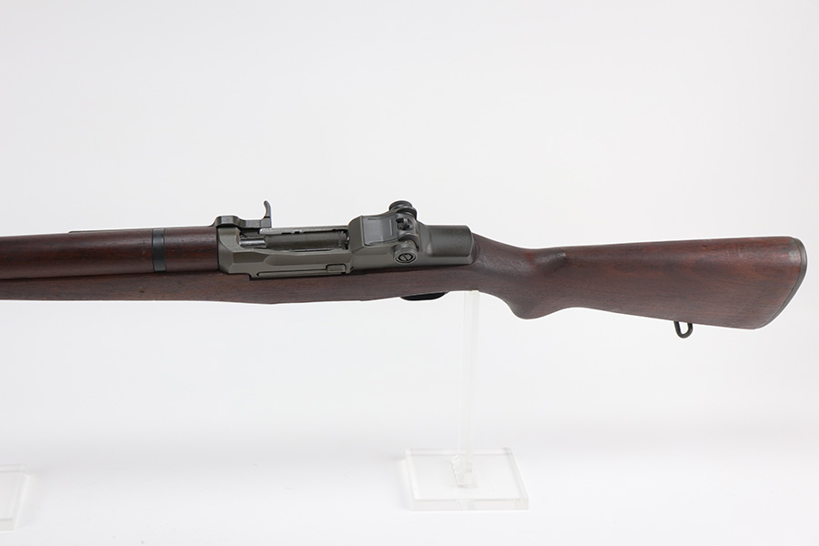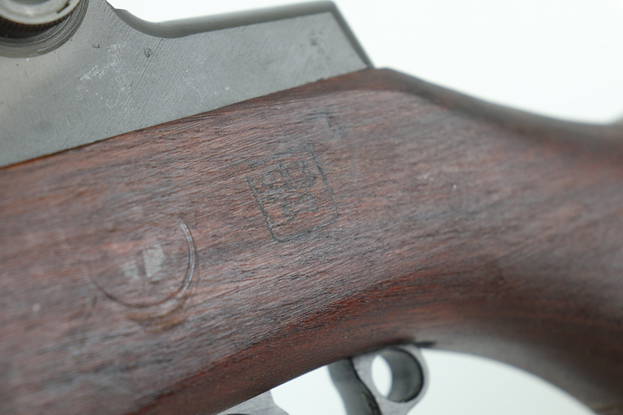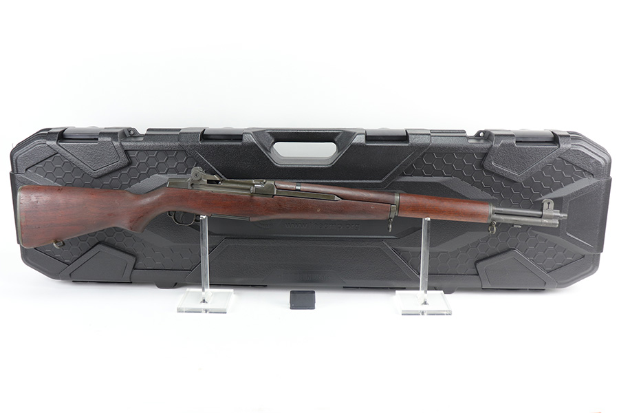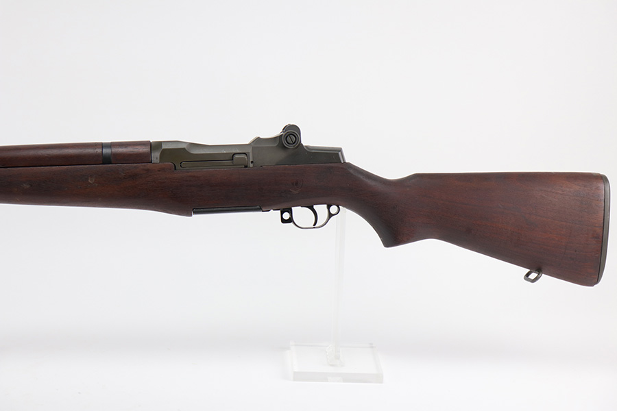 10/15/21 – This is a beautiful Winchester M1 Garand that was made in 1942 and later went through the CMP. Excellent parkerized finish throughout, with virtually no wear to mention. It’s an early Winchester serial, made in February of 1942. Barrel was made by SA in December of 1954. Beautiful cherry-colored Department of Defense stock with square P on wrist, indicating repair or arsenal re-work. Faint DOD cartouche is still visible on the left side. Hardly any handling wear to the stock. Terrific bore, muzzle and throat are both less than 1. Comes with the CMP hard case, en bloc clip and manual.