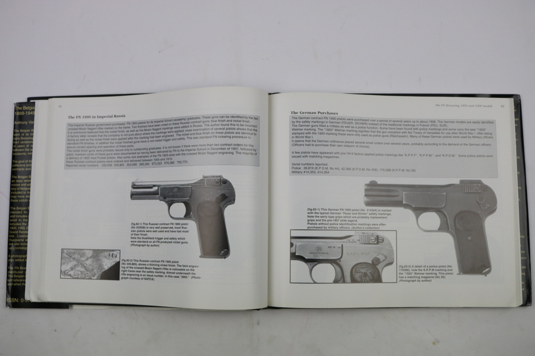 6/6/18 – The Belgian Browning Pistols by Anthony Vanderlinden is in excellent condition. This is a hardback book printed in 2001. Inside you will find 243 pages with black and white photos. All pages are in excellent condition. The cover slip has some wear on the corners.