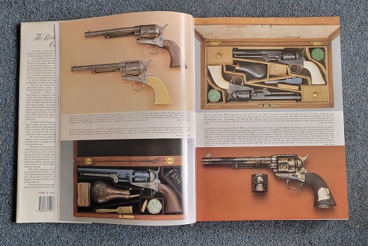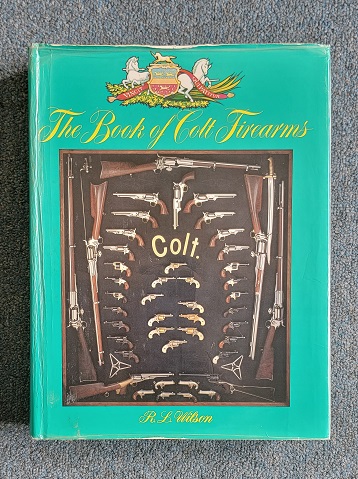 7/12/23 – This is a 608 page hardcover book with both black-and-white and color images. This large text is a resource book covering the Colt story from 1832 to the present day. No other reference book covers the Colt company and its products so extensively. The book has the original cover sleeve, although the sleeve shows some age and previous use wear. The interior cover page is dedicated to a previous owner, and signed by the author. All pages are in excellent condition.