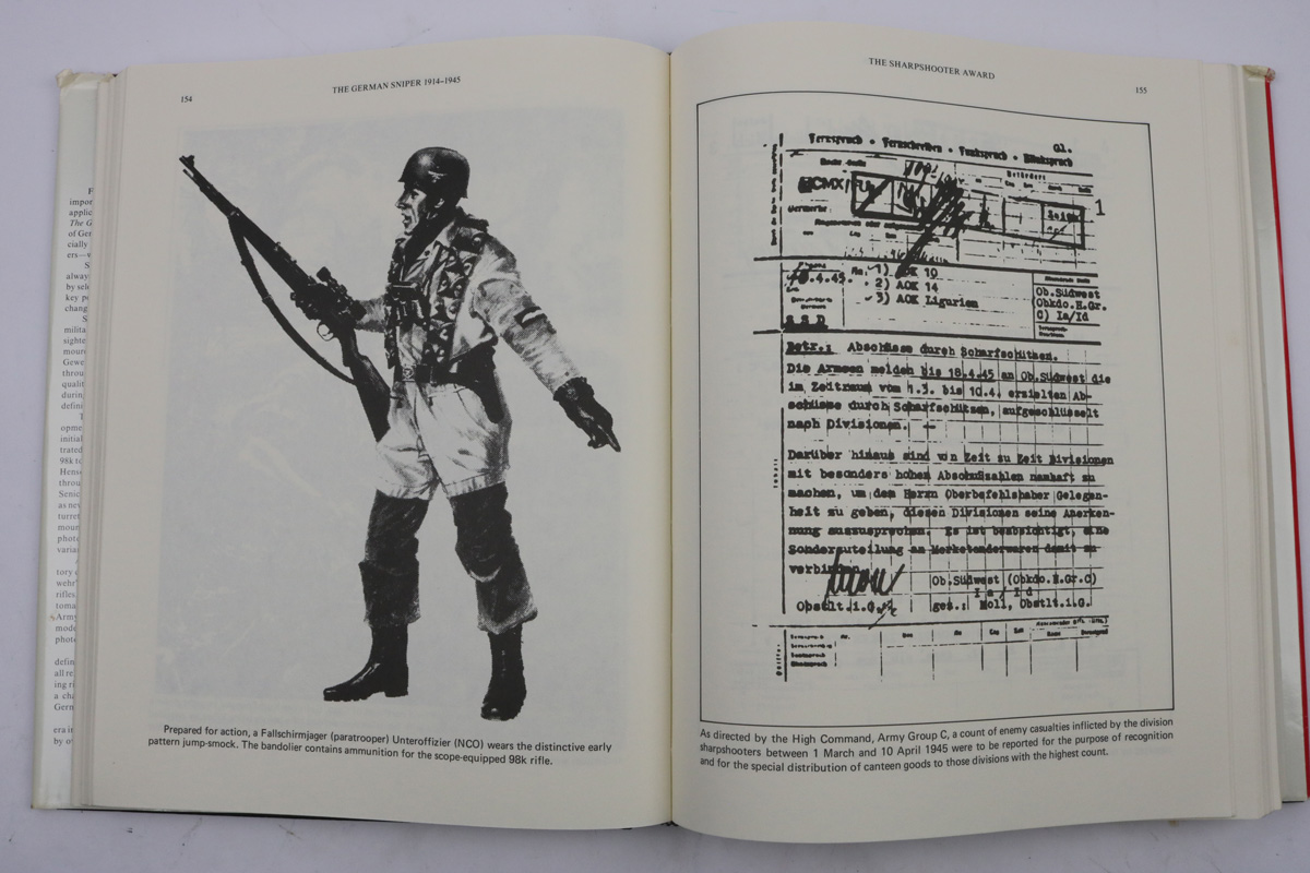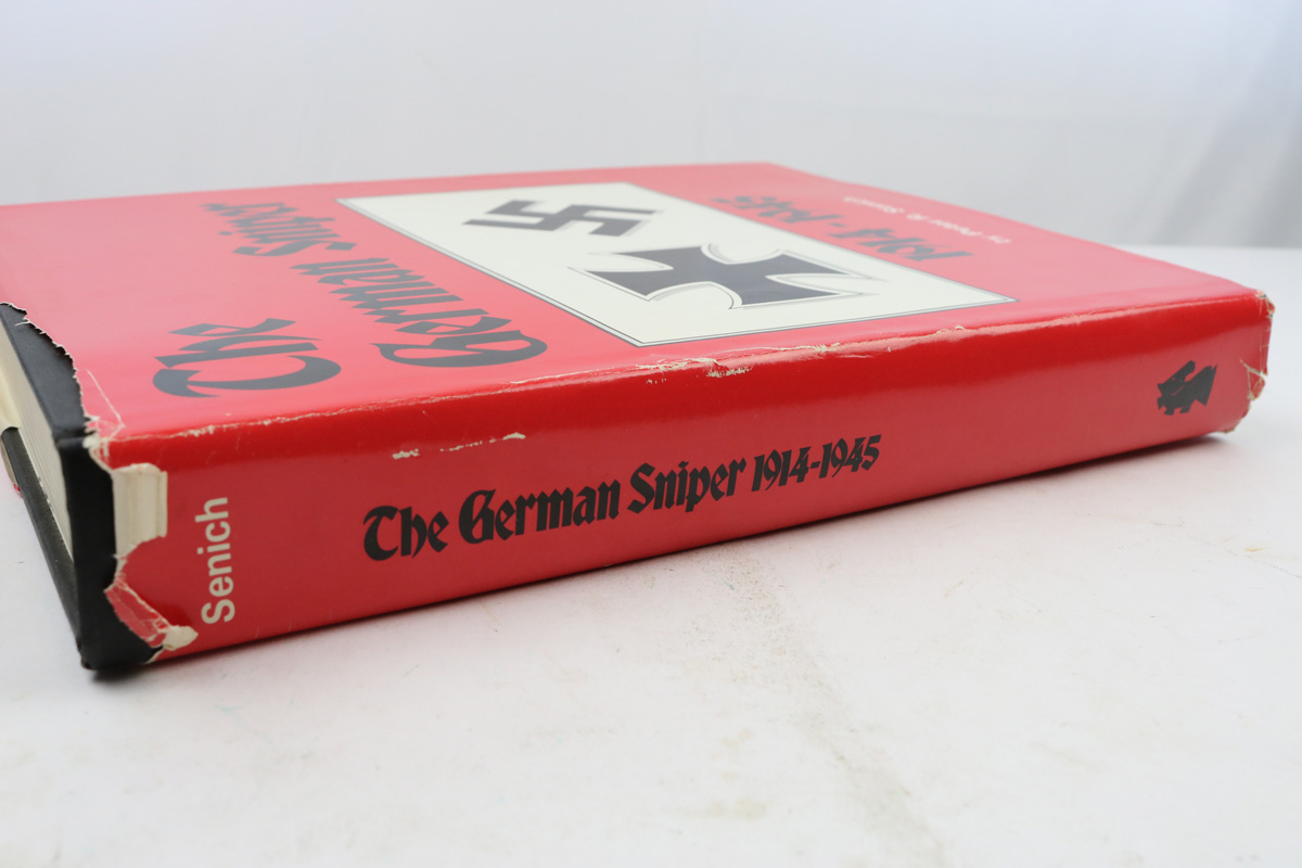 6/6/18 – The German Sniper 1914-1945, by Peter R. Senich is in great condition. Printed in 1982 with 445 pages with black and white pictures. Tearing and fraying is evident on the outer cover-slip of the hardback book.