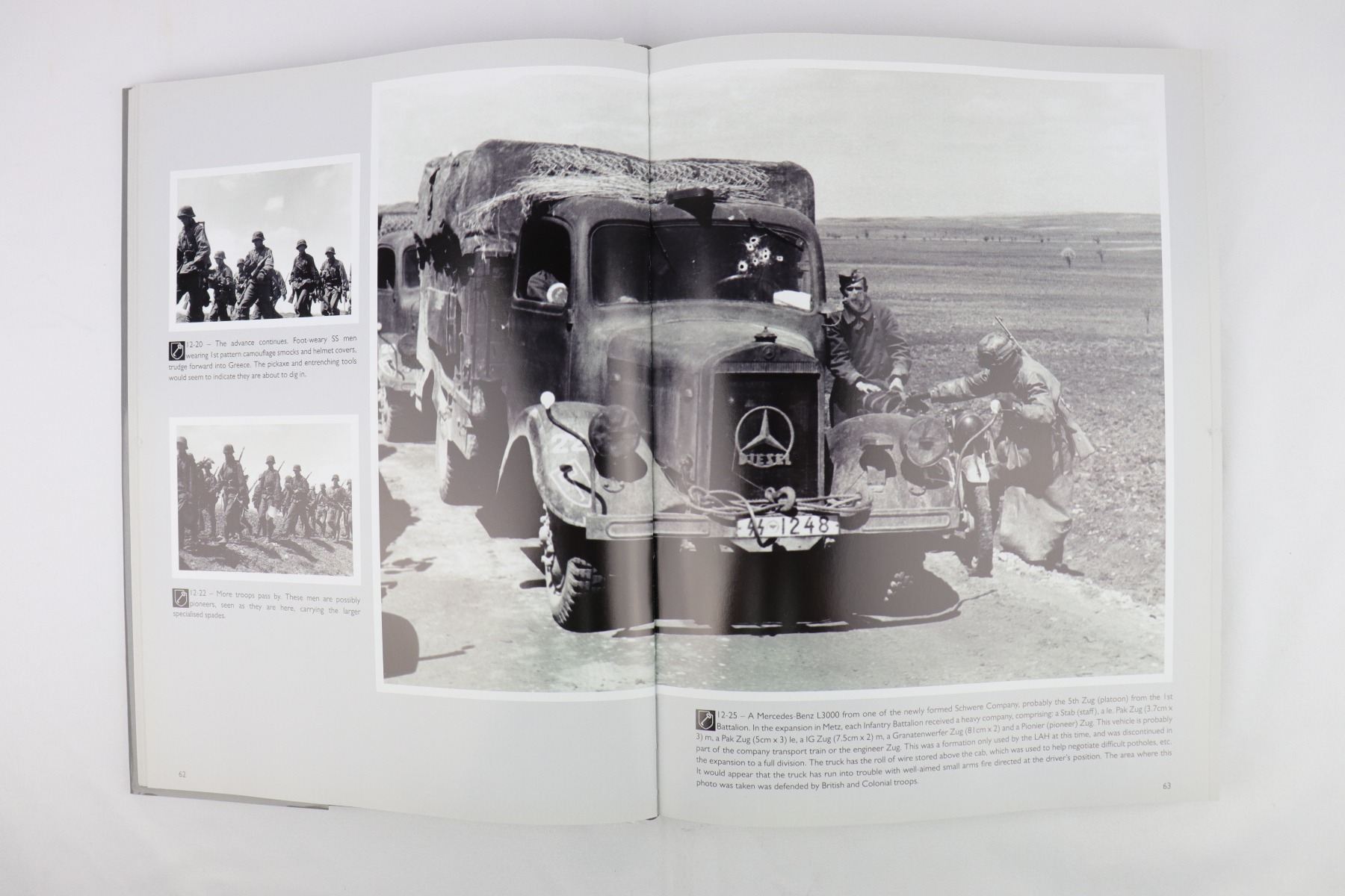 8/12/19 – Excellent condition hardcover. This book contains high-quality reproduction photographs originally taken in 1941 by an SS-Kriegsberichter. It depicts the 1st Battalion, Leibstandarte SS “Adolf Hitler” during their march through Greece in 1941. There are clear photographs of uniforms, equipment, and vehicles all with detailed descriptions. There is also a brief summary and a map of the route of the campaign.