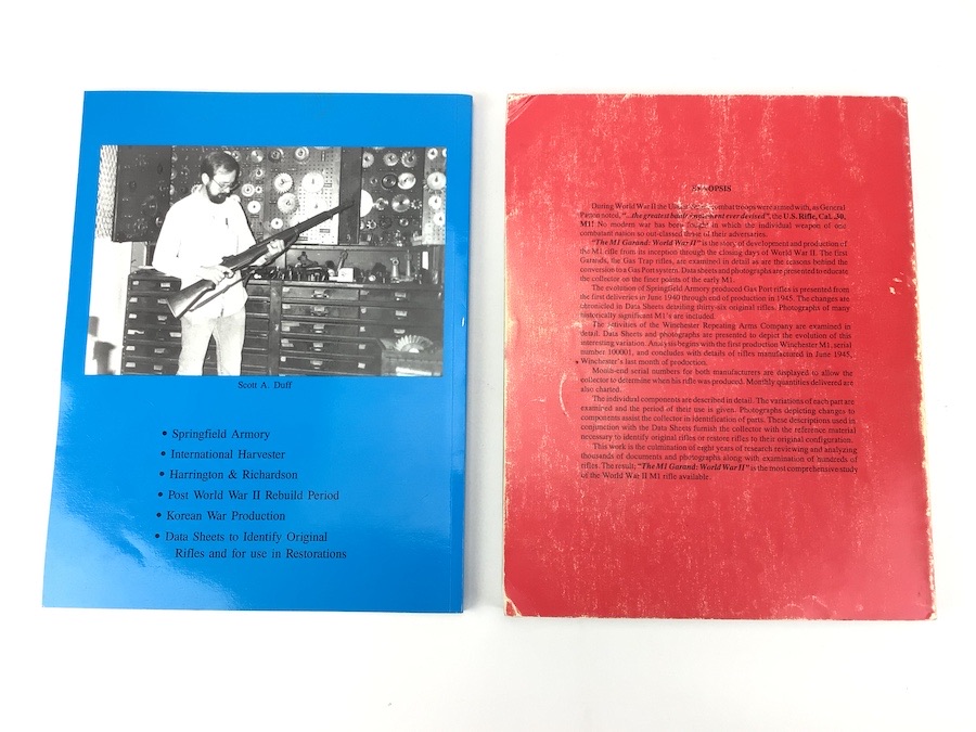 7/14/22 – Set of 2. M1 Garand reference books signed by the author, Scott A. Duff. These books cover WWII and Post WWII. A definitive reference set written specifically for the Garand collector. The post war book is in very good condition showing very little wear. Some shelf wear showing on the red colored WWII book.