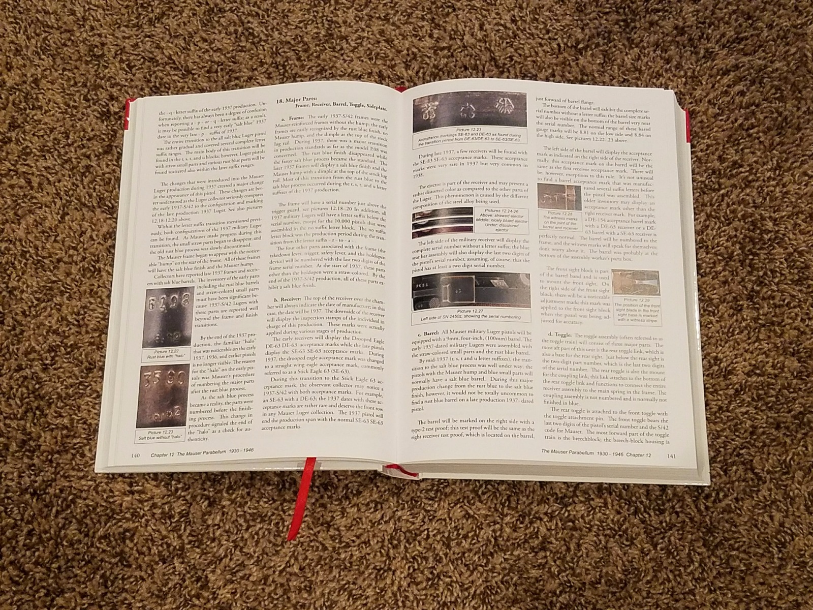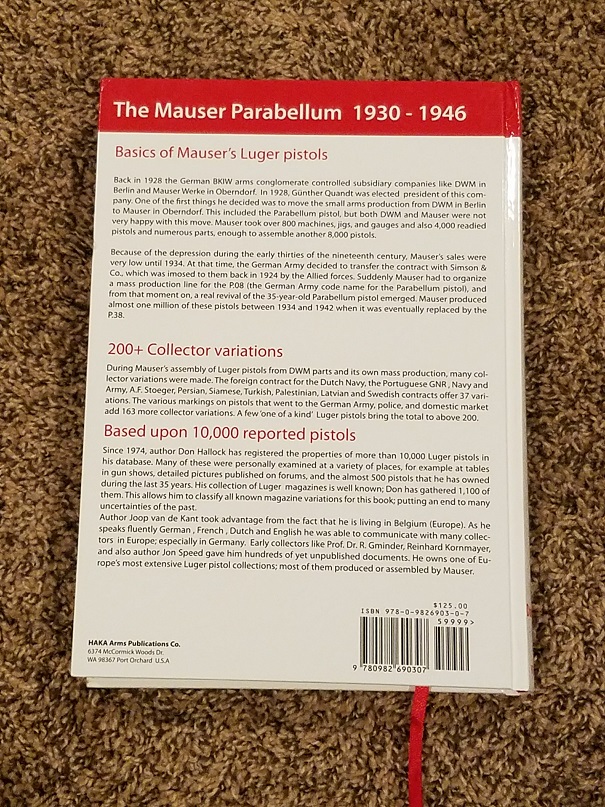 7/12/17 – This is an excellent copy of the Mauser Parabellum book. This book covers Lugers produced from 1930 to 1946. The book provides history and production details for each year that the pistol was produced, and includes information on the accessories as well (focusing more on the magazines). This hardcover book is an excellent Luger collector resource. Comes in excellent, like new condition with no pages missing. No water damage, folds, rips, or writing on the pages.