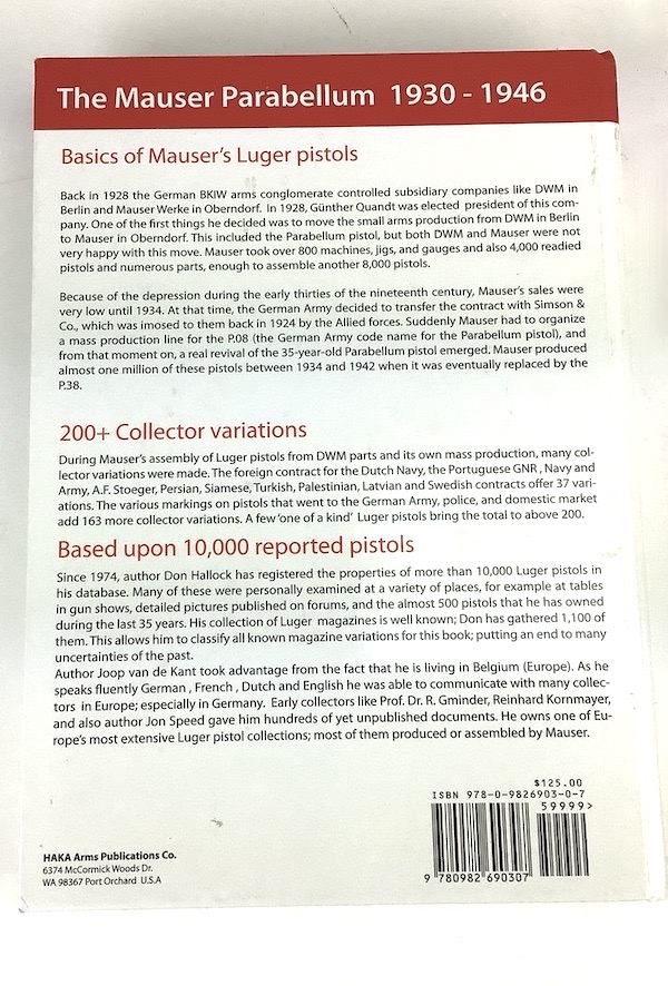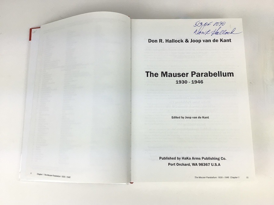 10/25/23 – This is a minty condition example of Don Hallock & Joop van de Kant’s book “The Mauser Parabellum: 1930-1946”. The book is numbered 513 of 1090 and signed by Don Hallock on the interior cover. This is a first edition printing from 2010 in like-new condition. Excellent resource book and in collectible condition.