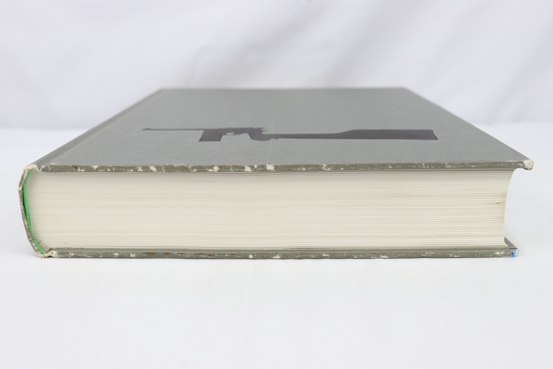 8/14/19 – Excellent condition hardcover with original dust jacket. This book focuses on the history and development of the machine pistol and submachine gun. There are many photographs with detailed descriptions. There is also information on significant features of the guns and operating principles. The dust jacket has wear on the edges and small tears on the bindings with a thin piece of tape on the front.