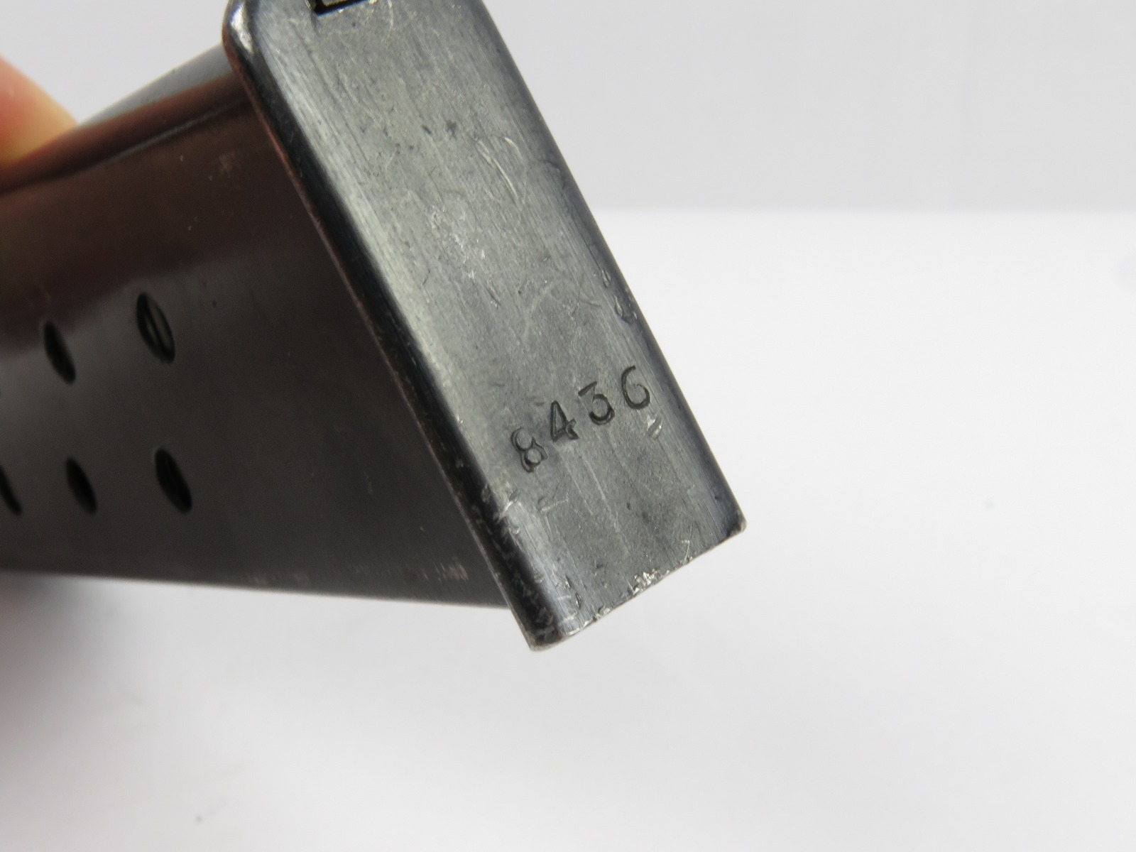 12/26/17 – This is an original WW2 production Tokarev TT magazine. The magazine holds 7 rounds of 7.62x25mm ammunition and is in excellent condition. The base is serial numbered “8436”. Guaranteed original and fully functional.