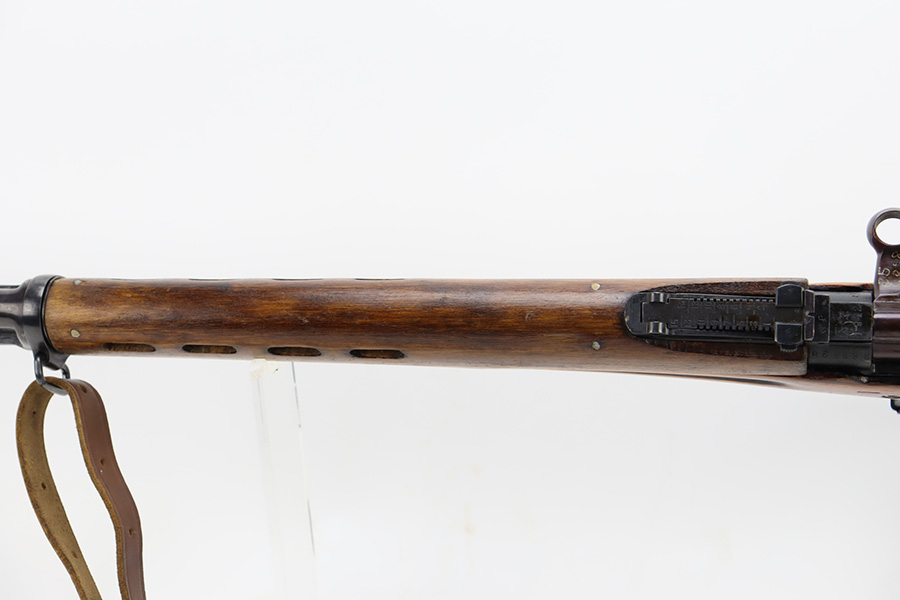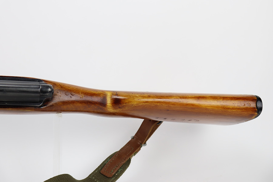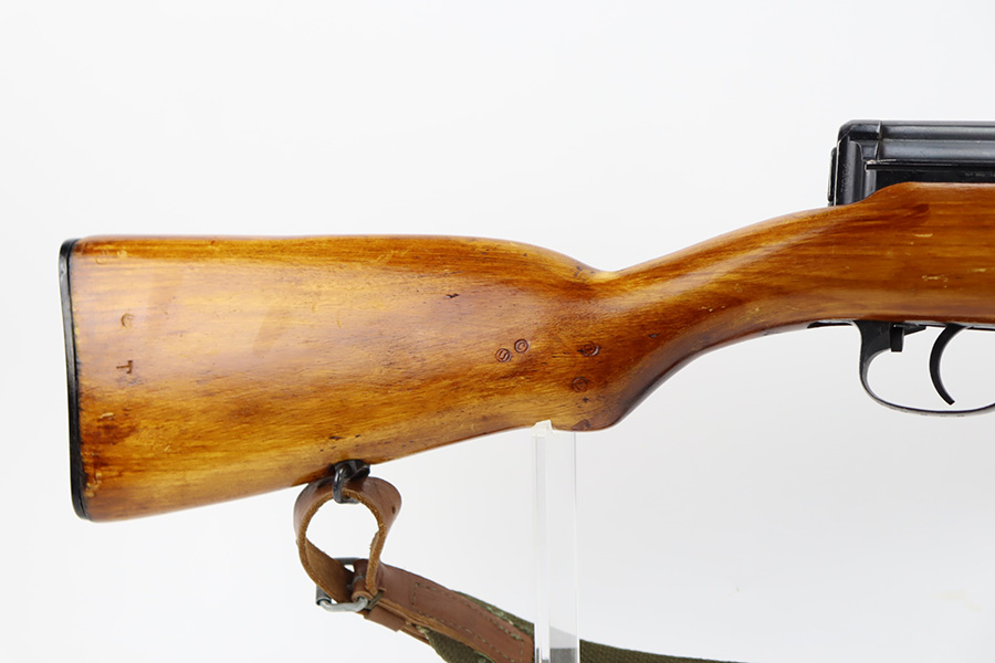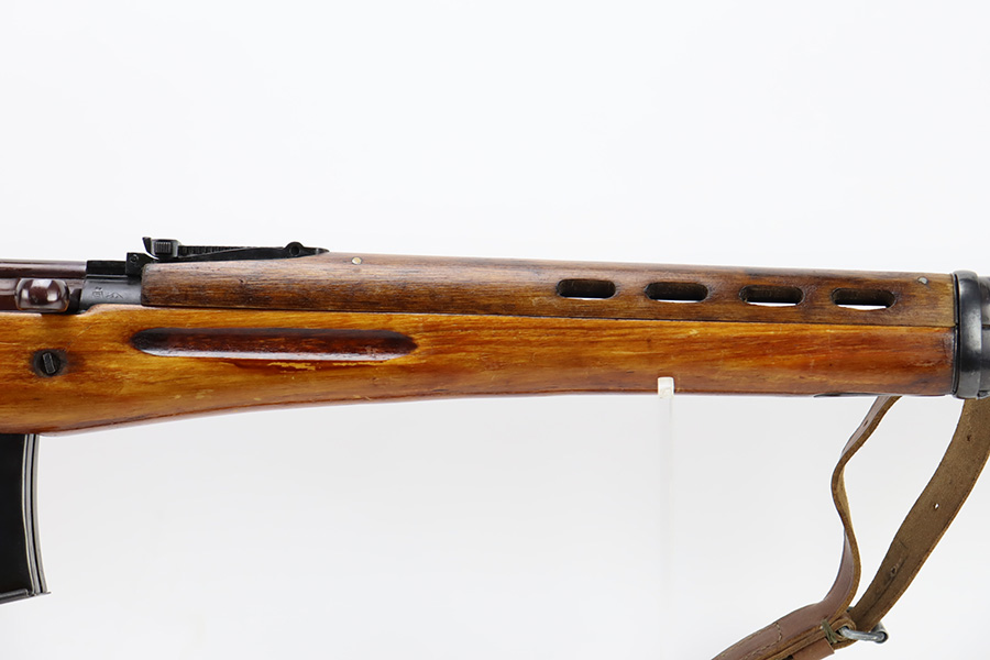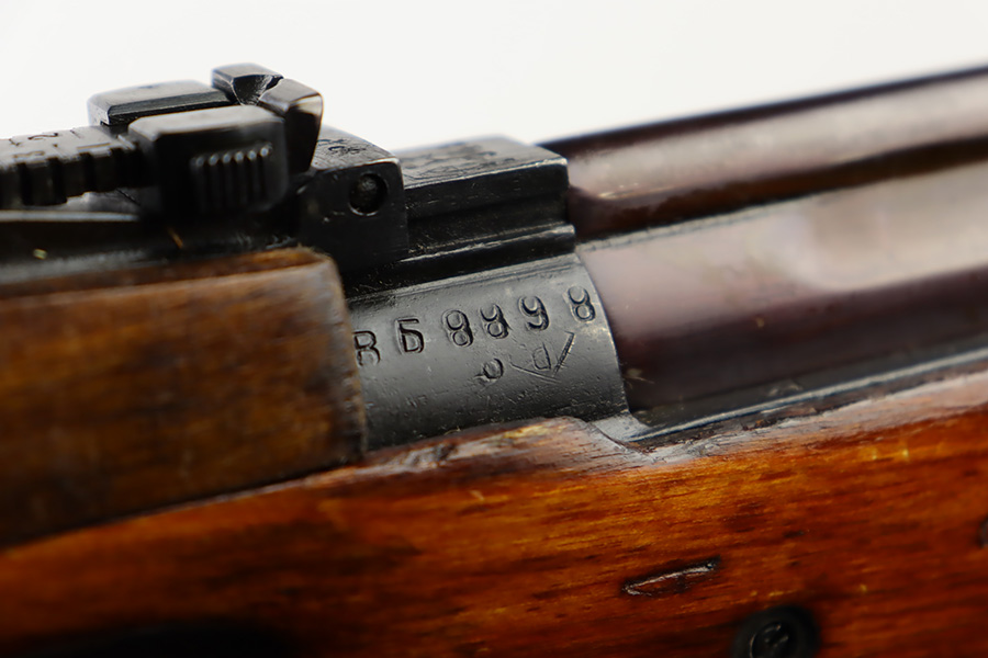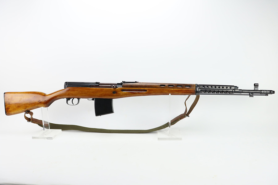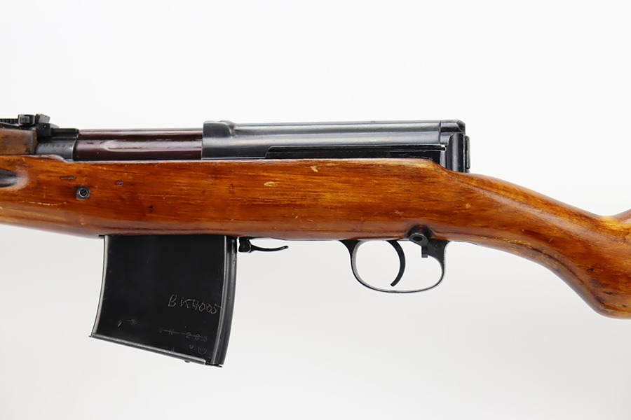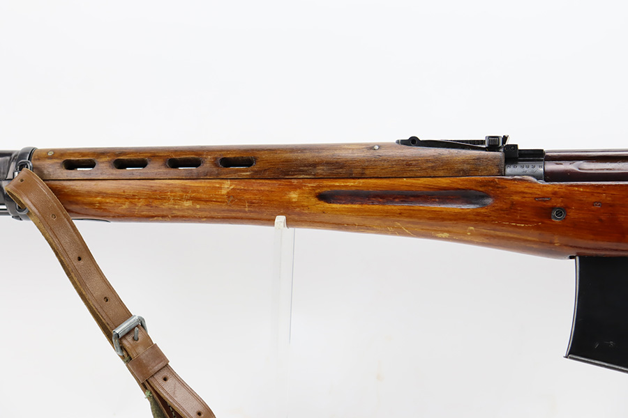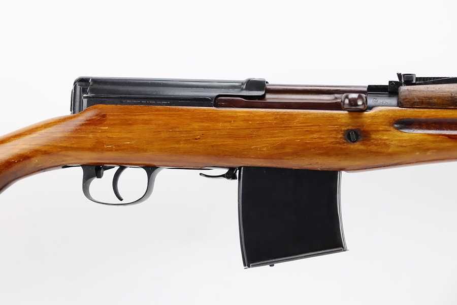 10/12/23 – This is a very nice Russian SVT-40 that was made in 1942 at the Tula factory. Matching numbers on the receiver, trigger guard and stock with etched serial on bolt and a mismatched serial on mag. The rifle was refurbished so the bluing is excellent overall. Small import mark on right side of receiver. Comes with canvas sling and a cleaning rod. The stock shows minor handling wear but no cracks or structural issues. Bore has strong rifling but frost and freckling in the grooves. Comes with a reproduction bayonet.