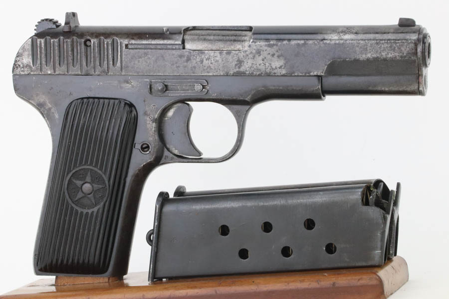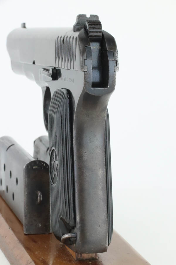 09/13/2024 – For sale is a TT-33 Tokarev made at the Tula in 1941. The pistol is in good condition overall but has lost a lot of its original finish surviving the wars it’s been through. The slide has lost roughly half of its finish and has freckling of oxidation. The frame has spots of wear and freckling as well. The bore is plenty bright with good rifling. The parts on the pistol are matching but the magazines are mismatched. The holster is in good condition but well-worn. There is a hole on both sides at the bottom of the holster.