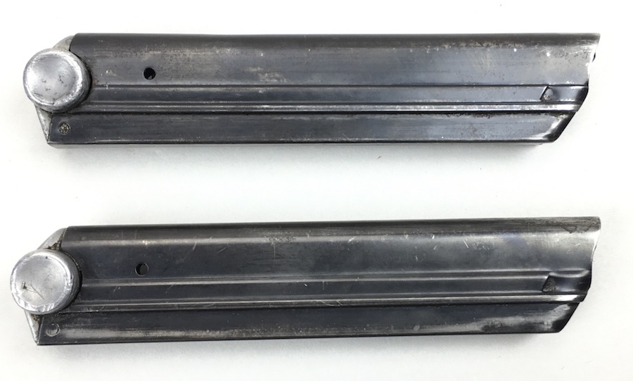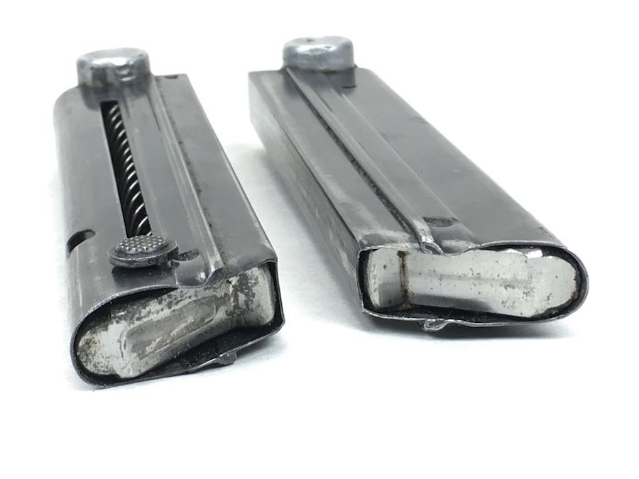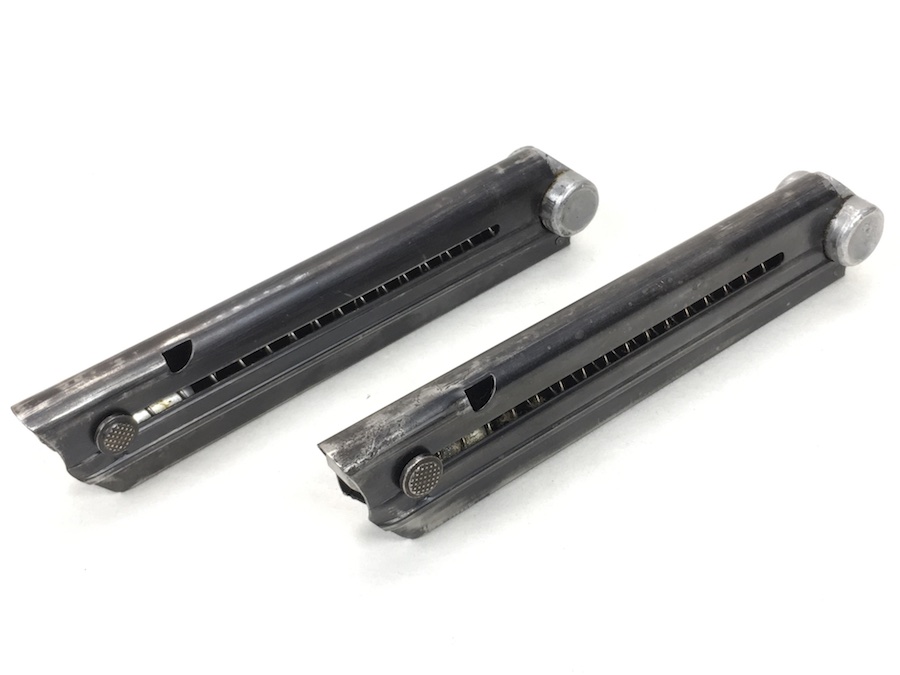 7/12/19 – This is a pair of factory original matching serial numbered Luger magazines from WW2. The magazine bases are numbered “9304” and E/655 military proof stamp. The serial numbers are guaranteed to be factory original and have no signs of altercation or tampering. The magazines are both in very good condition with no notable flaws and excellent, fully functional springs. A must-buy if your Luger is anywhere near this serial number.