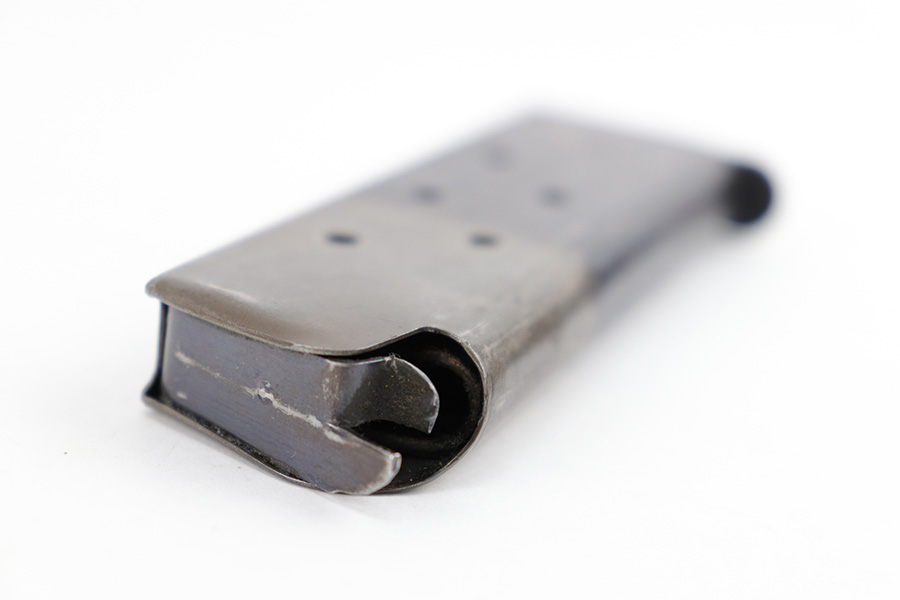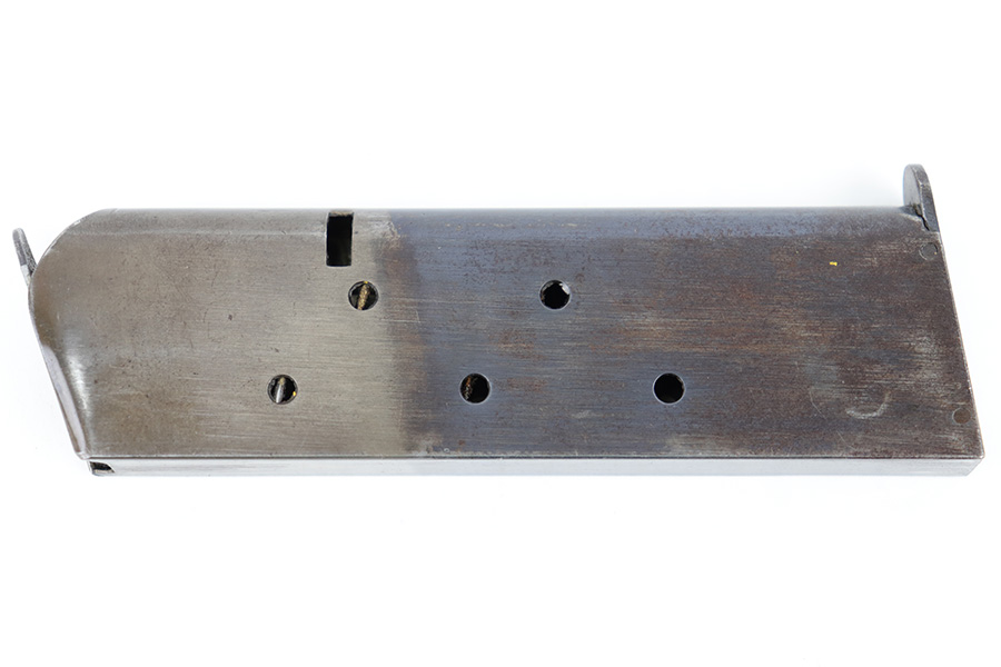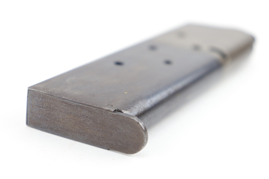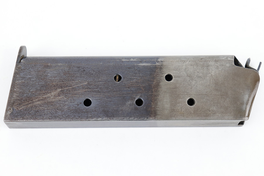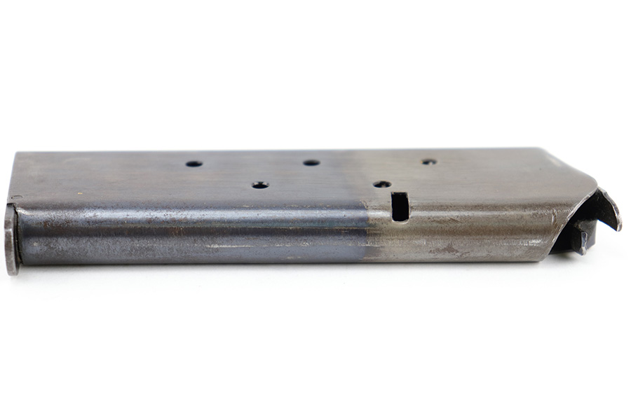6/30/23 – This is an original Colt 1911 magazine from WW1. The magazine has a two-toned finish and is in great overall condition. There’s mild surface patina throughout but no rust or pitting. The spring is strong and fully functional. No markings or stamps with typical Colt construction.
