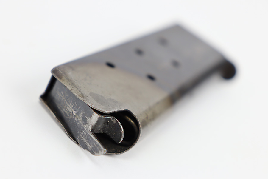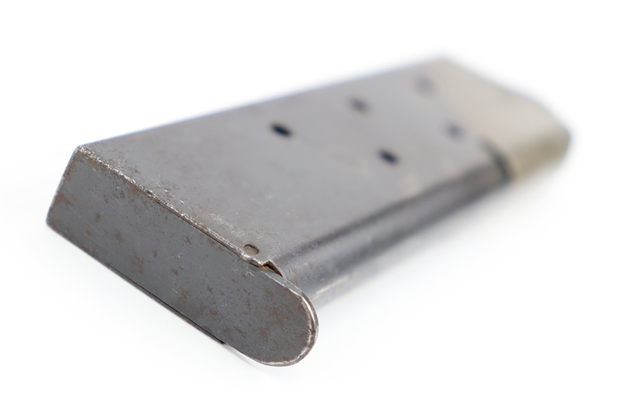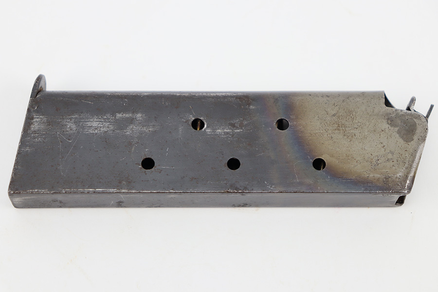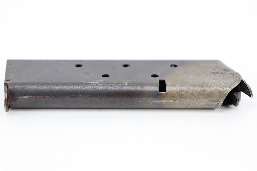 12/11/23 – This is an original WW1 production Colt M1911 magazine. Iconic two-toned finish with natural aging and patina throughout, but most of the original finish still intact. Strong, functional spring.