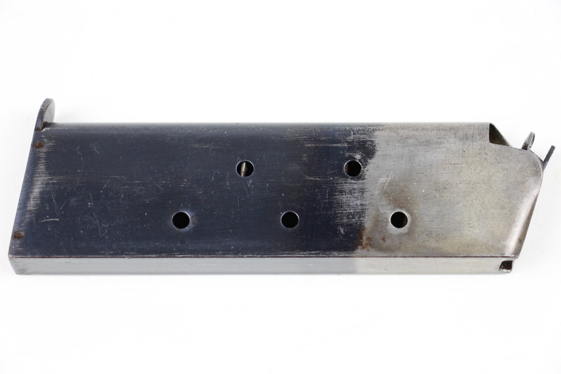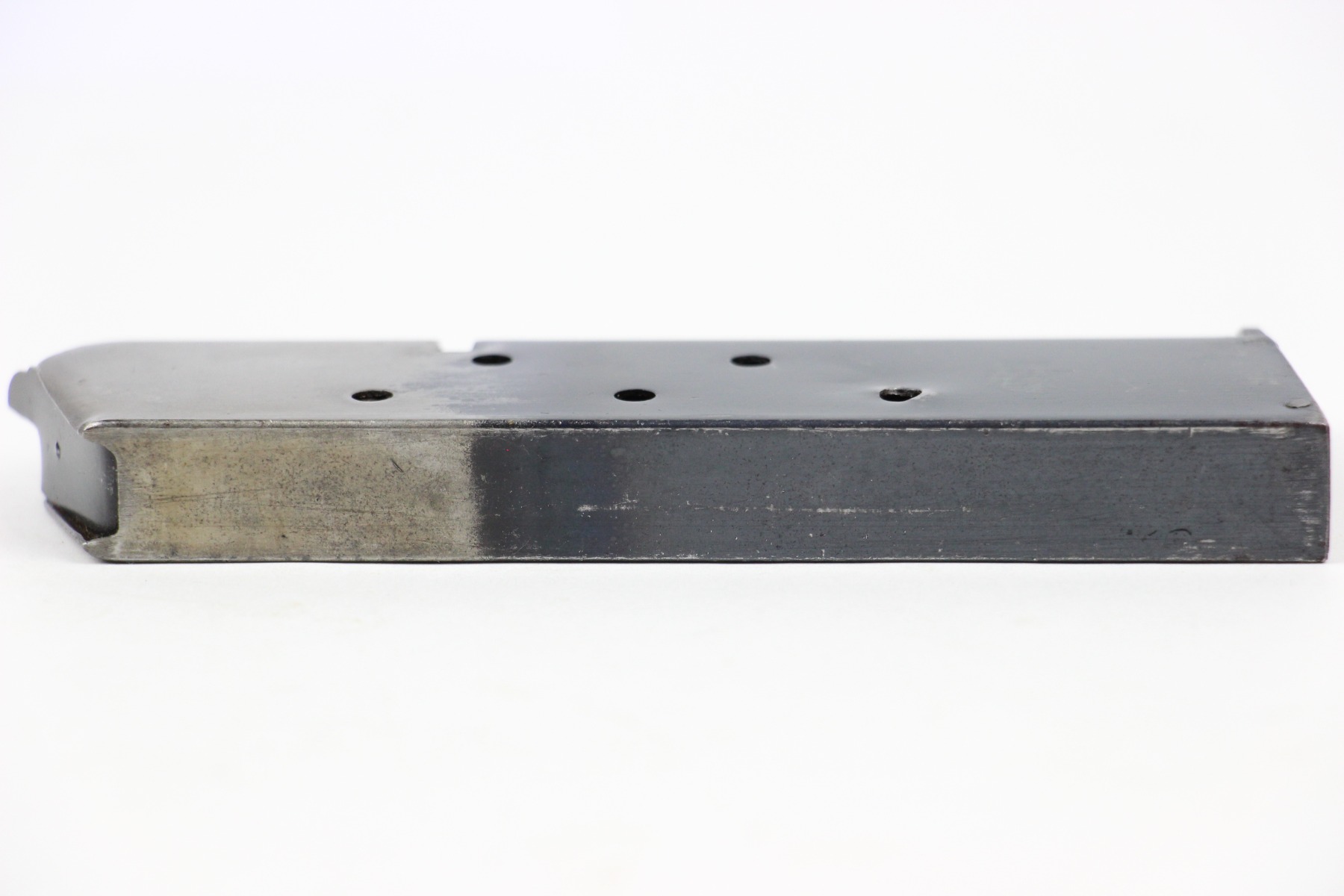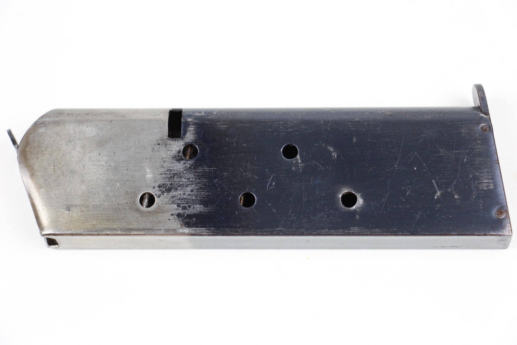 4/17/24 – This is a WW1 era production Colt M1911 pistol magazine. The magazine is in excellent overall condition with minimal finish loss on the blued portion of the magazine. There’s light surface patina and mild thinning in areas but no major issues. The base is pinned with two pins on each side, which is correct for Colt manufactured magazines. The spring is strong and fully functional.