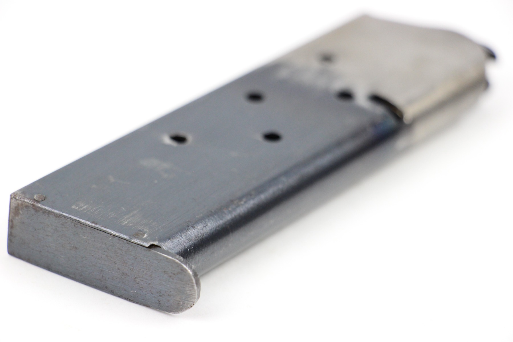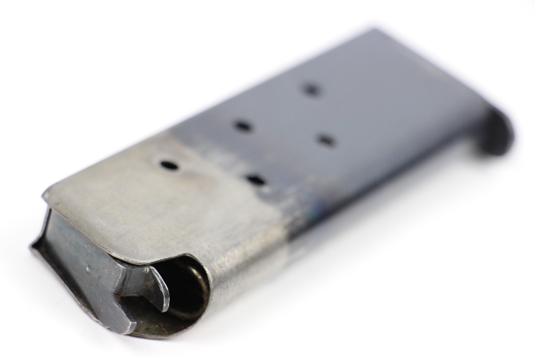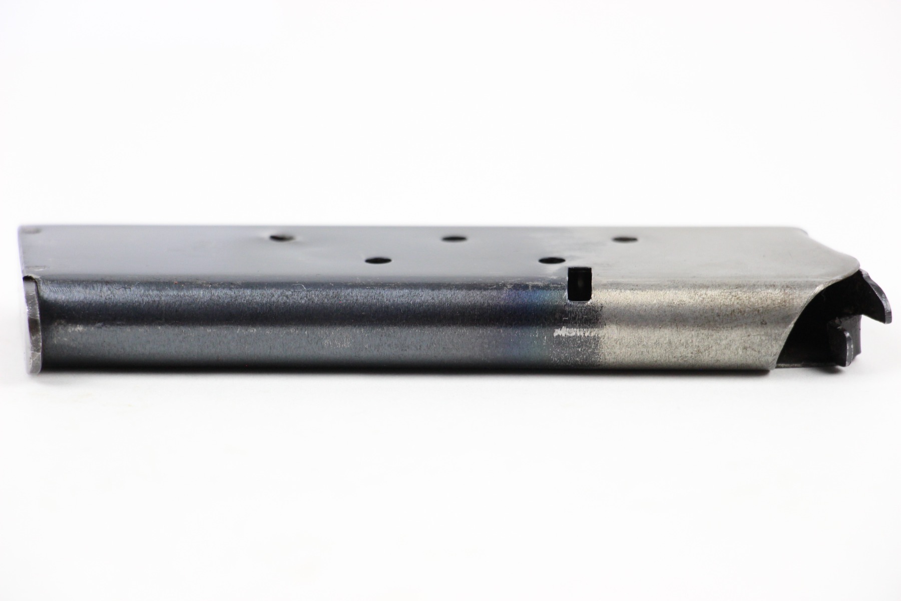 4/17/24 – This is a WW1 era production Colt M1911 pistol magazine. The magazine is in excellent overall condition with minimal finish loss on the blued portion of the magazine. There’s light surface patina and mild thinning in areas but no major issues. The base is pinned with two pins on each side, which is correct for Colt manufactured magazines. The spring is strong and fully functional.