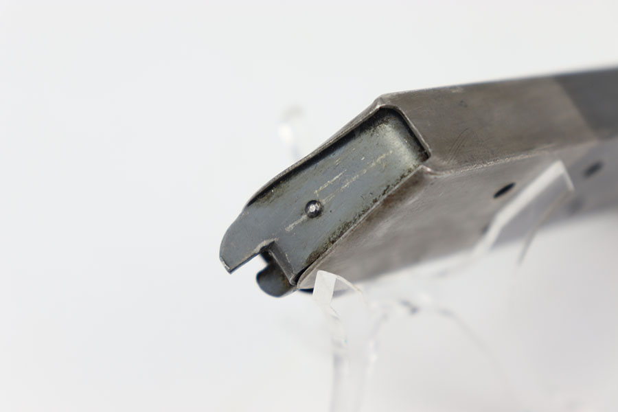 7/15/24 – This is an original Colt 1911 magazine from WW1. The magazine has a two-toned finish and is in great overall condition. There’s minor wear throughout but no rust or pitting. The spring is strong and fully functional. No markings or stamps with typical Colt construction.