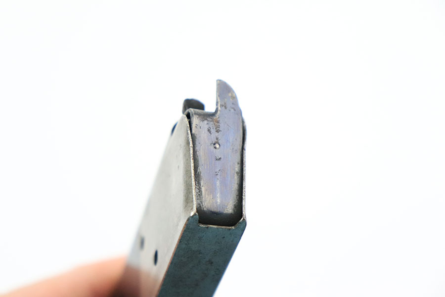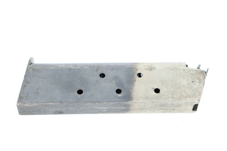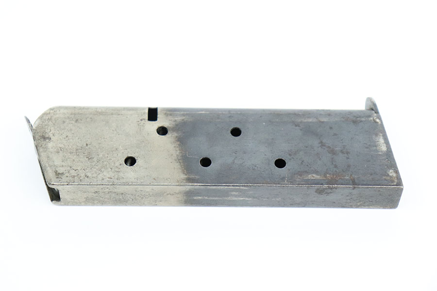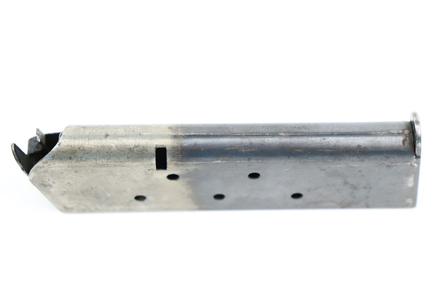 10/7/22 – This is an original two-tone Colt 1911 magazine. WW1 era production with no markings or stamps. The frame shows some mild surface patina but no rust or pitting, and most of the original finish intact. The spring is strong and fully functional.
