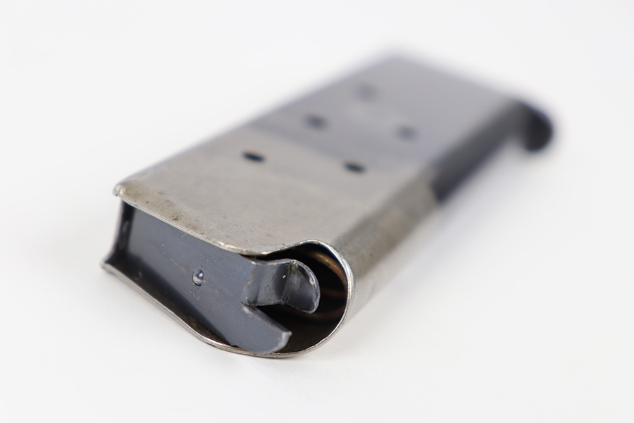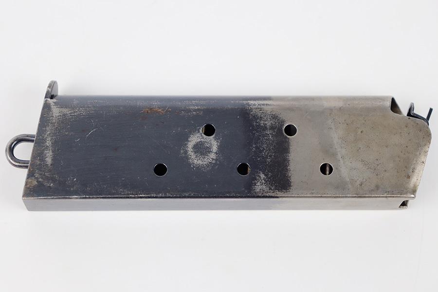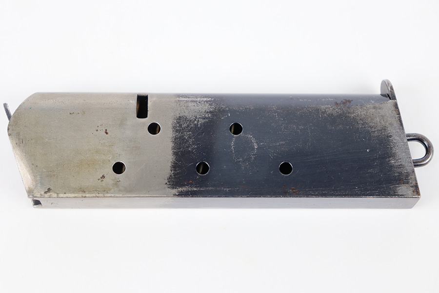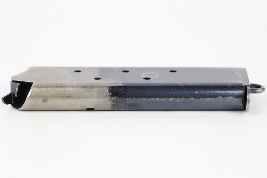 11/3/23 – This is an original, early WW1 production Colt M1911 magazine. The magazine has a two-tone finish with some mild finish loss and light patina throughout but great overall condition. Strong, functional spring.