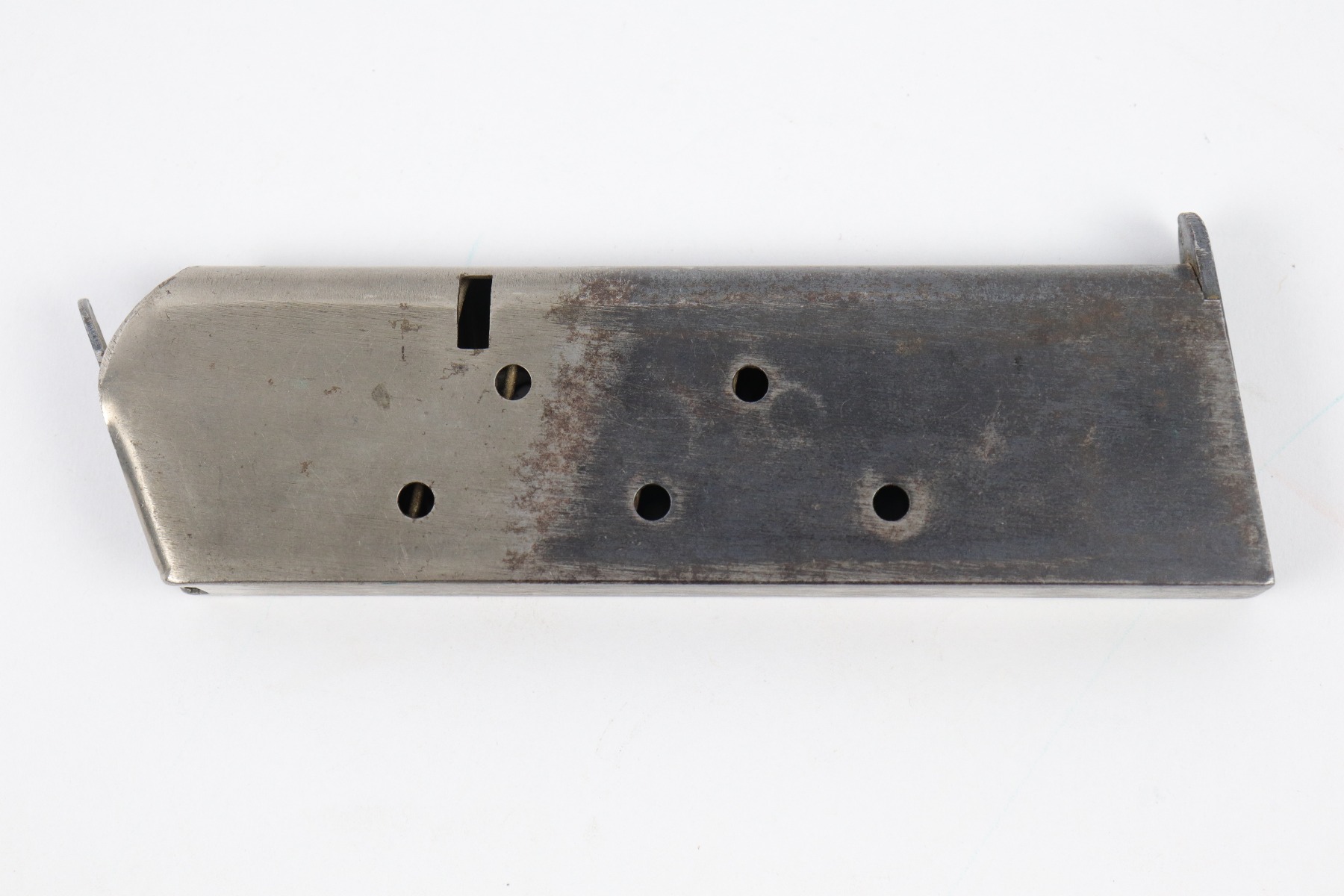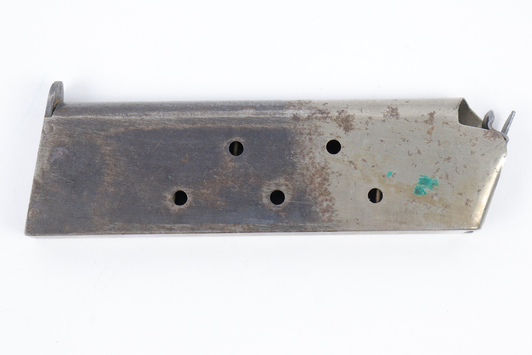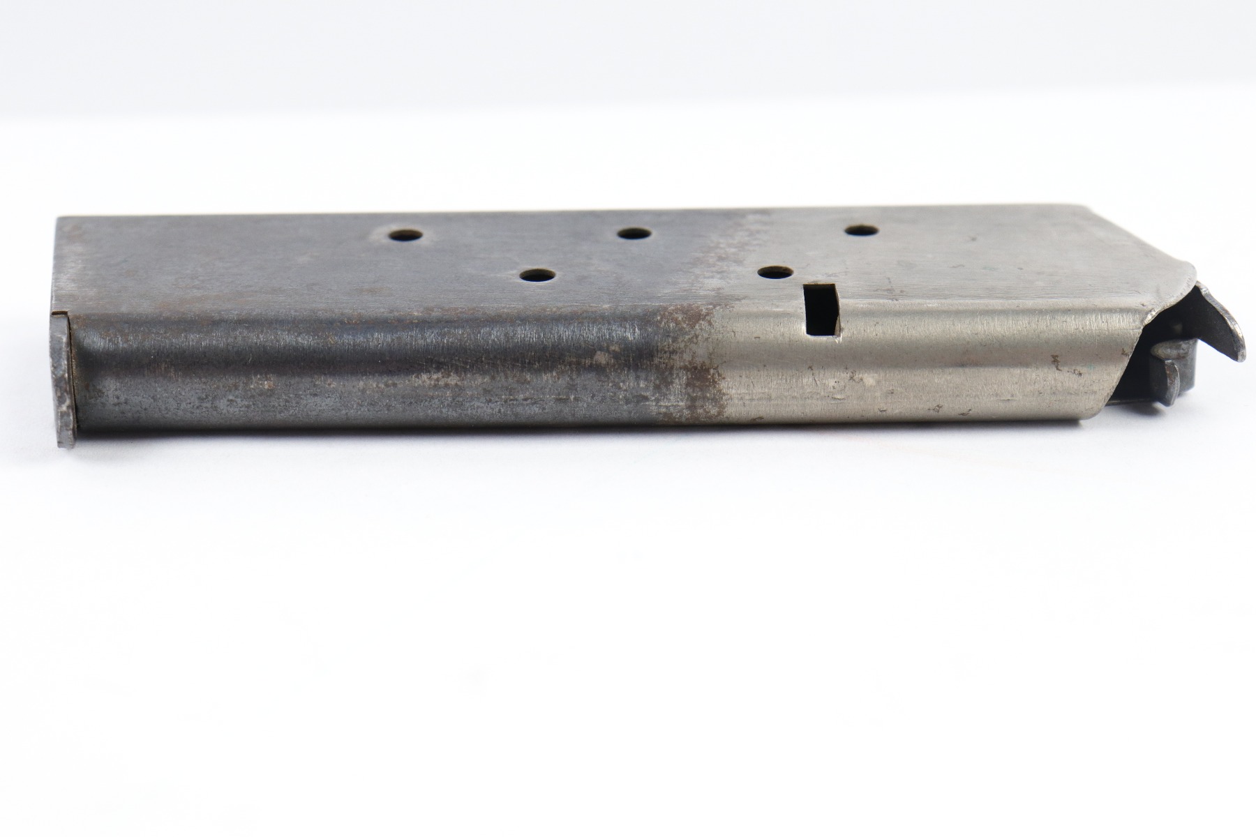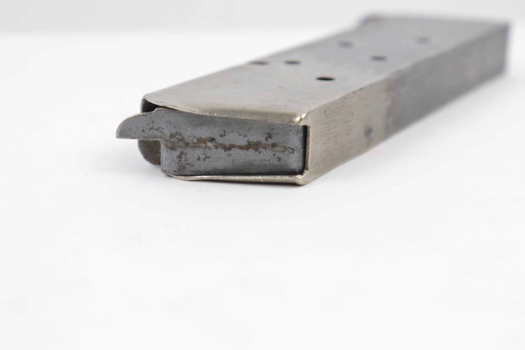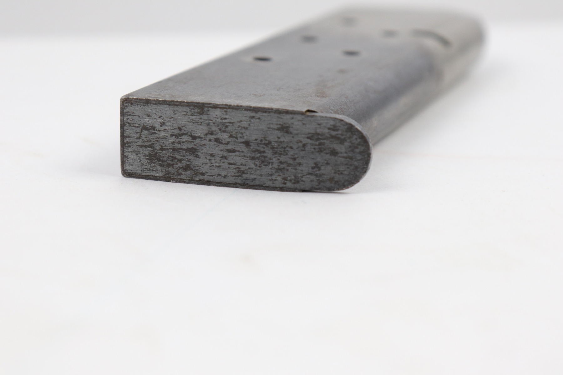 4/19/18 – This is an original two-tone 1911 Colt magazine. The magazine has spotty wear throughout as shown in photos. The spring is strong and fully functional. Overall in good condition and priced to sell!
