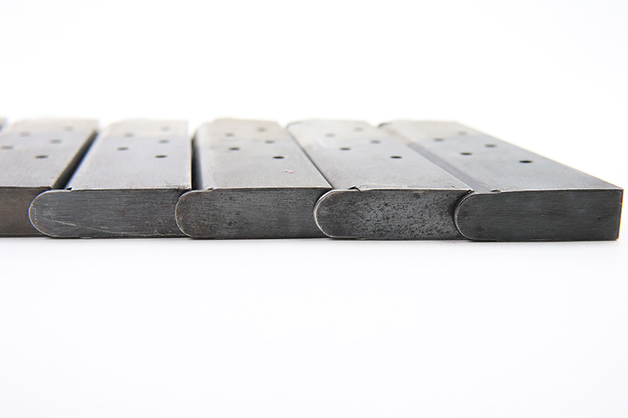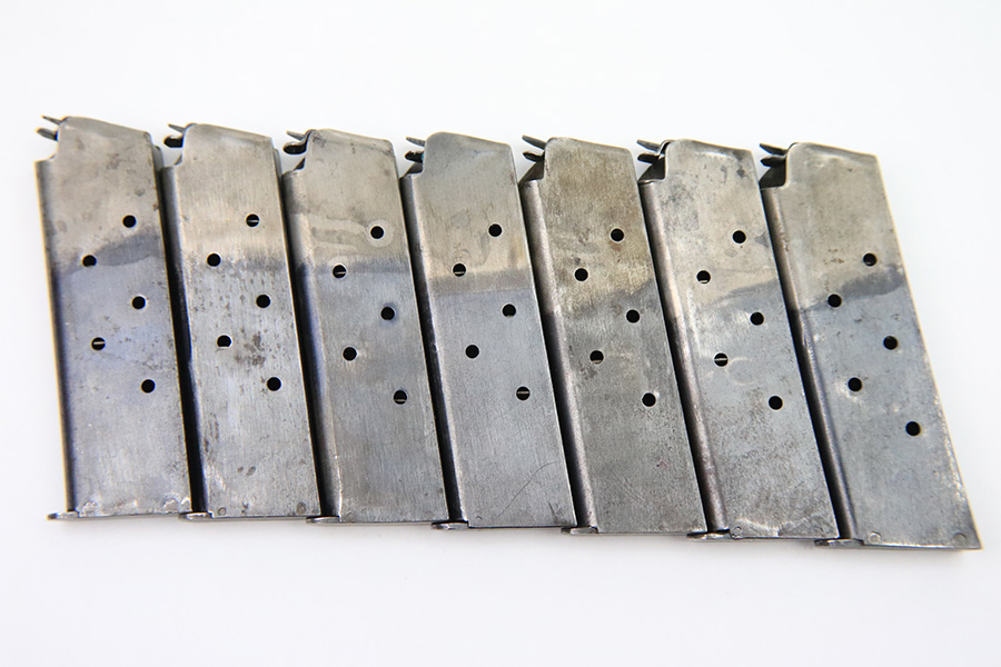 12/15/22 – Price per magazine. We have multiple two-tone Colt 1911 magazines from WW1. Great condition with some mild spotty wear and patina but very nice finish overall. Strong, fully functional springs as well.