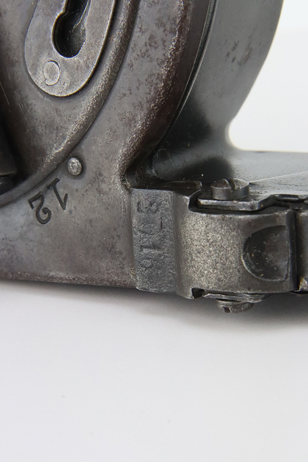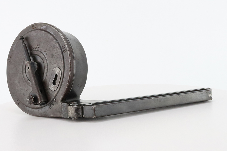 2/2/24 – This is an original, rare variation WW1 Artillery Luger Snail Drum Magazine. This is the Type 1, early variation. The magazine holds 32 rounds and is all original. The magazine tube is Imperial proof stamped. Bing maker marked. There is not much actual bluing loss, but there is brown patina under the finish throughout. Strong, functional spring.