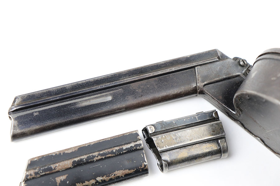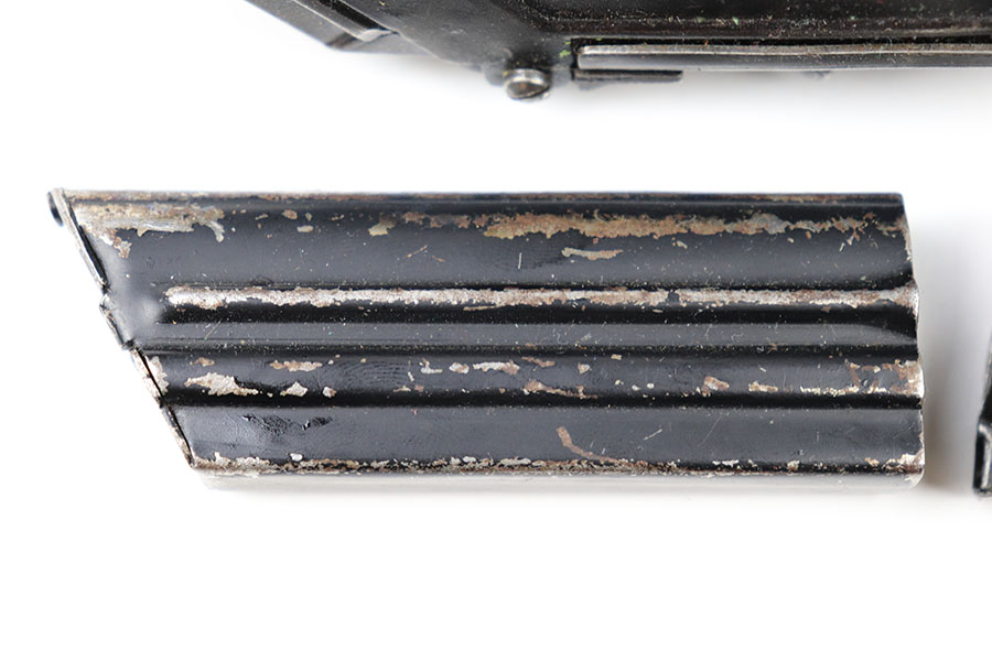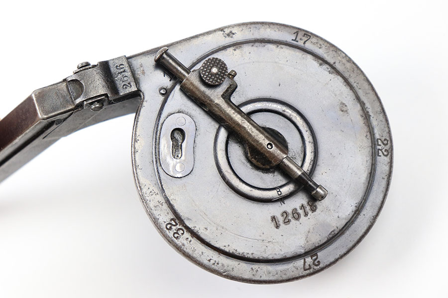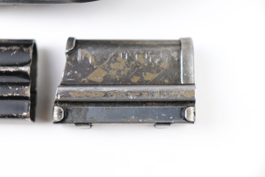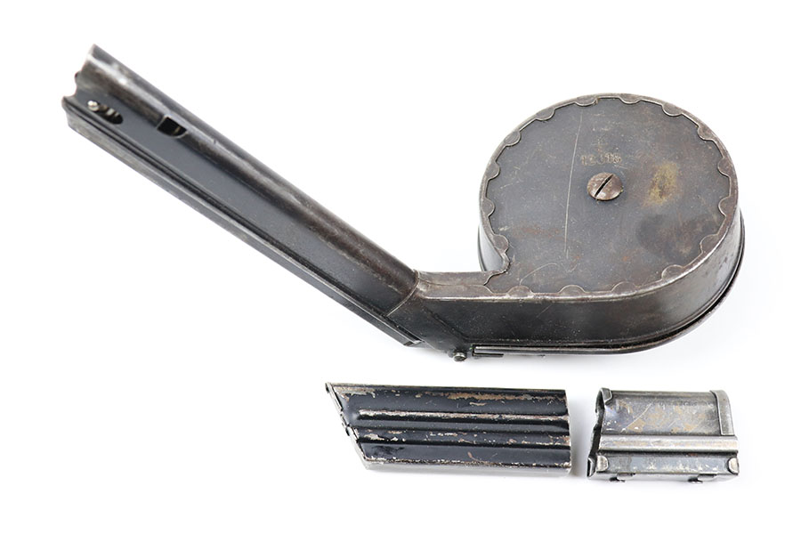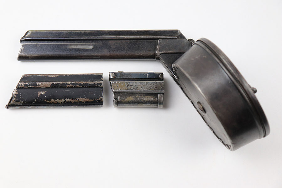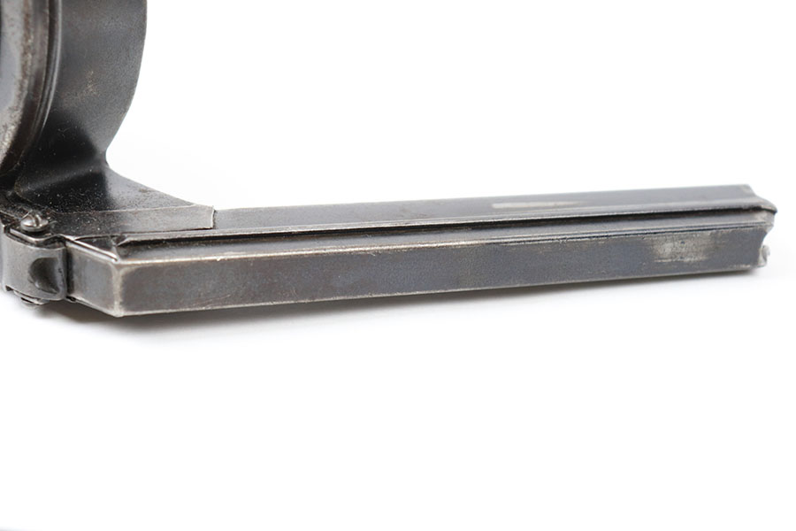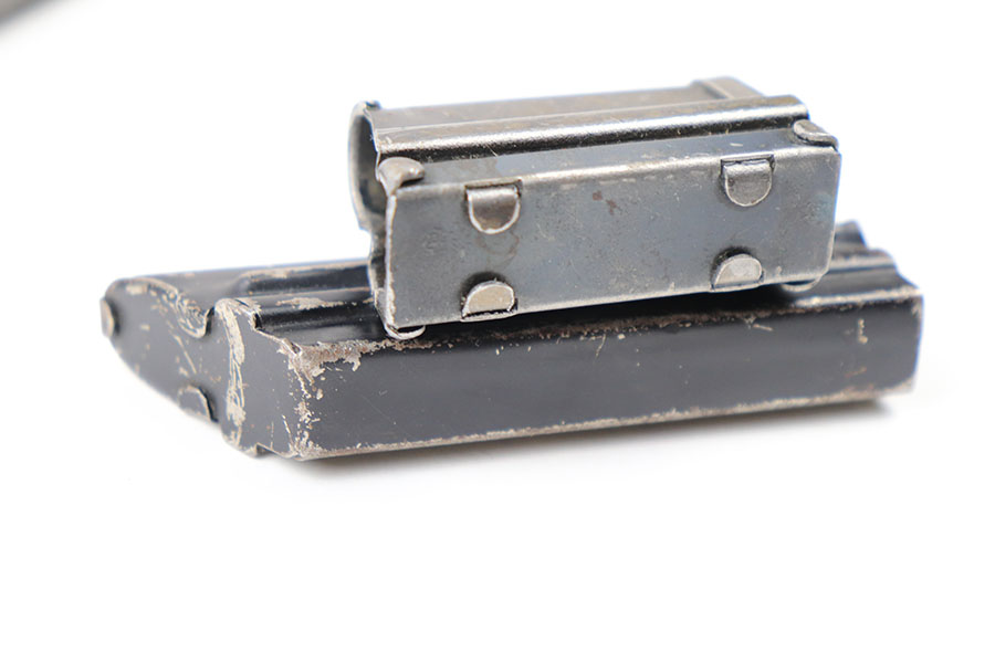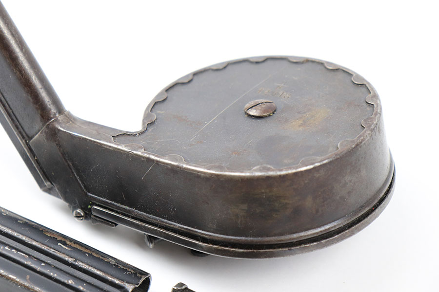 8/27/21 – This is an original, Type 1 variation snail drum Luger magazine. The magazine comes with an original 2-piece cover as well. The dust cover is imperial proof stamped. The magazine is also proof stamped towards the top of the tube. The magazine is matching numbered, and B/N maker stamped as shown. There’s patina throughout the finish, but no excessive wear, rust, or pitting. The spring is strong and fully functional.