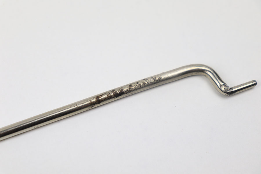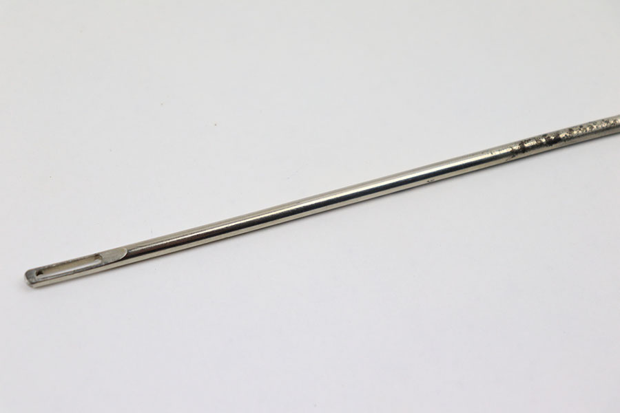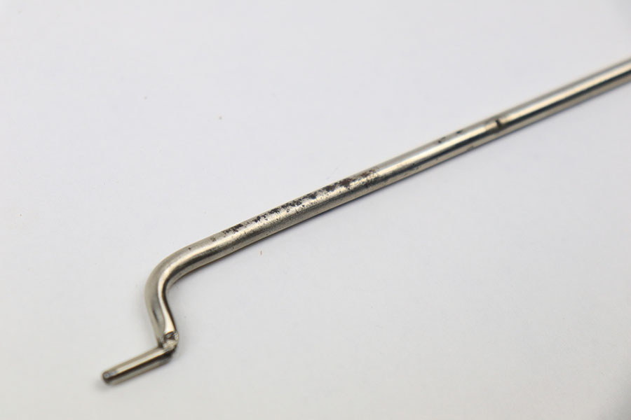 10/29/21 – This is a WW2 Type 14 Nambu cleaning rod. The rod is the earlier style with nickel finish. There is some surface patina and discoloration but the rod is in great shape overall. No markings or stamps. About 6.5 inches long.