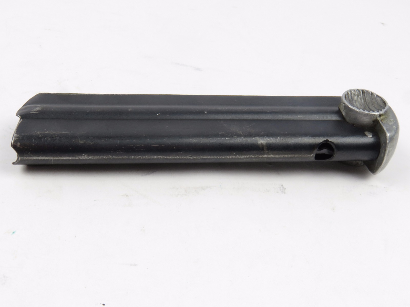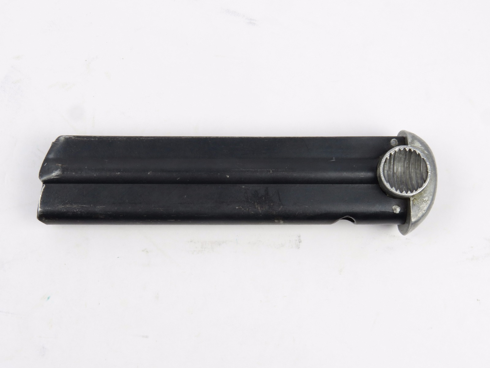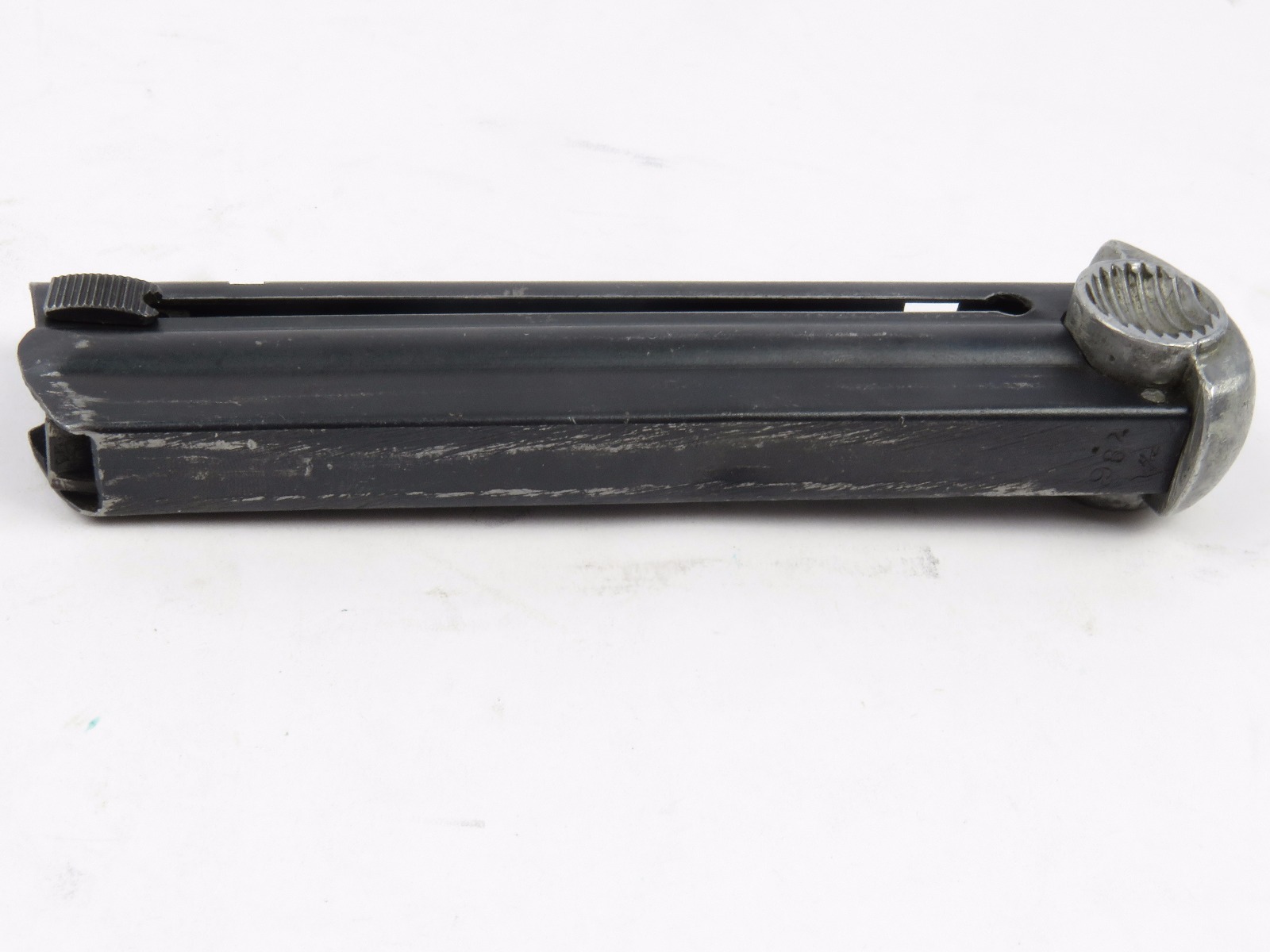 8/15/17 – This is an original WW2 wartime production Type 14 Nambu magazine. The magazine is numbered on the spine with a blued frame and aluminum base. No rust or pitting anywhere, only some minor use wear and surface discolorations. The spring is strong and fully functional. Guaranteed original.