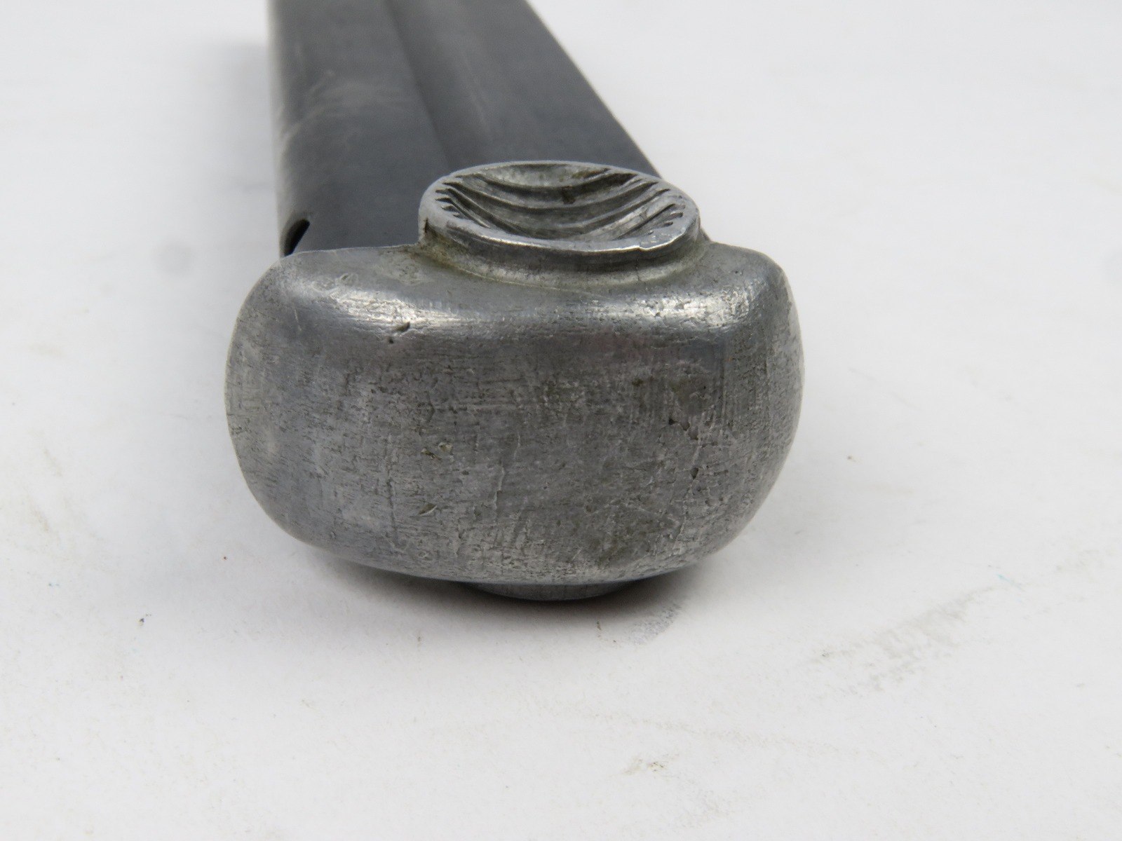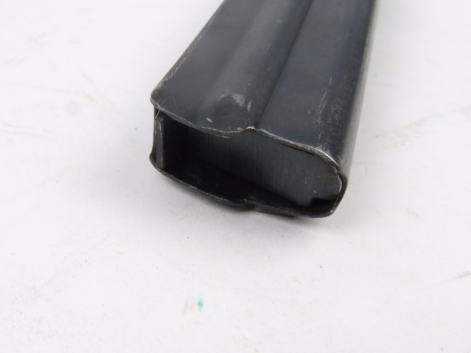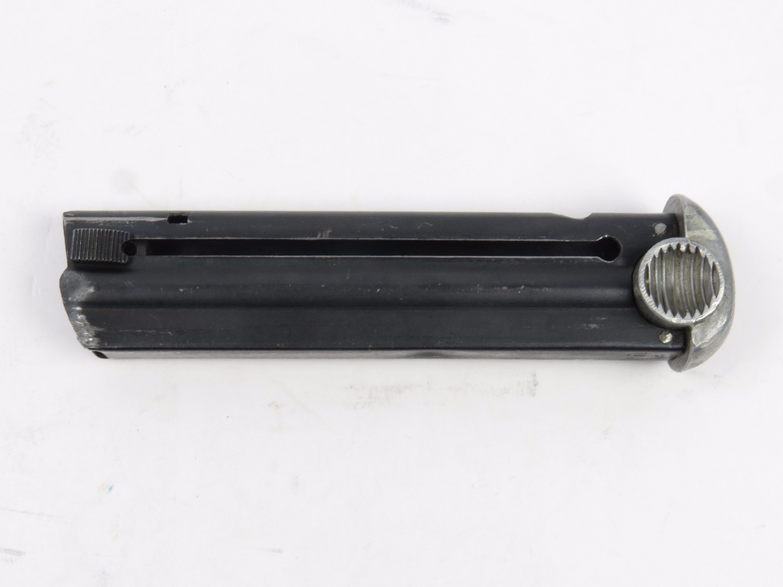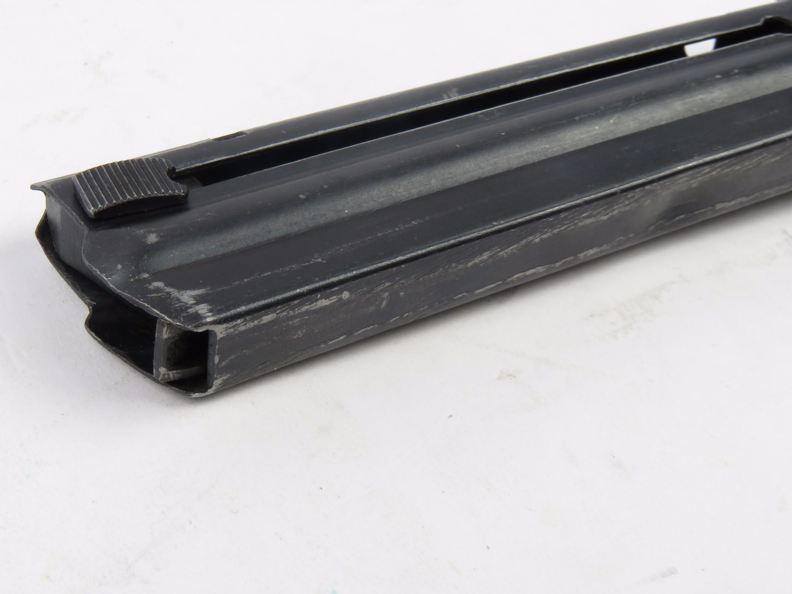 8/15/17 – This is an original WW2 wartime production Type 14 Nambu magazine. The magazine is numbered on the spine with a blued frame and aluminum base. No rust or pitting anywhere, only some minor use wear and surface discolorations. The spring is strong and fully functional. Guaranteed original.