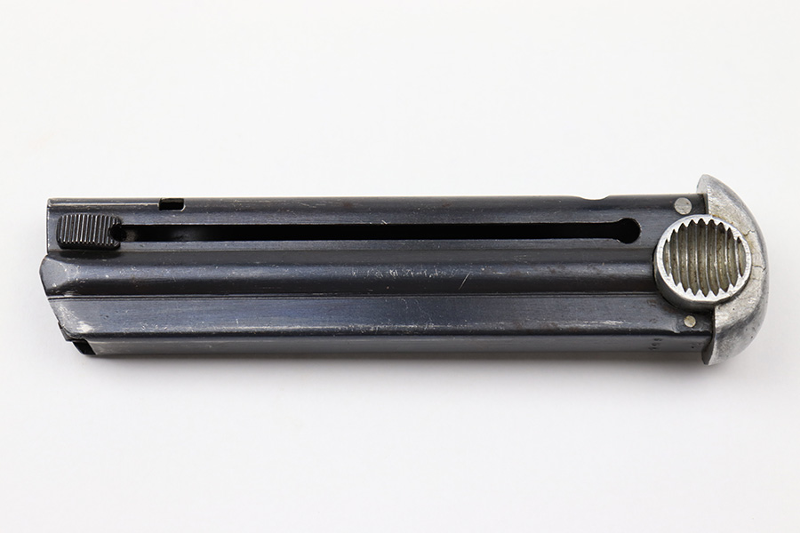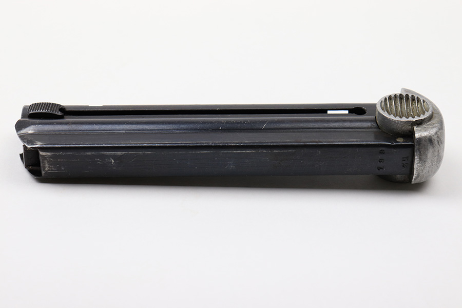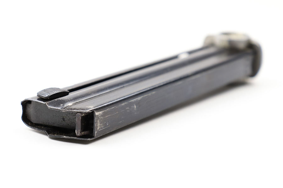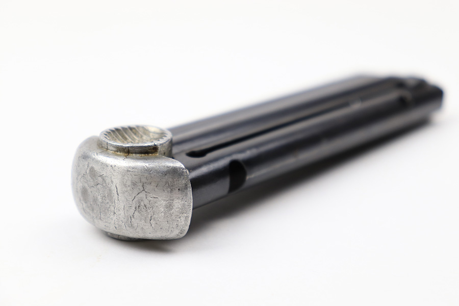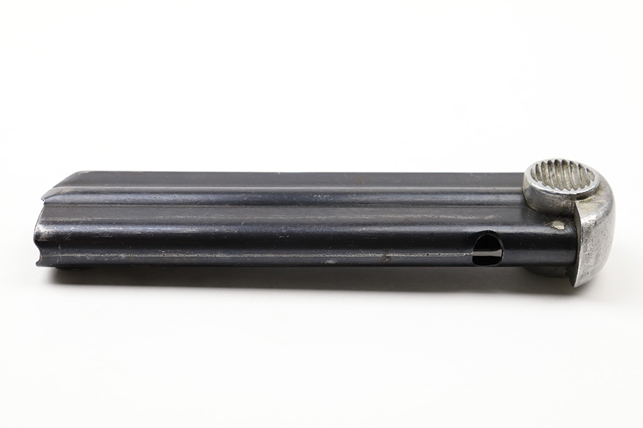 7/13/22 – This is an original WW2 Type 14 Nambu magazine. Wartime production with a blued tube and aluminum base. The spine of the tube is serial numbered 199. Excellent condition with very nice finish throughout and a fully functional spring.
