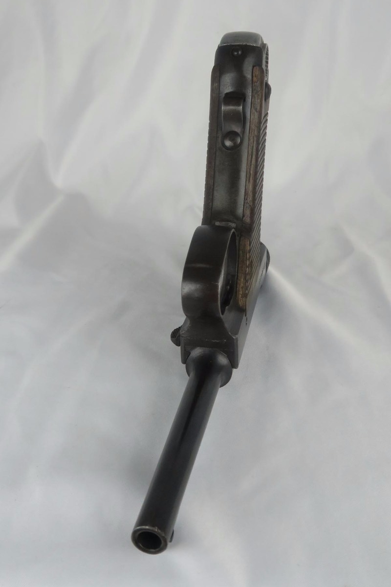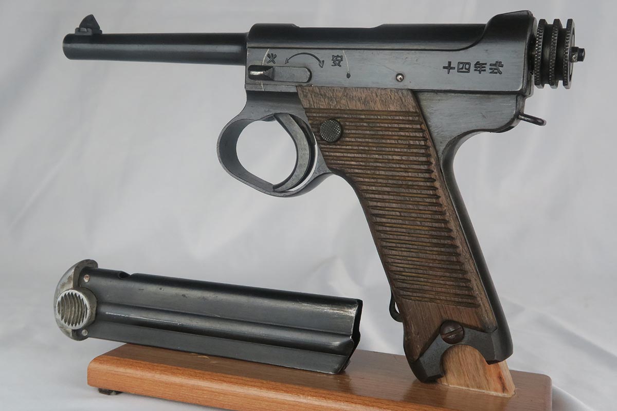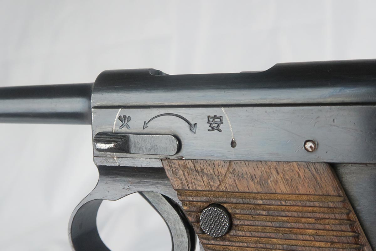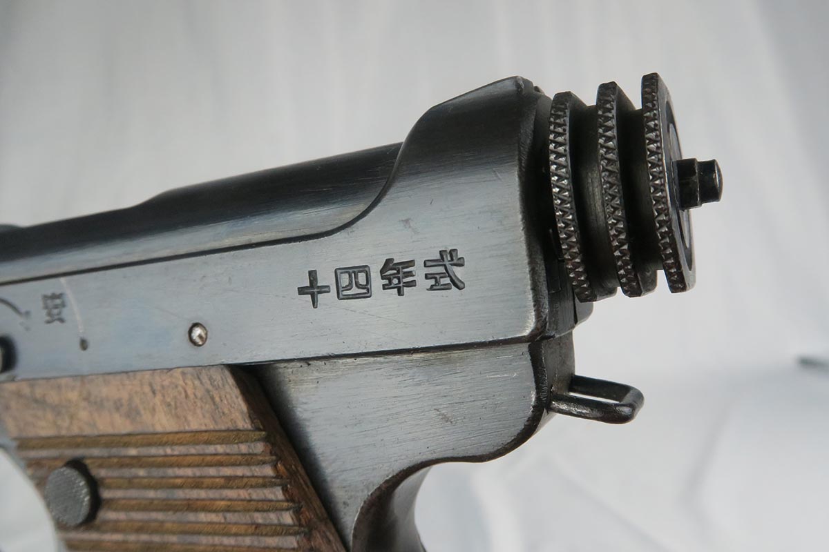 10/23/17 – This is an all original and matching Type 14 Nambu that was manufactured at the Nagoya Army Arsenal in 1943.  This is one of the last of these pistols manufactured there, as the serial range for these pistols ended at 99,999 and this one is 98,699.  This pistol features matching grips and the original matching magazine, with about 95% blue remaining.  Thinning on the straps accounts for the majority of the finish loss.  Bore is MINT.
