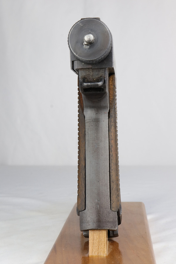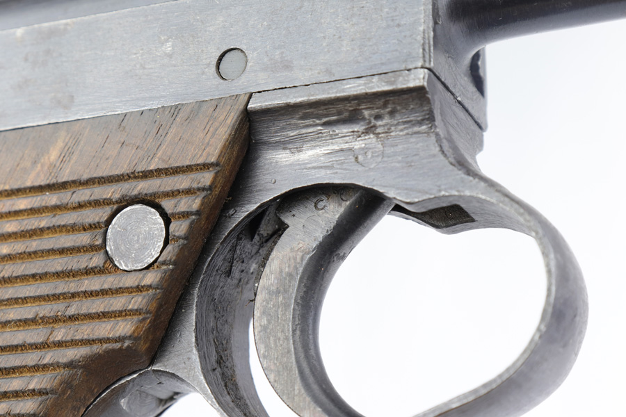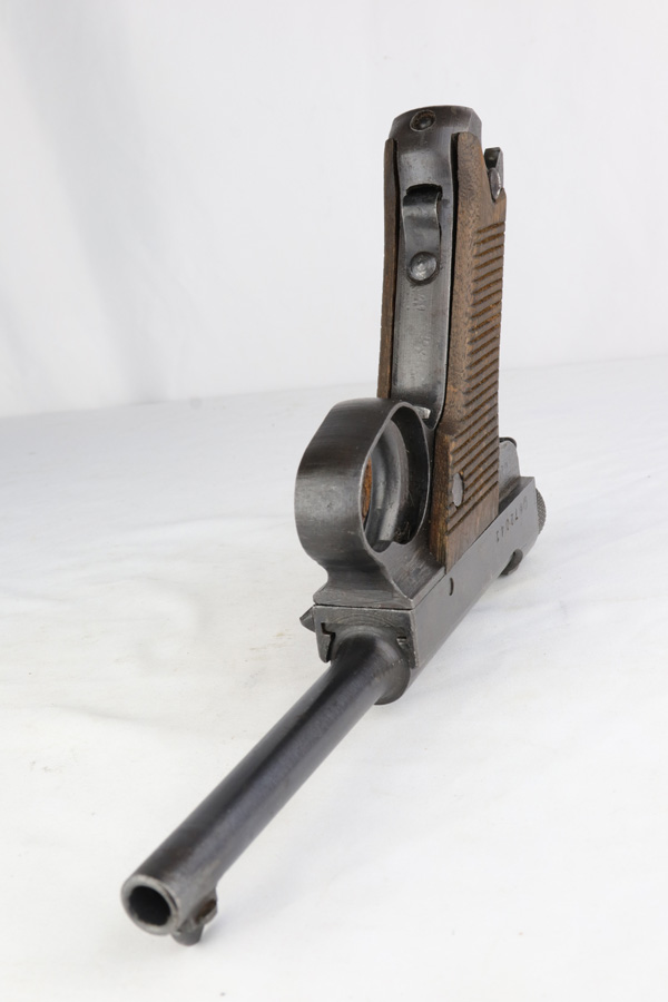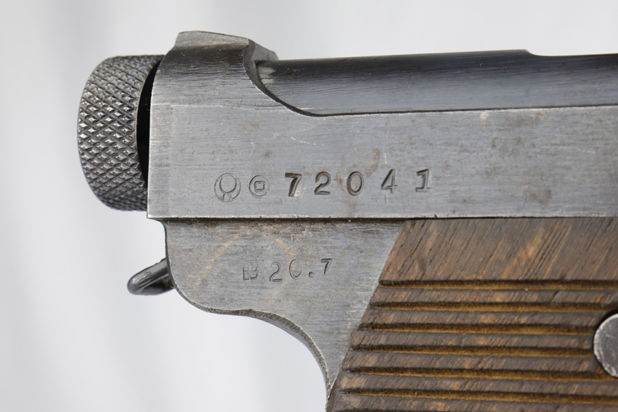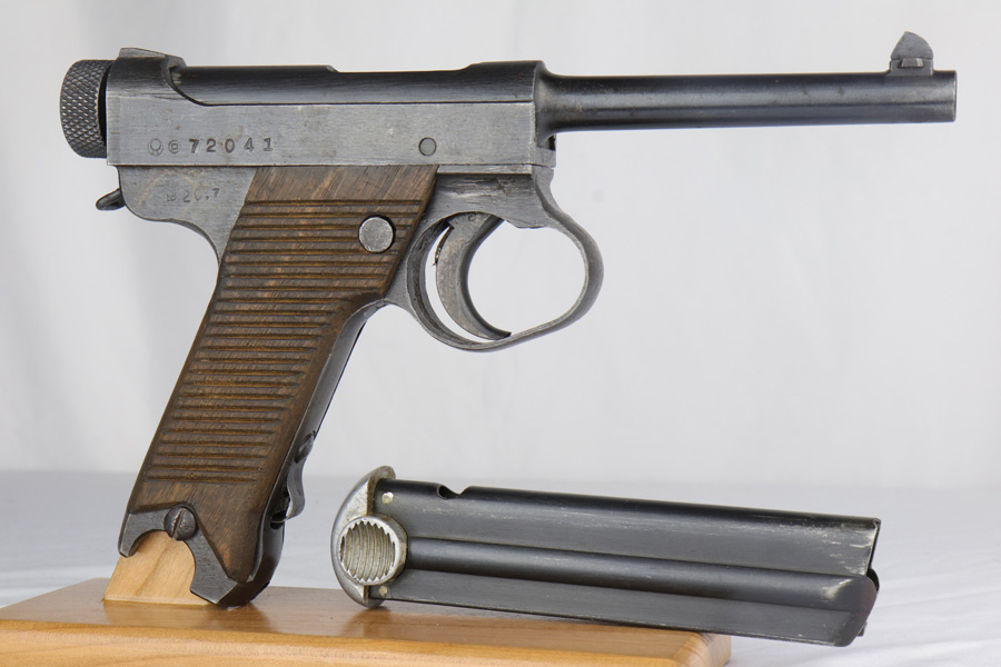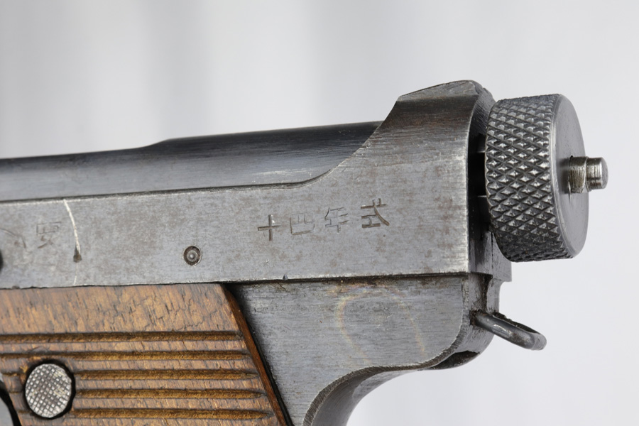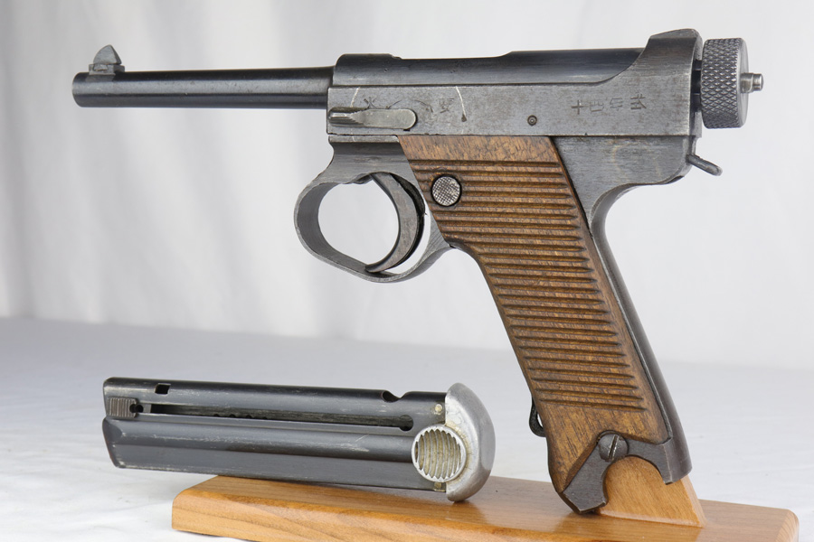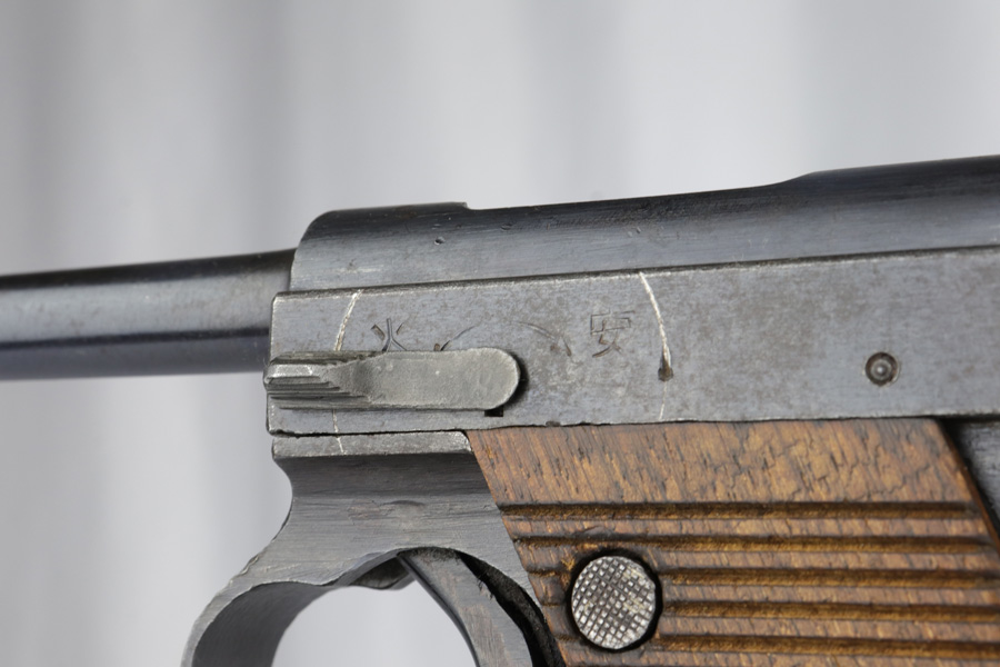 3/1/19 – This is one of the rarest variations of Japanese T14 postols that one can come across. Very late war production gun, made in July of 1945, as the US Army was preparing for the final blow to Imperial Japan. Fewer than 50 examples of this scarce pistol are known and are exceeded in rarity only by the 20.8 date Type 14 Nambu. Made in the last days of war, they were assembled from any available parts on hand at the Toriimstsu Nagoya factory, had very rough machining and finish, and were all mismatched. This gun has all of the above characteristics and is a complete mismatch. It is, however, complete, still has most of its late war finish and is an extremely desirable specimen for a Japanese military collector. We have seen only one other gun with the same date code in over 10 years.