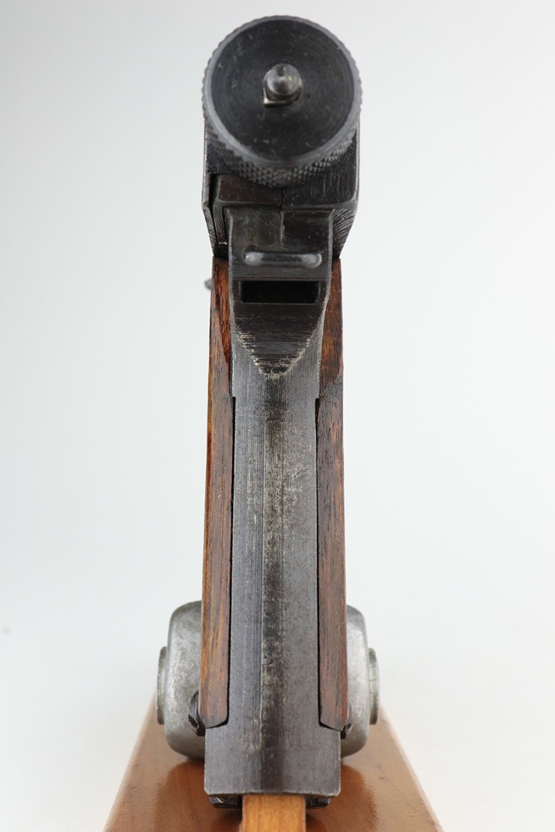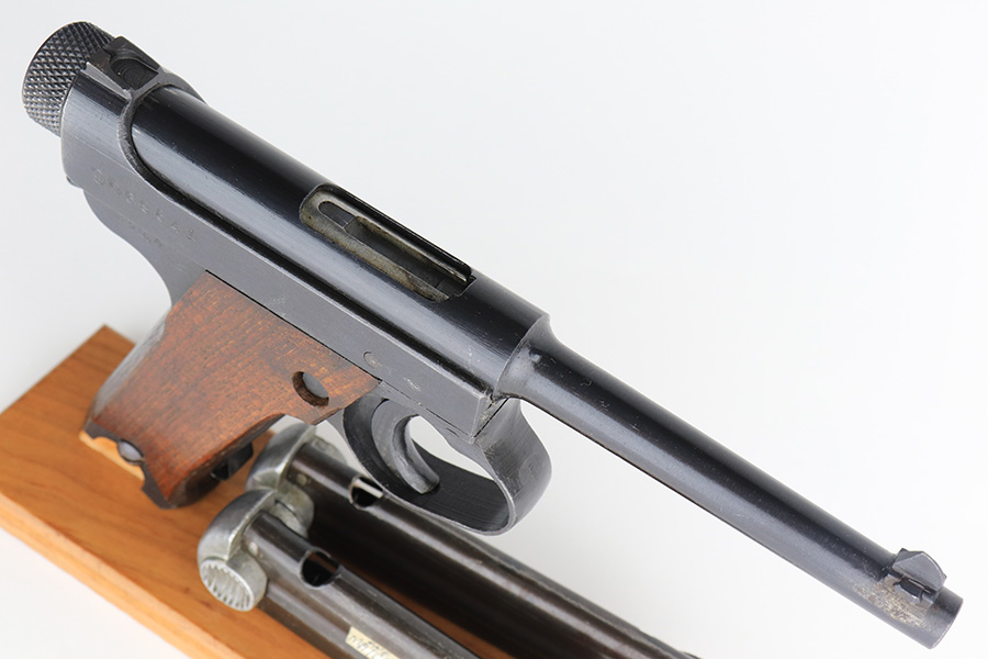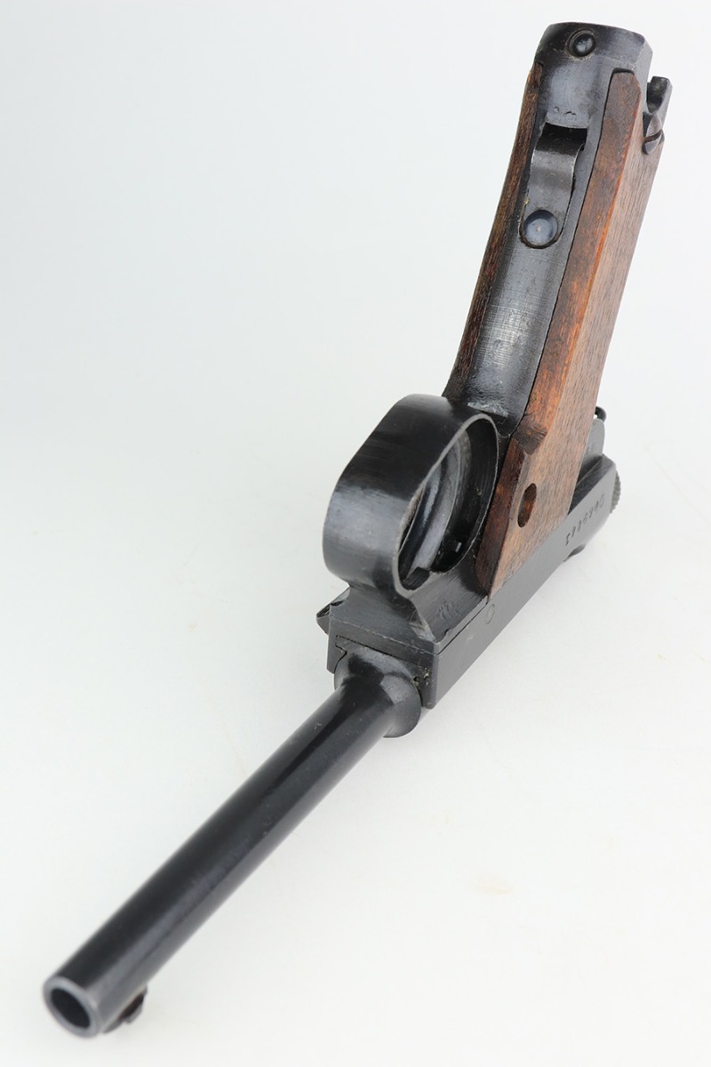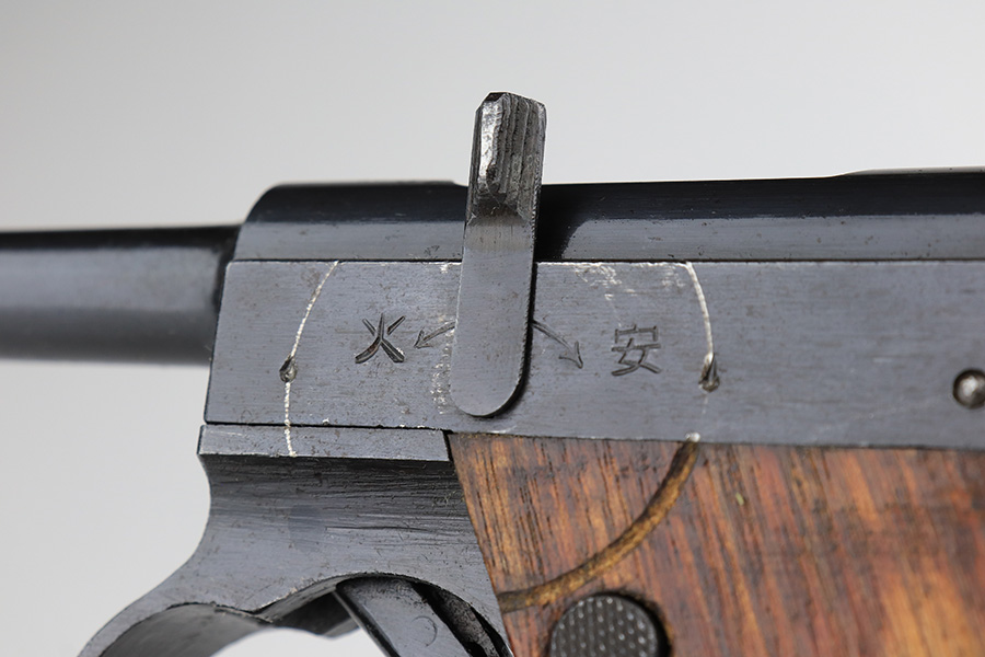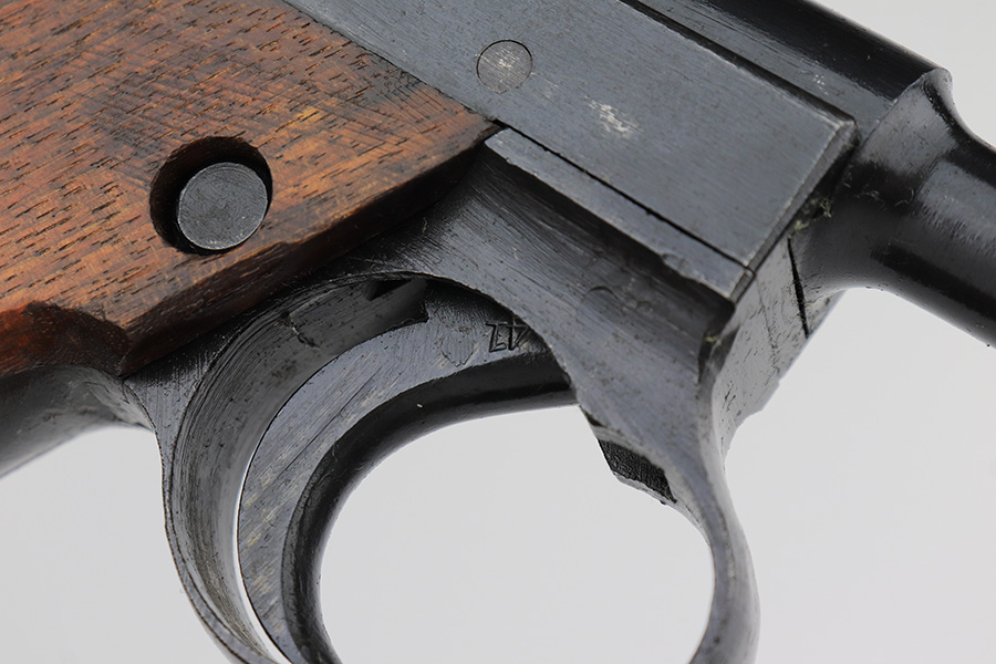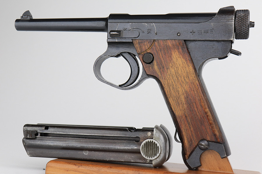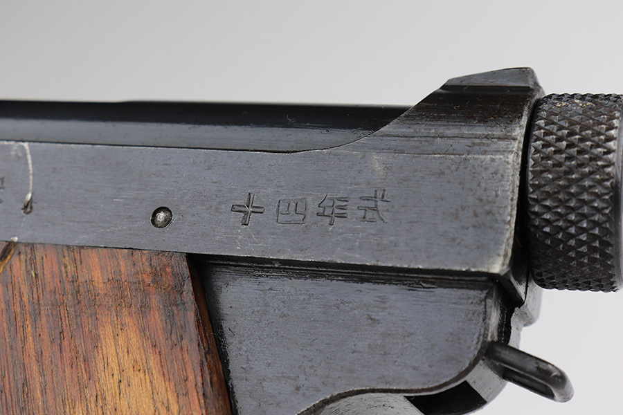 2/14/23 – This is an excellent example of a late-war Nambu Type 14 from April of 1945. It’s all matching, with both original matching magazines and the original matching grips. The bluing rates at 95-97% with minor thinning on both grip straps. Mint bore. Slab style grips in great condition with no cracks or chips.