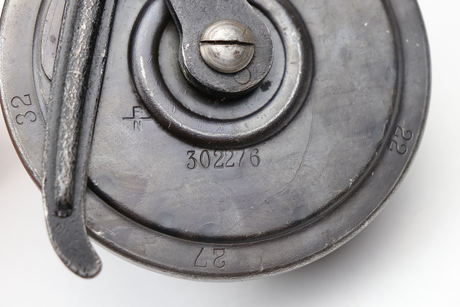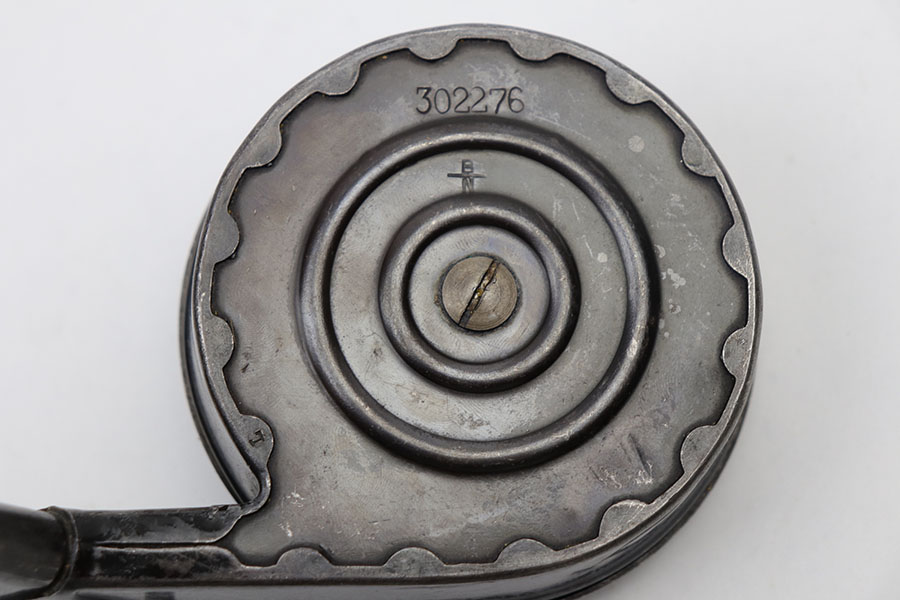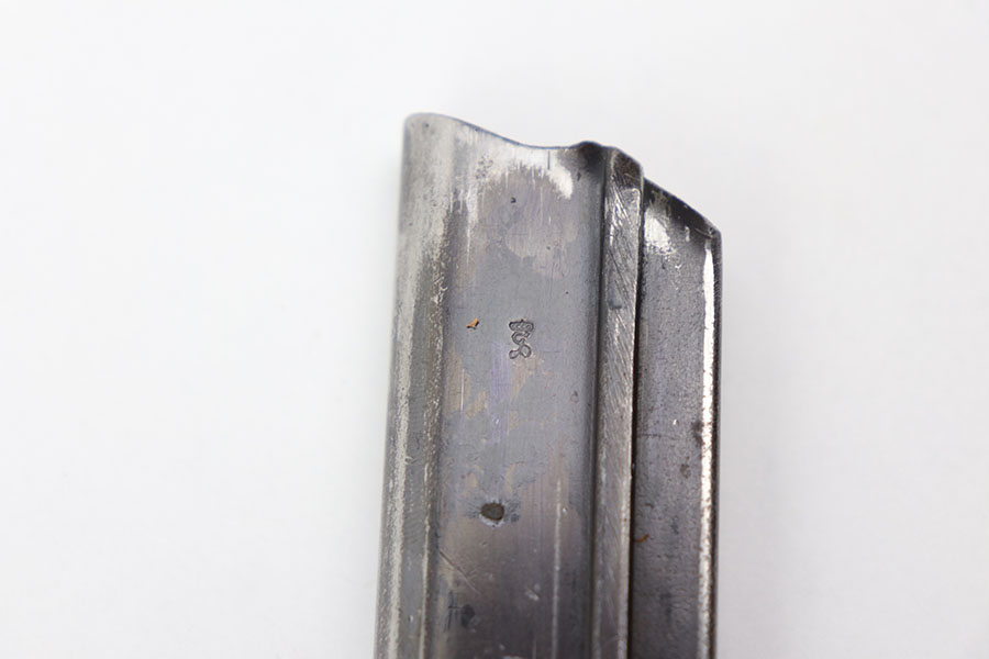 12/7/20 – This is an original WW1 era production snail drum Luger magazine. The magazine is original but the leather case is post war production. The leather case is unmarked and in excellent condition. The magazine is all original with a strong, functional spring. The serial number on the top and bottom of the drum are matching, and the spring is strong and functional. There is an imperial proof stamp near the top of the magazine tube. Also “B/N” maker stamped by Bing. The finish is in great shape overall with light patina and edge wear but no rust or pitting.