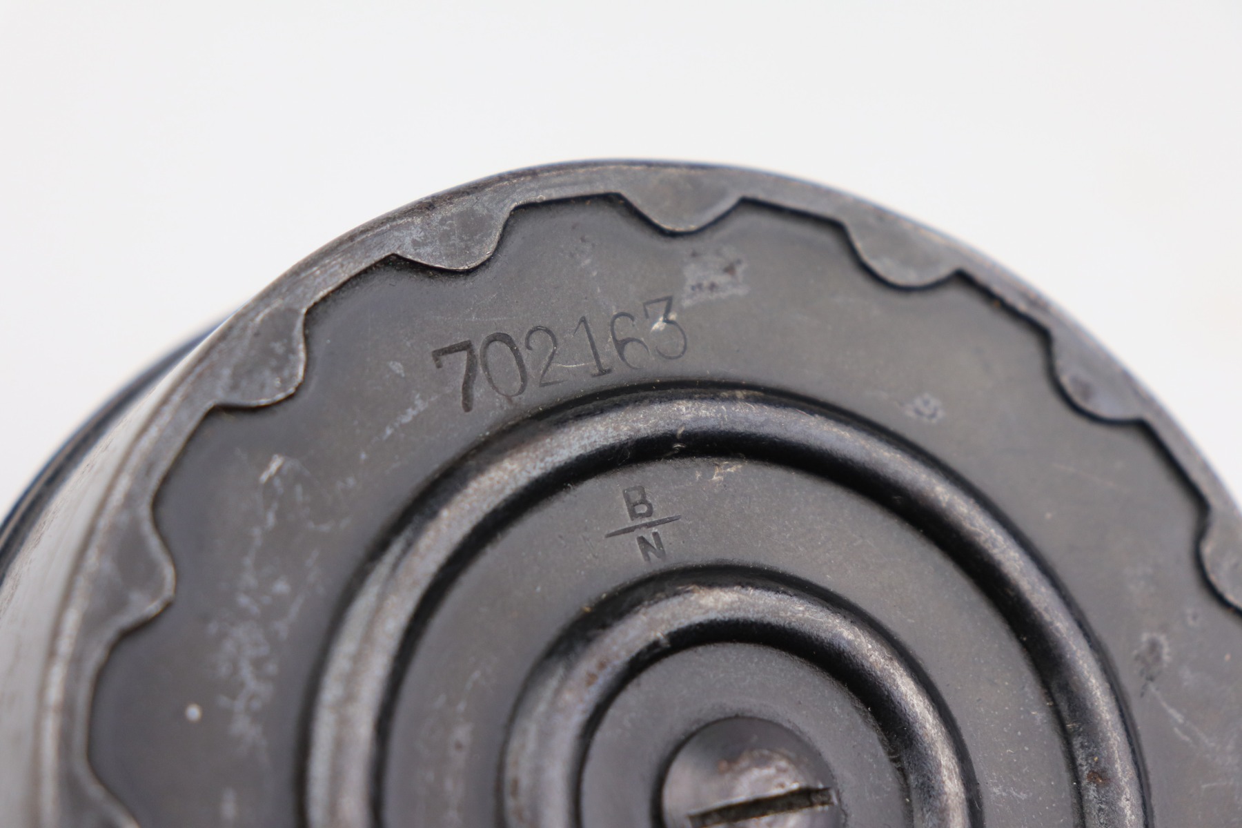 1/29/21 – This is an original WW1 era snail drum luger magazine. The magazine is matching numbered on both the top and bottom of the drum. Also stamped “B/N” by Bing. This is a type 2, made later during WW1. The magazine is in great overall condition with some mild patina throughout but the original finish is mostly in tact. The spring is strong and fully functional.