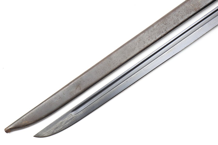 4/12/22 – This is an original WW2 production Type 30 bayonet for an Arisaka T38 or T99 rifle. The bayonet features an excellent, near mint condition blade. Beautiful finish throughout with only a small area of surface patina / wear in the blood groove on one side. Maker stamped on the ricasso. The hand guard and pommel both have some light brown patina and minor edge wear. The wood handle has no significant cracks or chips, but there is some typical signs of aging. The metal scabbard has surface patina throughout and a few small dents, but fits the blade nicely.