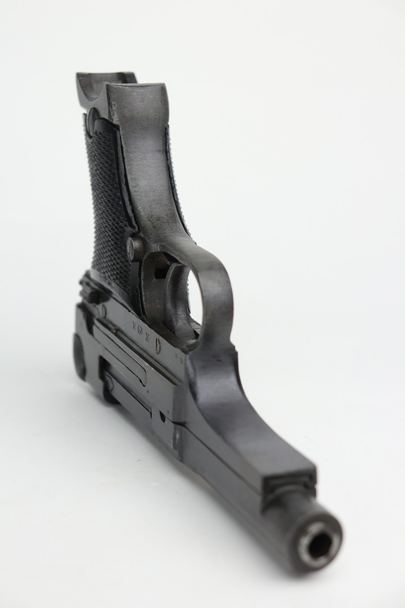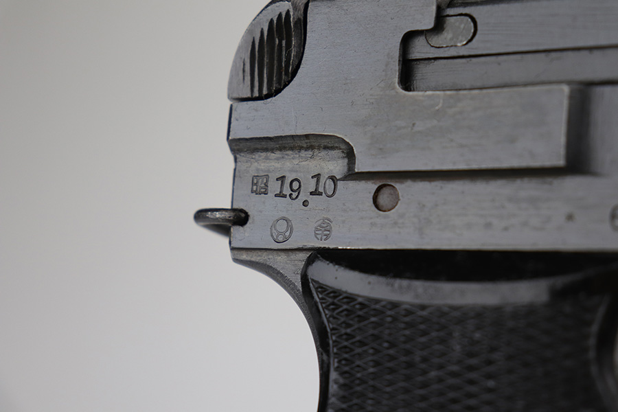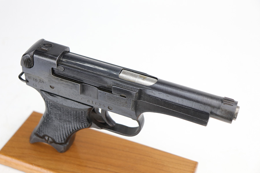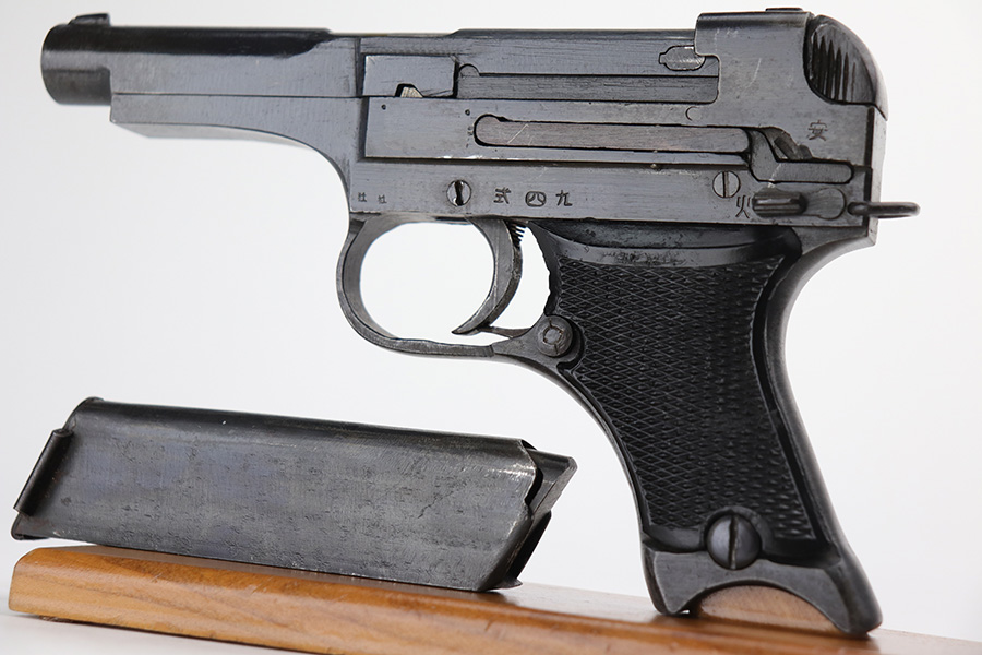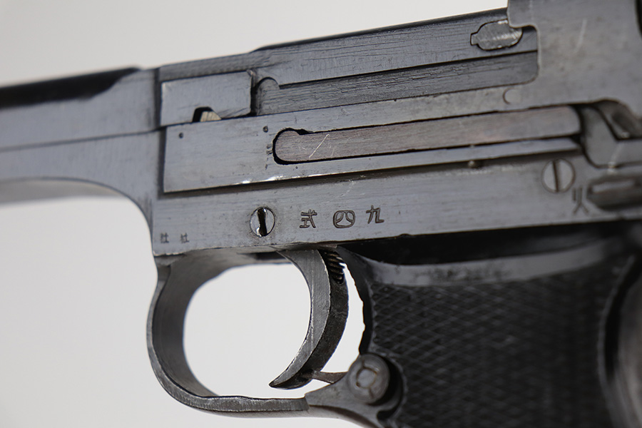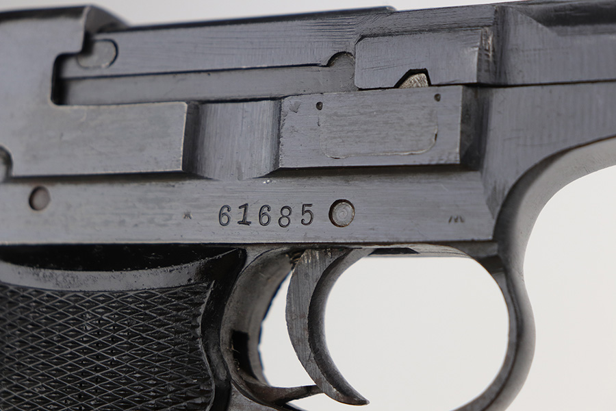 10/5/21 – This is a very nice example of a Type 94 Nambu that was made at the Kokubunji arsenal in October of 1944. It has some dulling of the grip frame and a little high edge wear, but excellent condition overall. The magazine is matching numbered to the pistol, but does appear renumbered. Minty bore. Grips show some handling wear and a small gouge on right panel.