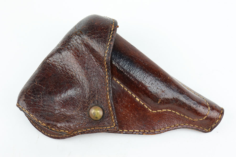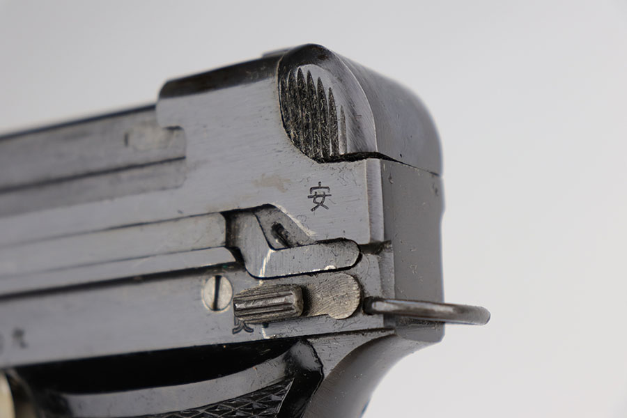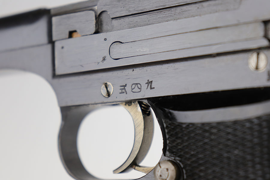 8/27/20 – This is an excellent example of a Type 94 Nambu rig with holster and both matching magazines. The gun has about 95-96% of the original blue with wear on the trigger guard and some on the bottom of the front strap. Both magazines are numbered and matching to the gun. One looks a bit more like ‘789’ than ‘788’, but I believe this is just a weak strike. Minty bore and excellent grips. Comes with a nice, original holster that shows some wear to the top flap but is in good condition overall.