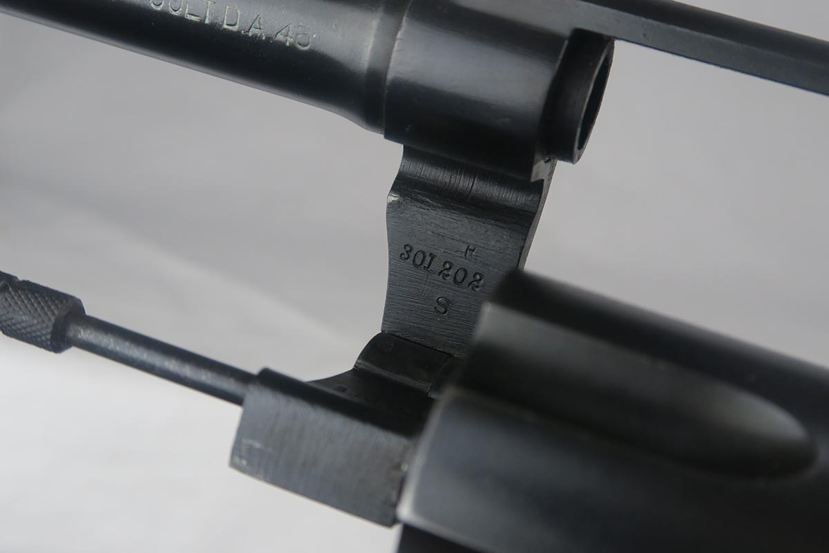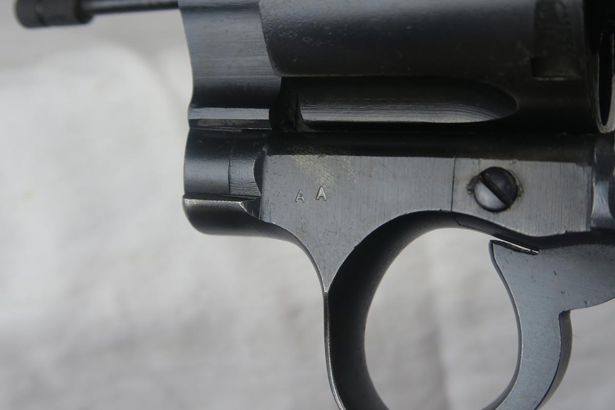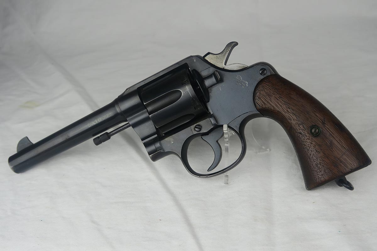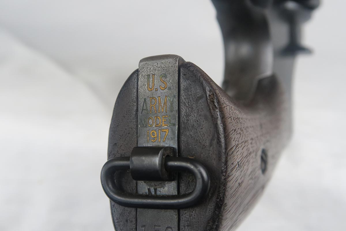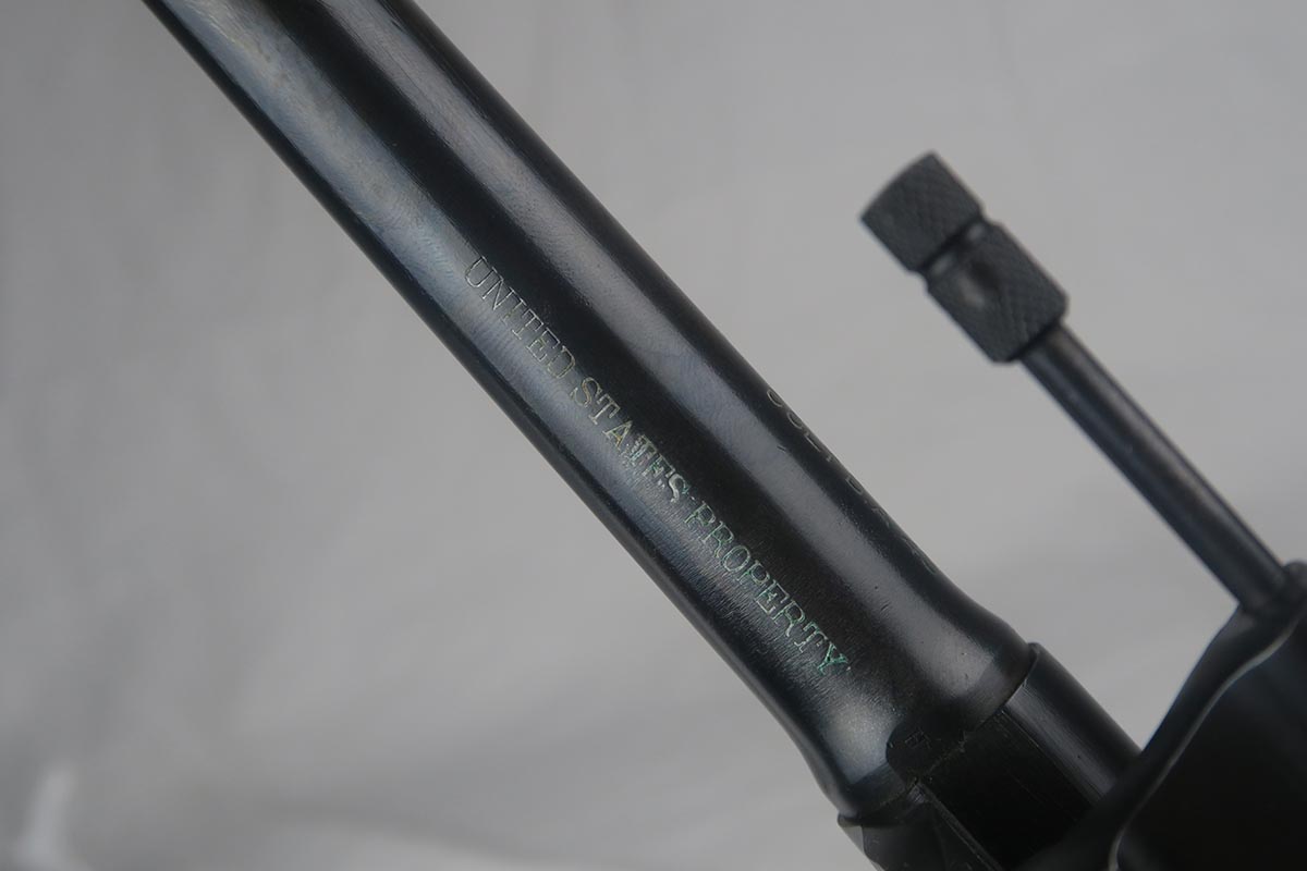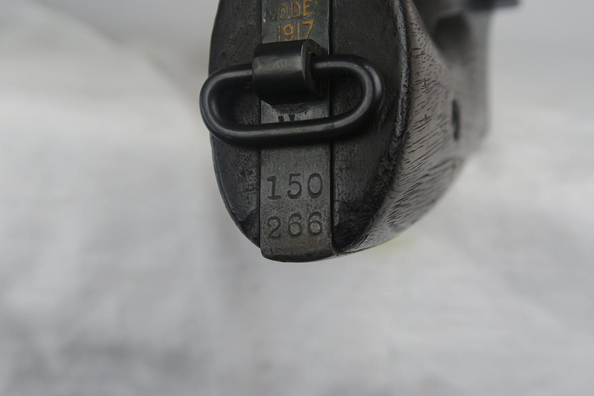 9/5/17 – This is a Colt model 1917 revolver that is United States Property marked and was issued to the American Army around the end of WWI.  The finish rates at about 90% with most of the finish loss on the straps.  The frame is ‘AA’ marked, meaning it was refurbished by Augusta Arsenal in preparation for use during World War II.  Grips have a couple dings but no major issues.  Excellent bore and action.