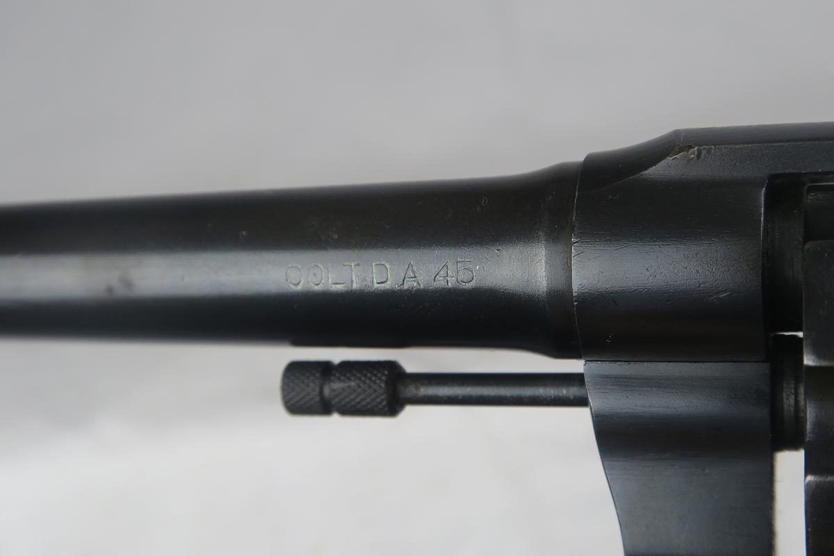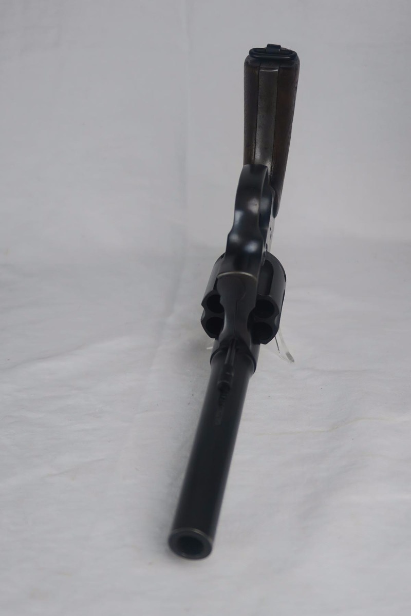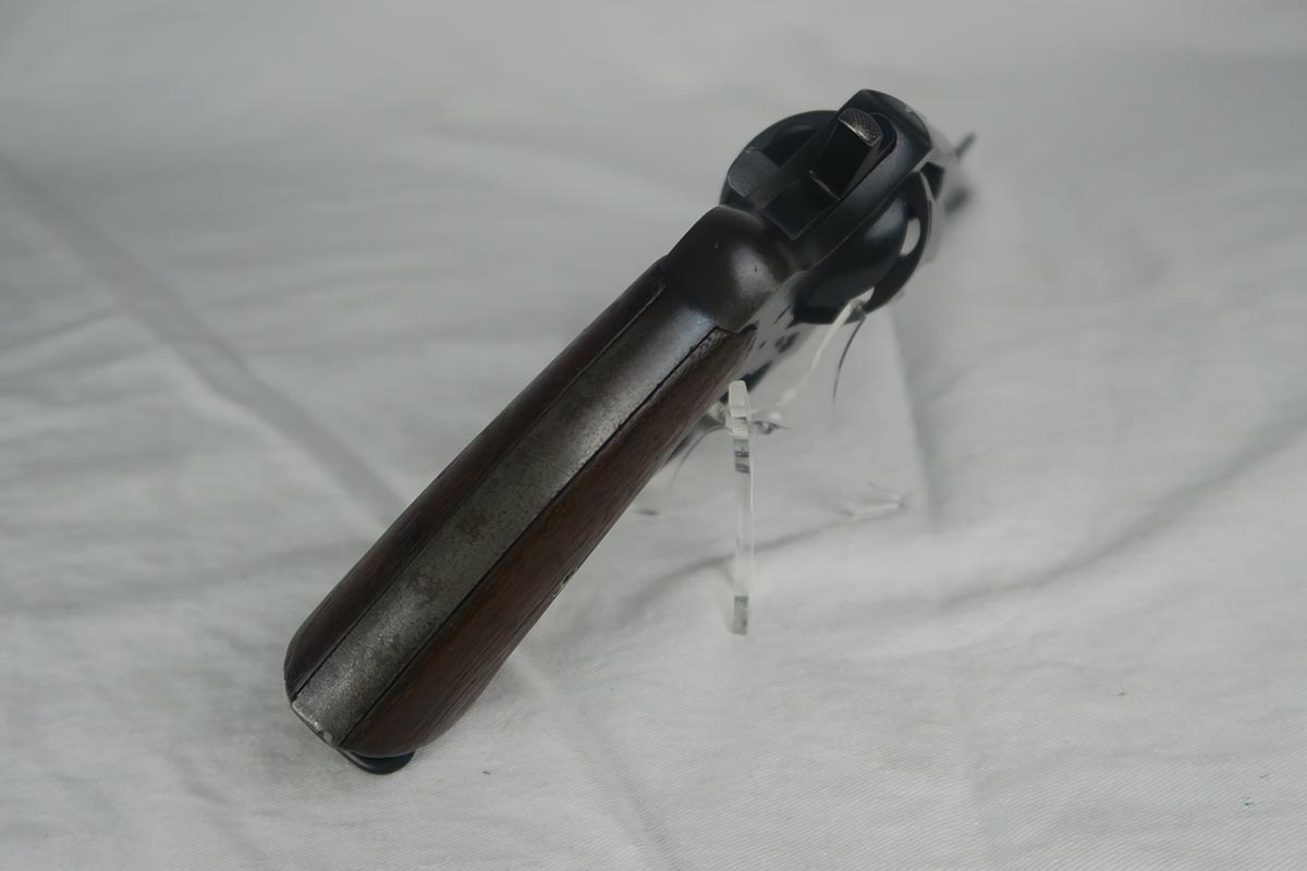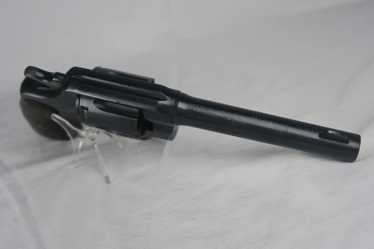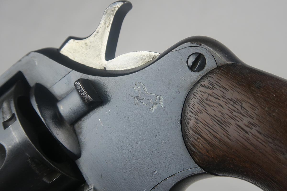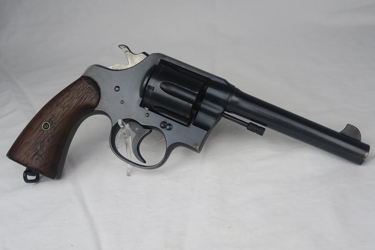 9/5/17 – This is a Colt model 1917 revolver that is United States Property marked and was issued to the American Army around the end of WWI.  The finish rates at about 90% with most of the finish loss on the straps.  The frame is ‘AA’ marked, meaning it was refurbished by Augusta Arsenal in preparation for use during World War II.  Grips have a couple dings but no major issues.  Excellent bore and action.
