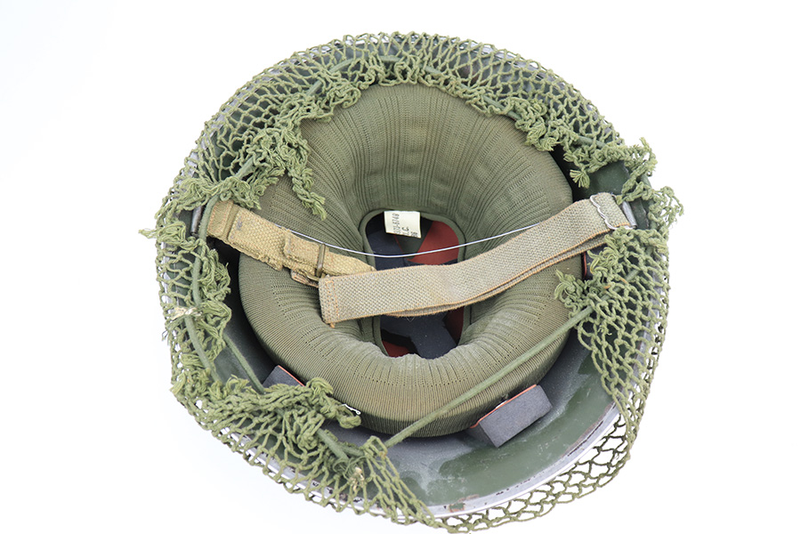 3/9/22 – This is an original, early post WW2 production helmet for British forces. This Mark IV helmet is in excellent condition with the original dark green netting cover as well as original liner and chin strap. The helmet is in excellent, nearly unissued condition overall with a very clean interior and original tags still attached. There’s some very mild surface wear on the interior shell of the helmet, but otherwise the paint and finish is excellent.
