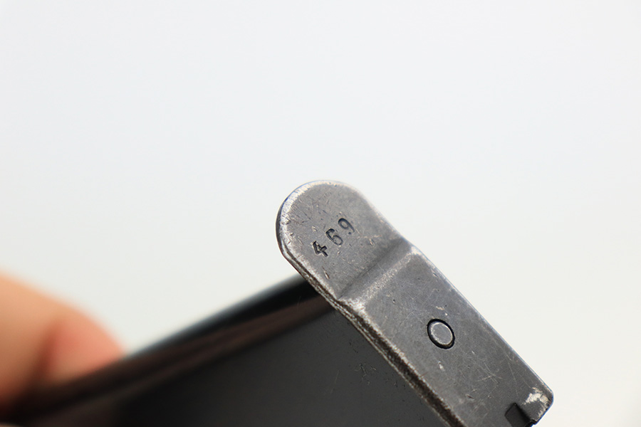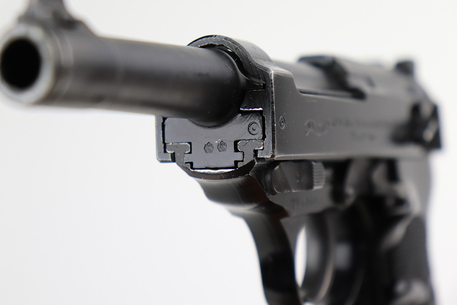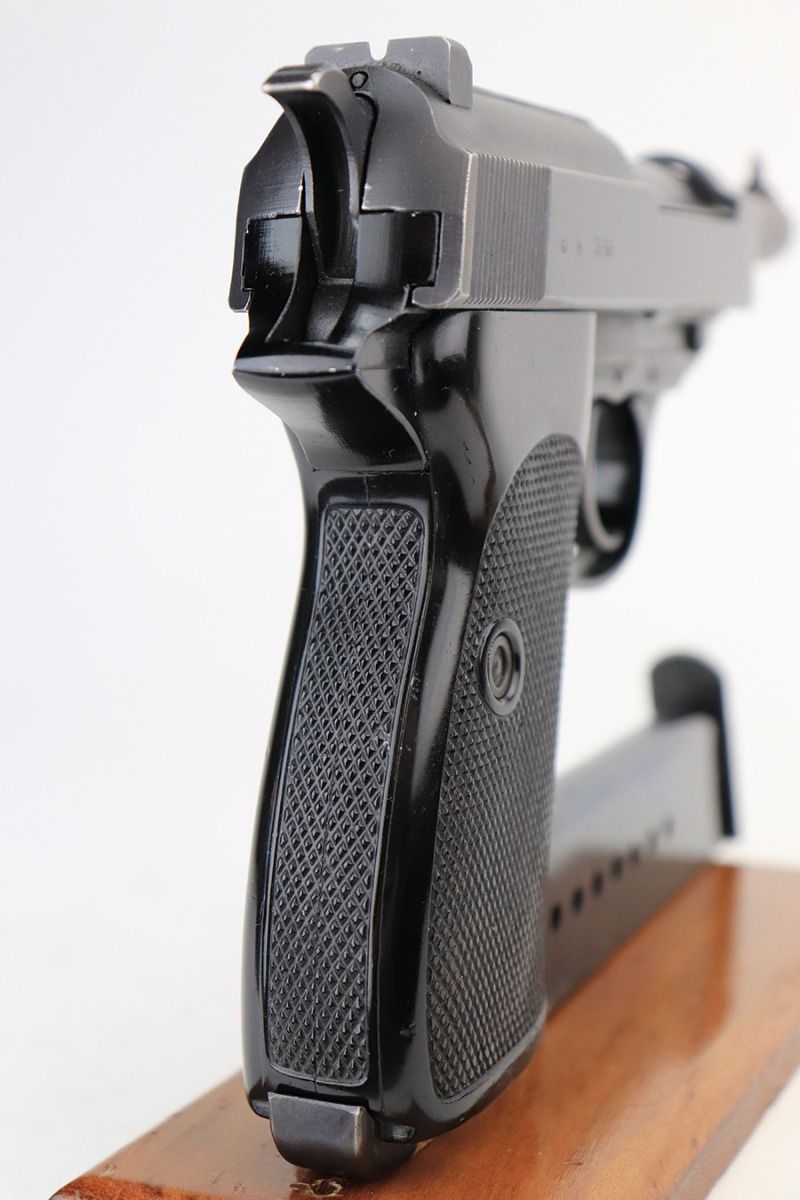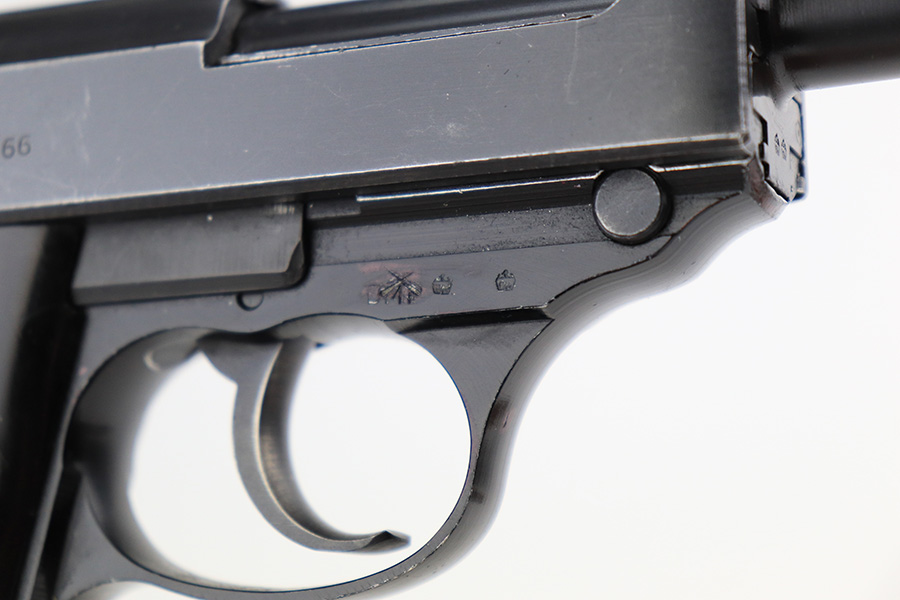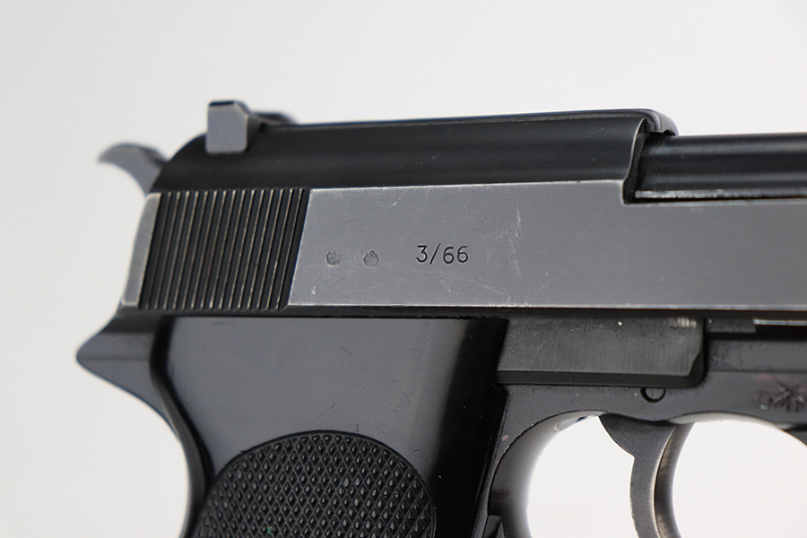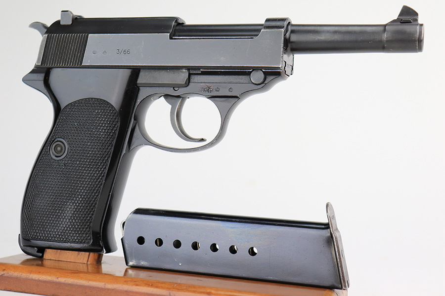 4/27/22 – This is a minty example of an ultra-rare Walther P1 that was issued to the West German police force in 1966. The gun is all matching, has the proper West German proofs, is dated 3/66, and comes with one original police arsenal-numbered magazine. Lightweight aluminum frame. It has retained nearly all of its original finish with very minor wear around some of the high edges. Comes with excellent black plastic grips. The bore is shiny with strong rifling, but there is light frosting in the grooves. De-cocker is functional.